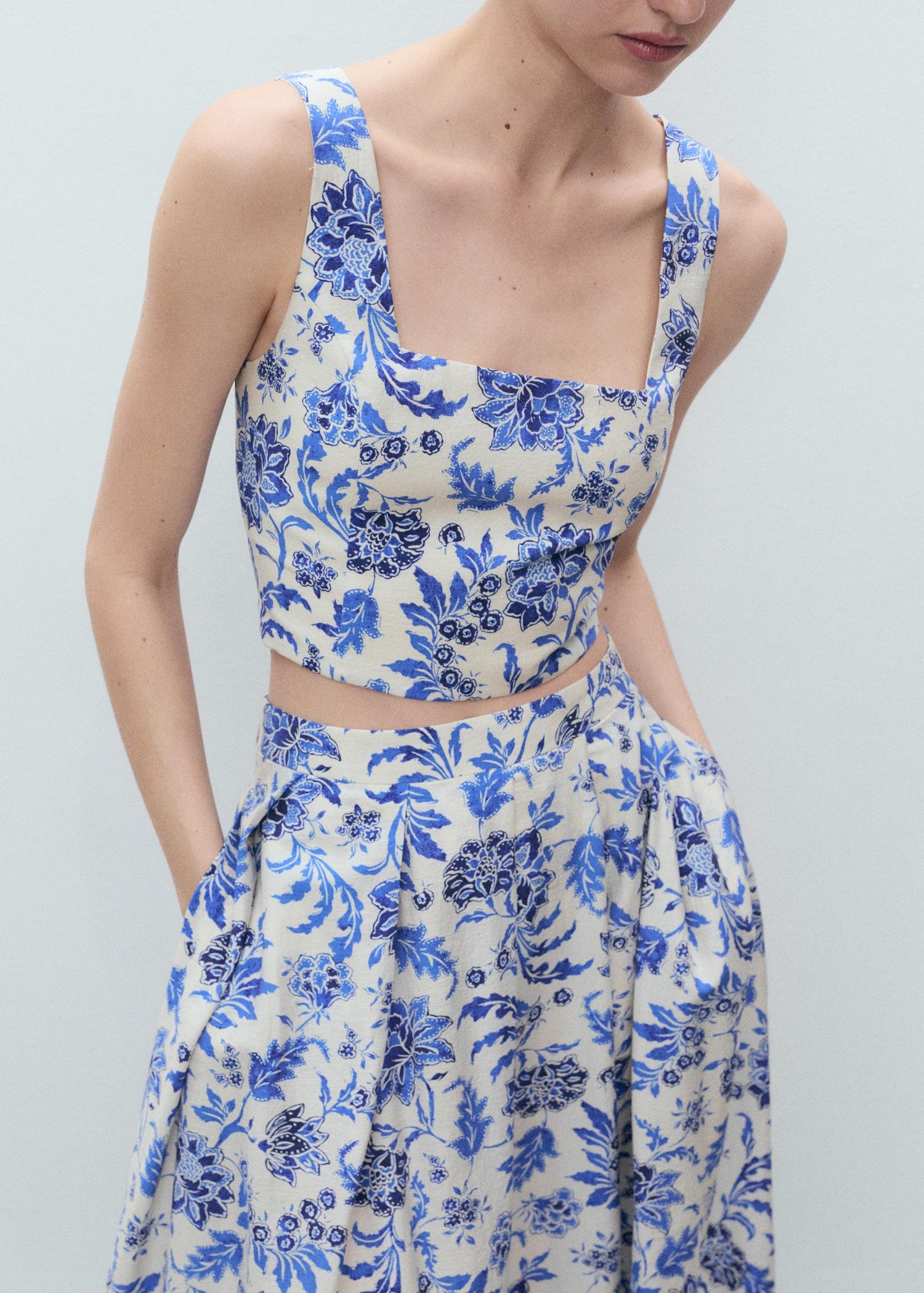 Long design. A-line design. Floral print. Mid-rise. Pleats detail. Side zipper closure. Total look. Side length 35.43 in. Skirt length 34.65 in