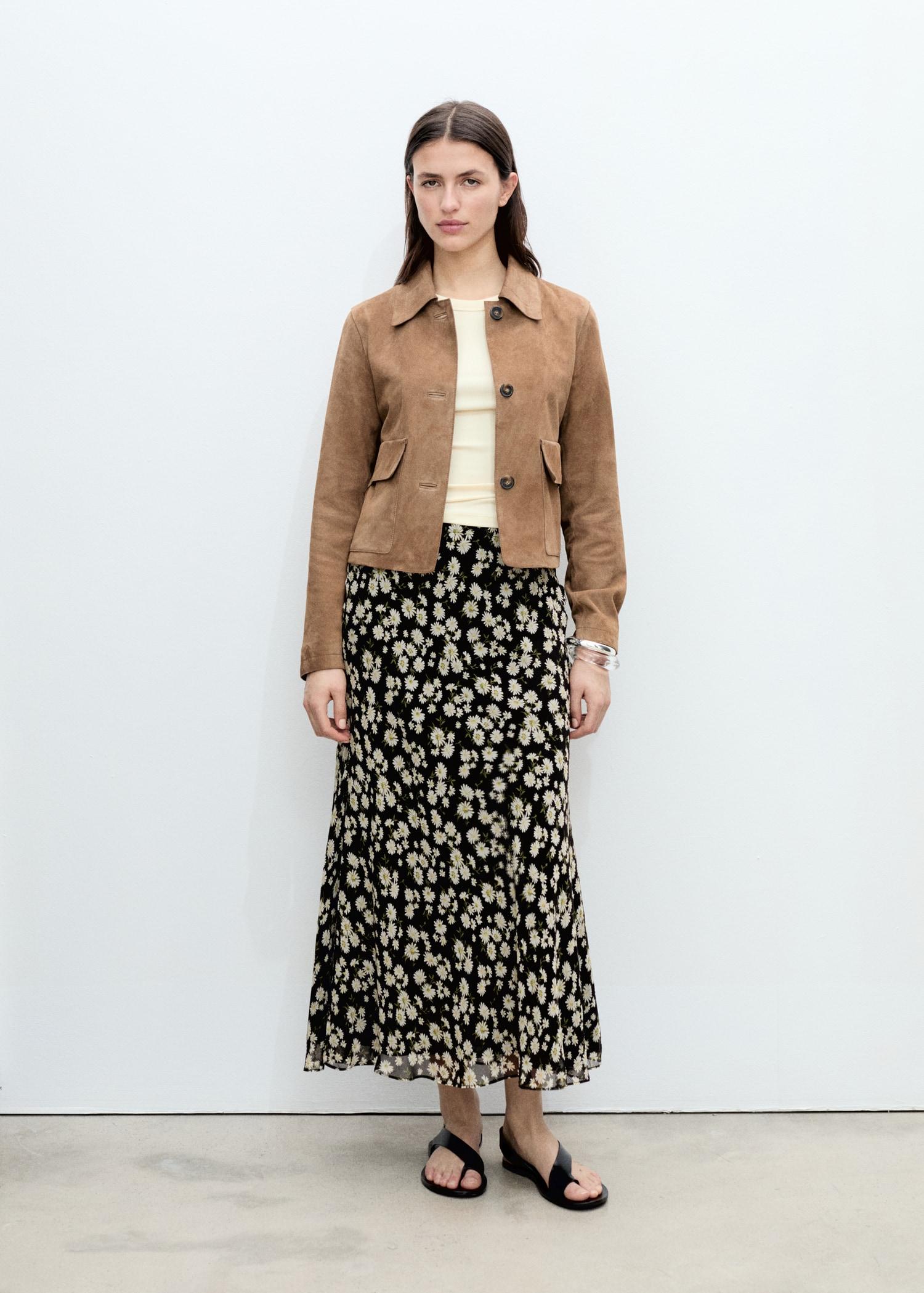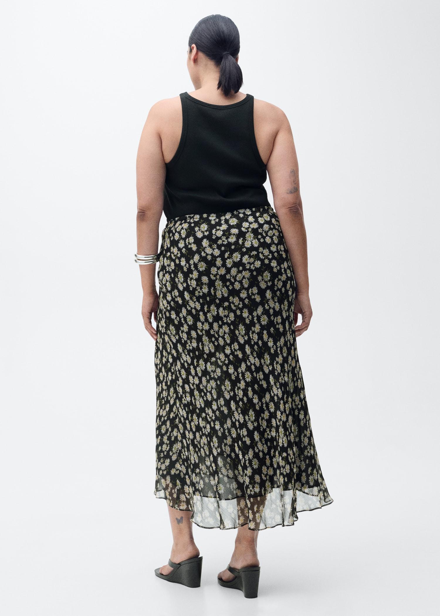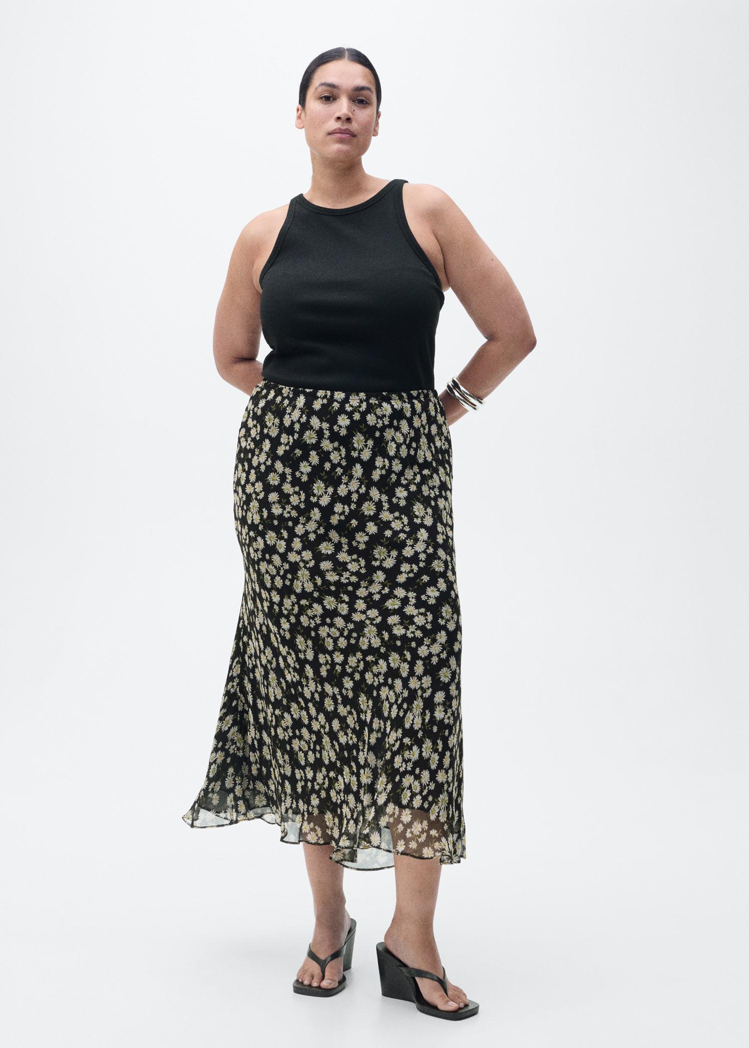 Chiffon fabric. Long design. A-line design. Elastic waistband. No closure. Lining only. Total look. Plus available. Side length 35.83 in. Skirt length 30.71 in
