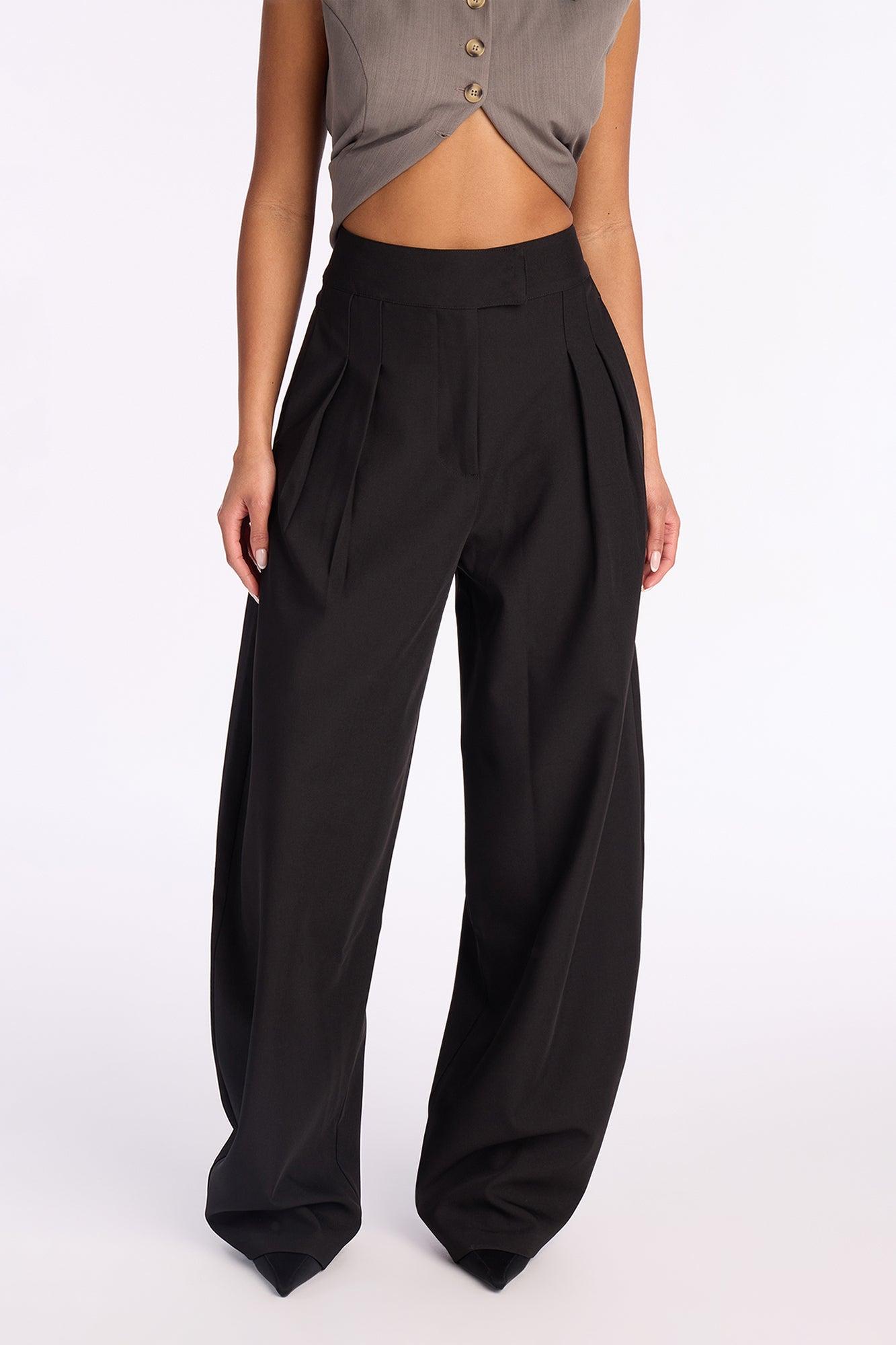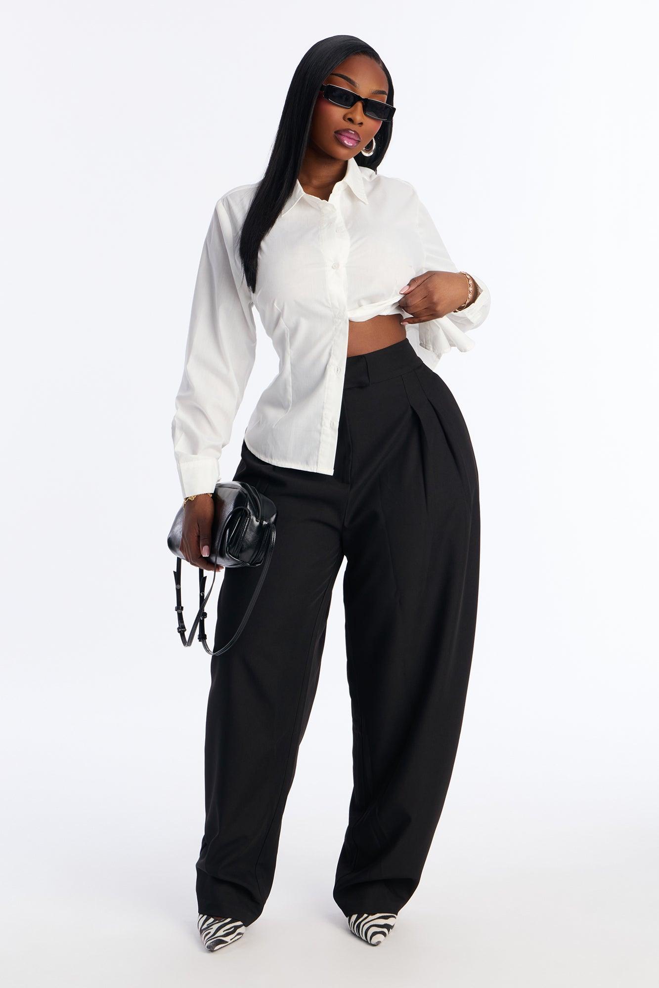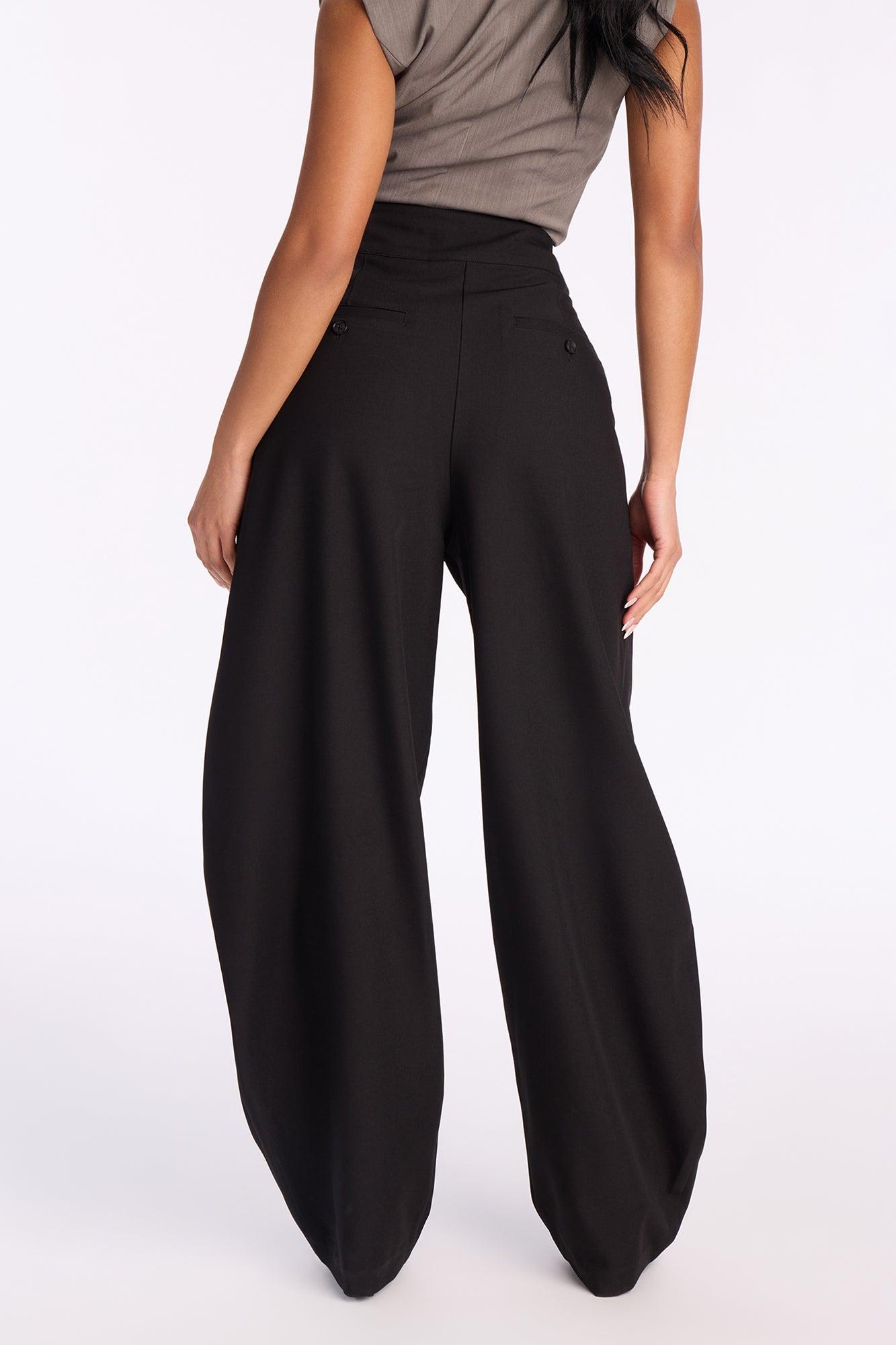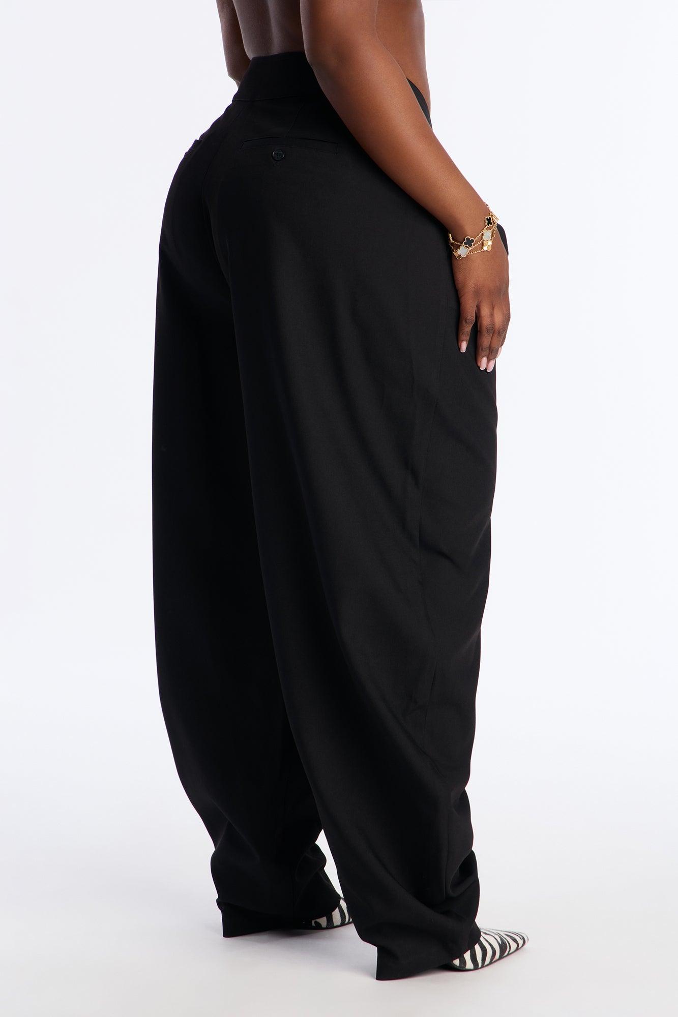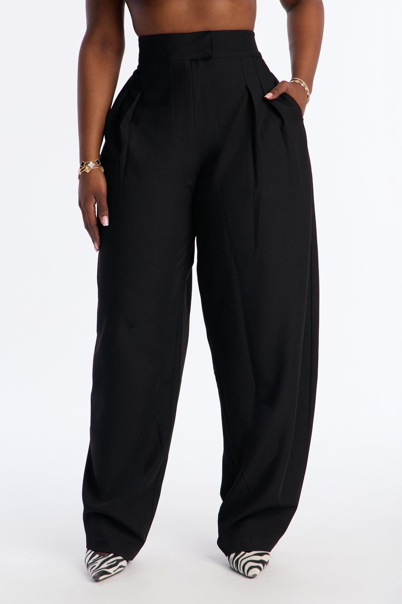 Available In Black And Camel. Barrel Leg Trouser Pant Hook And Eye Zip Closure High Rise Functional Pockets 32" Inseam Non Stretch Self: 92% Polyester 8% Spandex Imported California Proposition 65WARNING: Cancer and Reproductive Harm - www.P65Warnings.ca.gov.