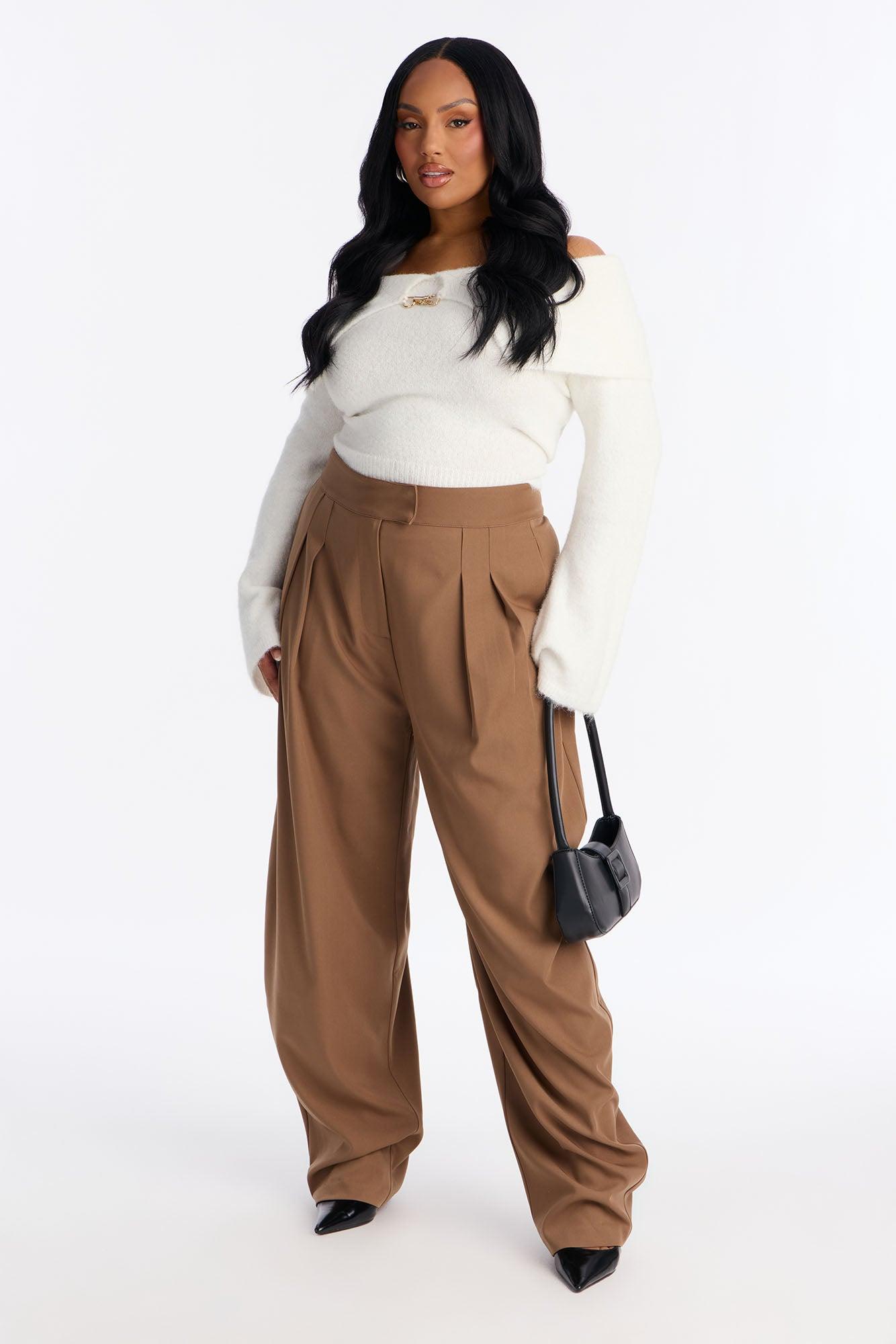 Front Page Headline Wide Leg Trouser Pant - Chocolate Female