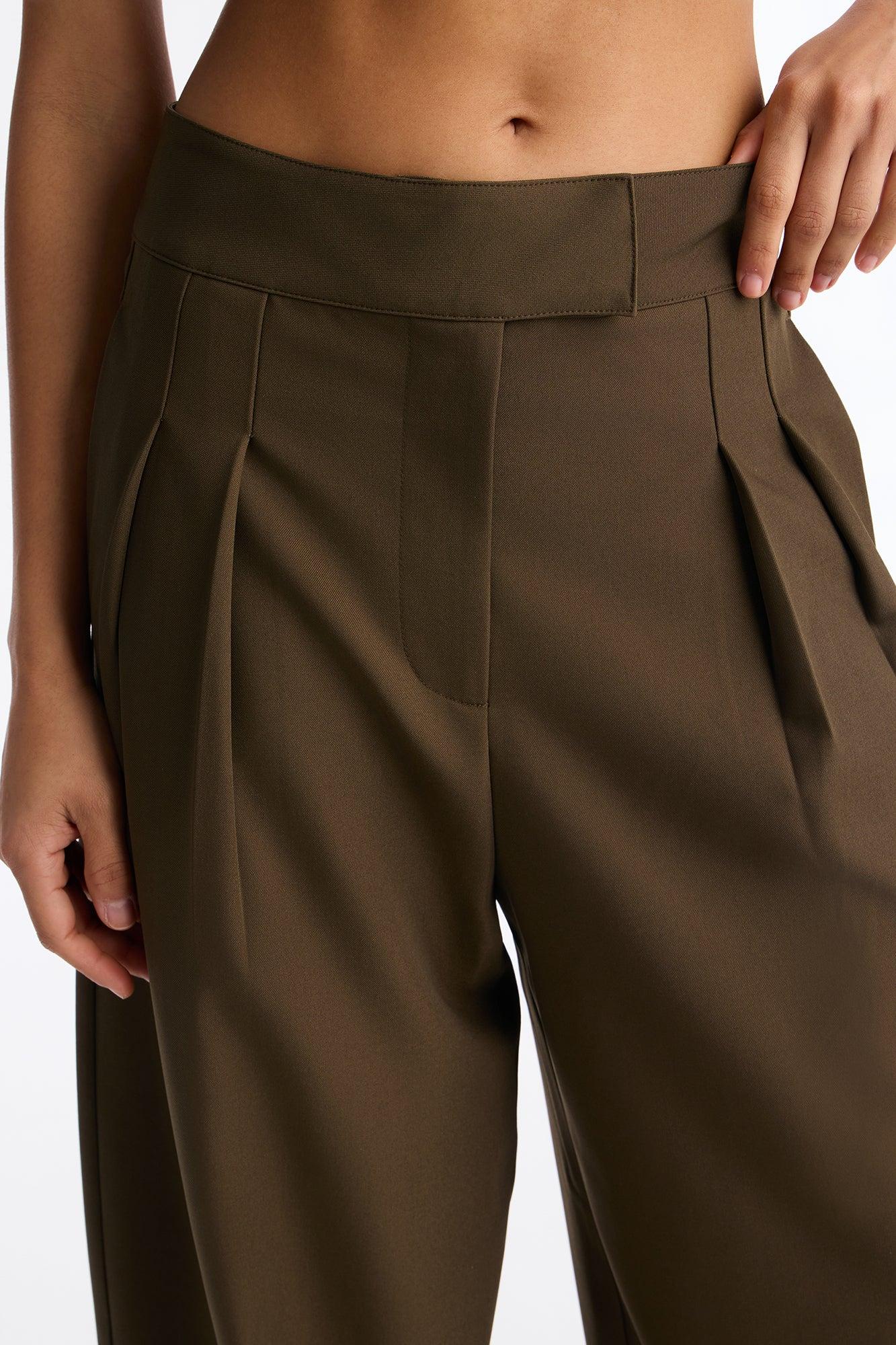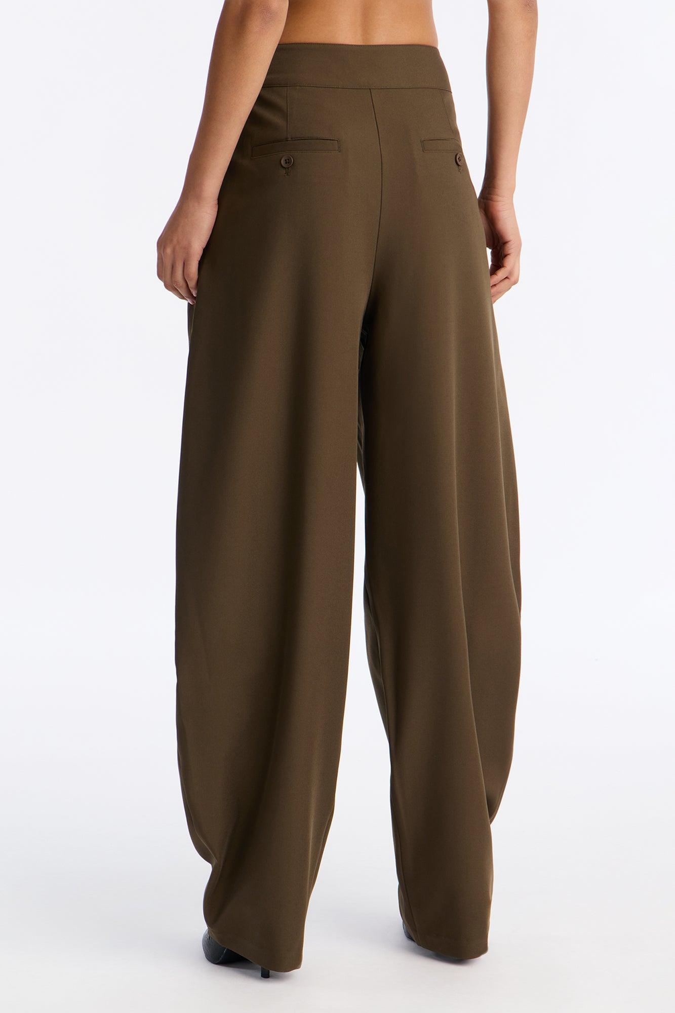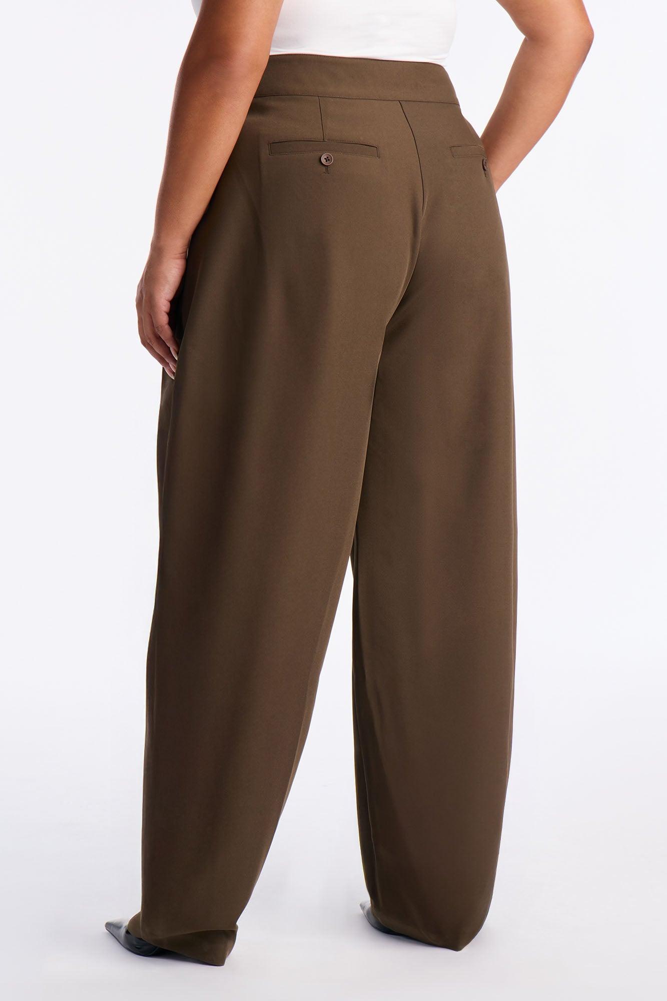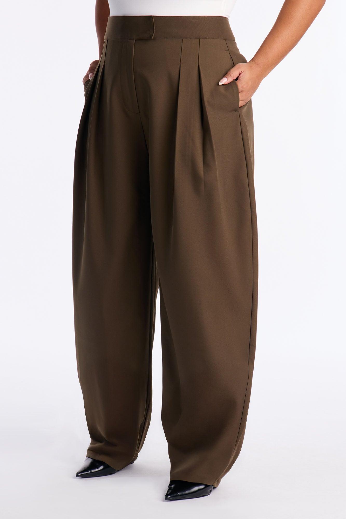 Available In Black, Camel And Olive. Barrel Leg Trouser Pant Hook And Eye Zip Closure High Rise Functional Pockets 32" Inseam Non Stretch Self: 92% Polyester 8% Spandex Imported California Proposition 65WARNING: Cancer and Reproductive Harm - www.P65Warnings.ca.gov.