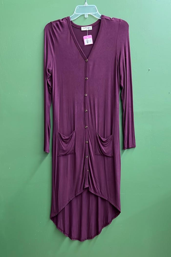 This long purple cardigan with pockets is the perfect balance of comfort and sophistication. Crafted from a blend of 95% rayon and 5% spandex, it ensures a soft, lightweight feel with added stretch. With its chic design, this timeless piece is sure to add a stylish, modern touch to any look.