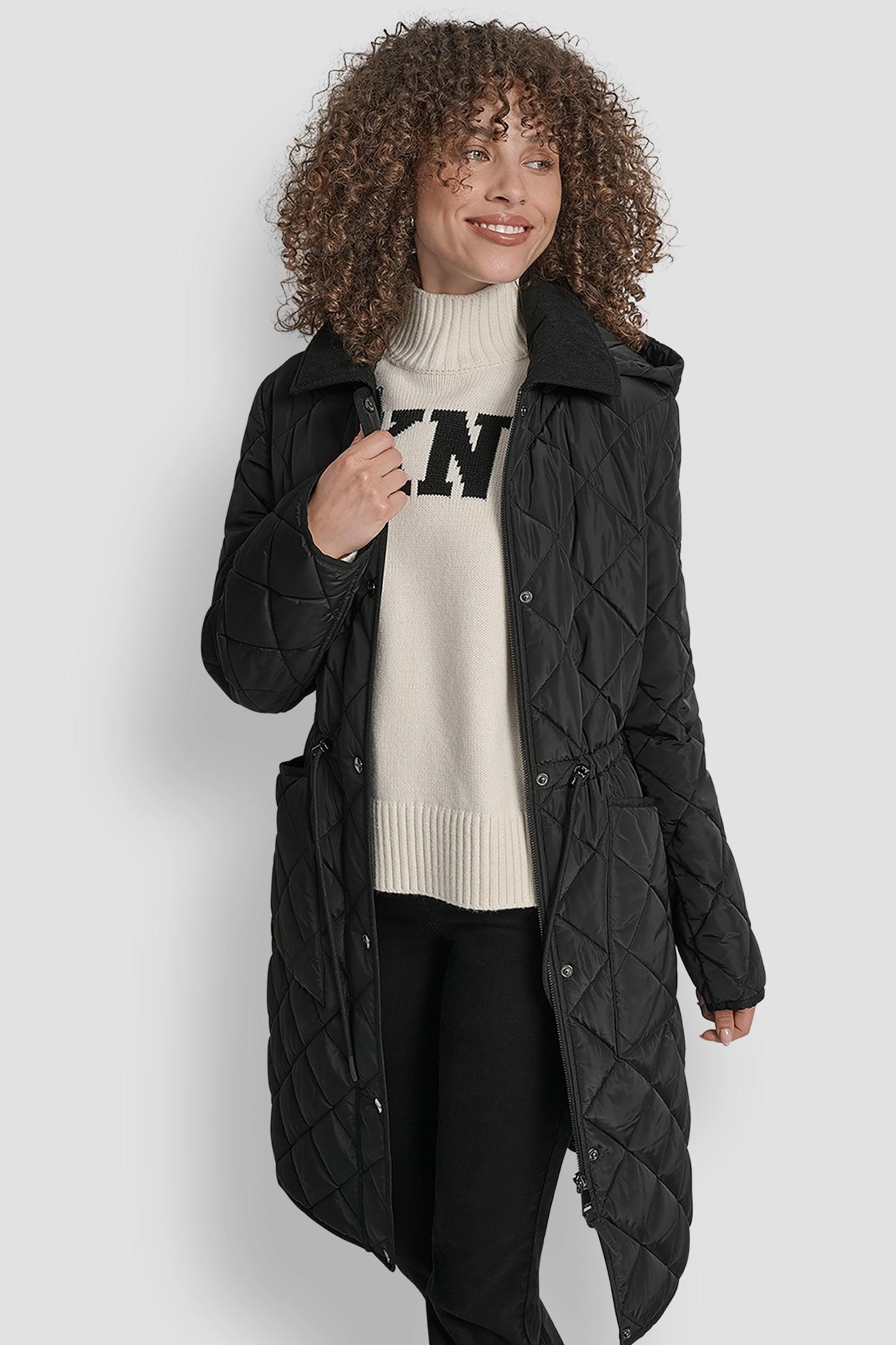 Long quilted coatMachine washShell: 100% polyester; lining: 100% nylonImported Style # D...