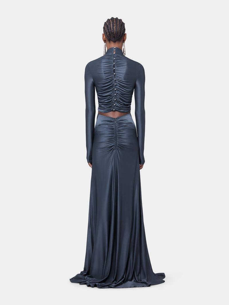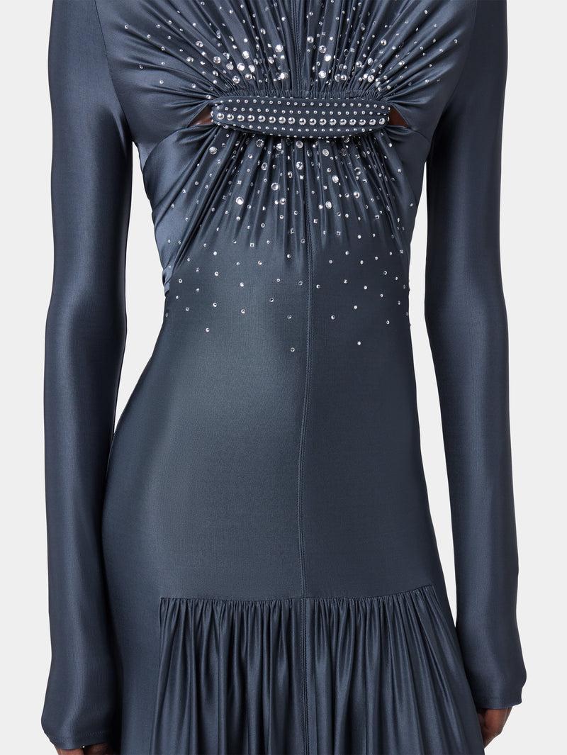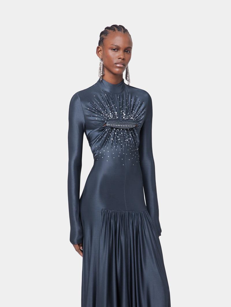 LONG SLATE EMBROIDERED DRESS IN JERSEY