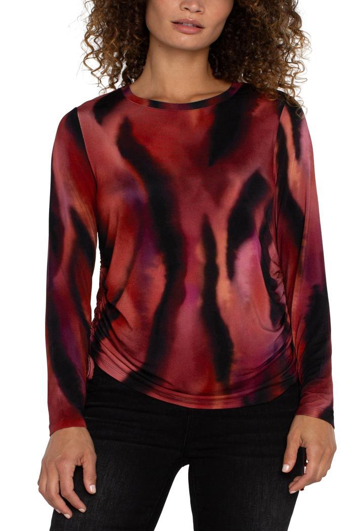 Embrace the vibrant hues and playful design of this top to infuse your wardrobe with a pop of color and personality. The classic crew neckline offers timeless appeal, while the long sleeves provide both style and warmth for those cooler days. The side ties add a fun and feminine detail, allowing you to customize the fit and add a hint of allure to your look.