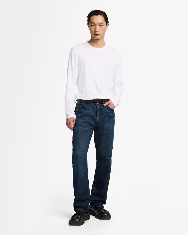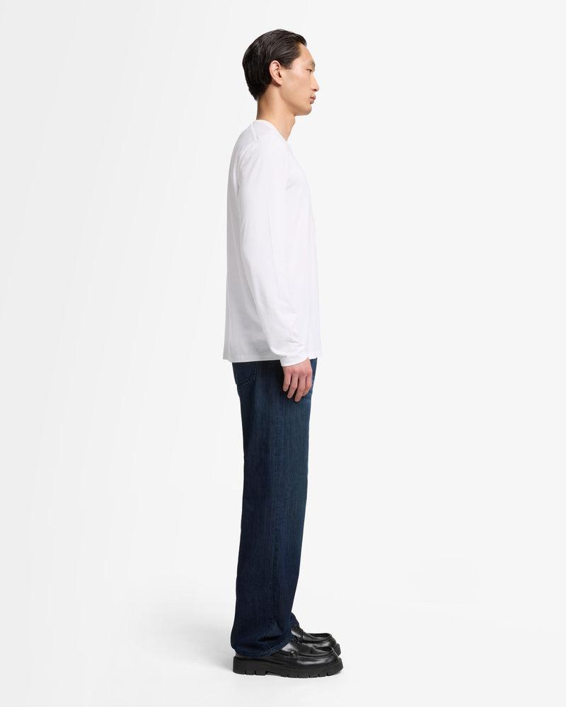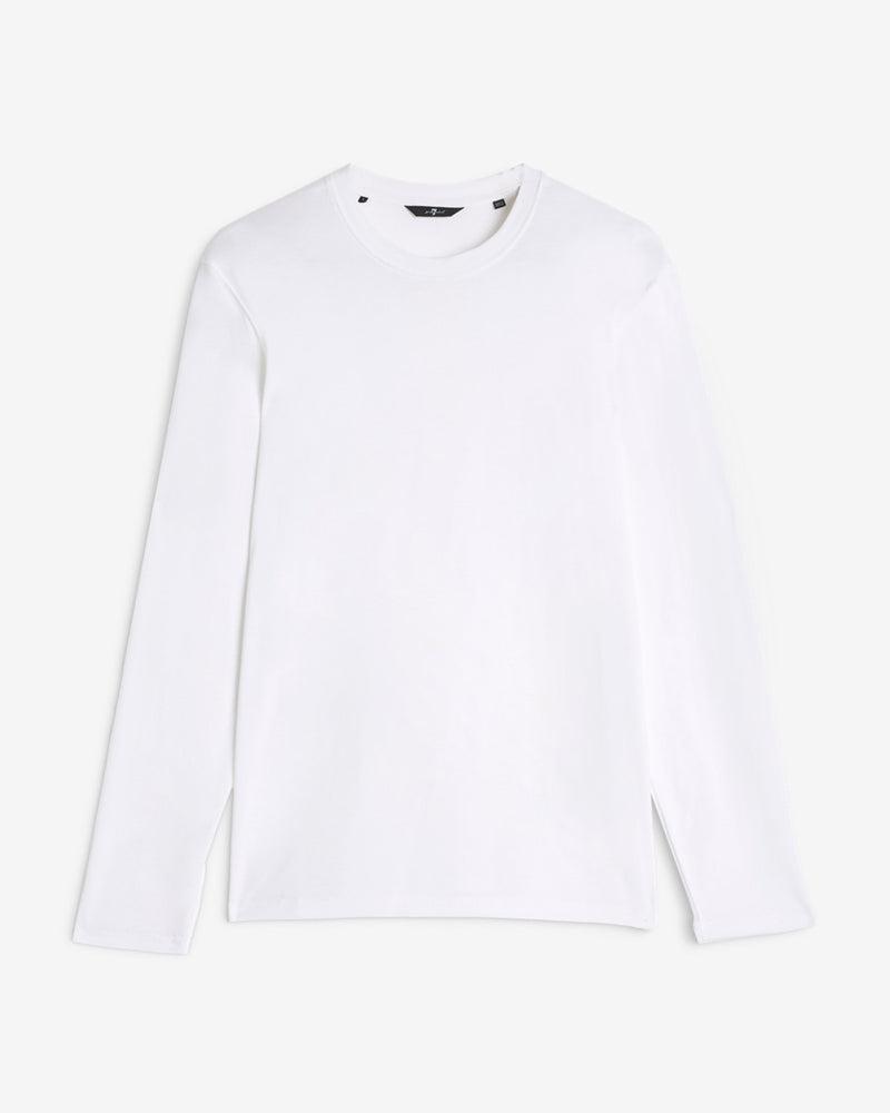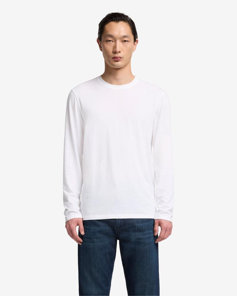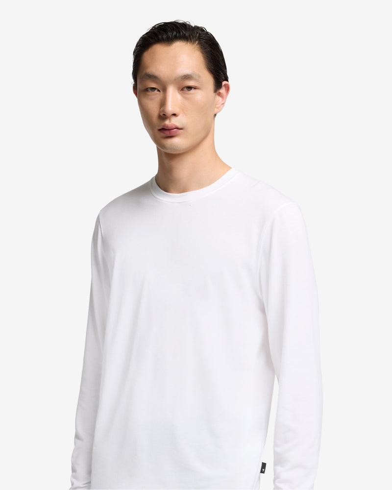 Fits like: Streamlined, slim-fit long sleeves that layers cleanly under jackets or stands alone with minimal effort. Feels like: Smooth, airy, with a naturally soft texture and a bit of stretch. The Details: Crisp white shade Classic crew neckline Easy T-shirt silhouette