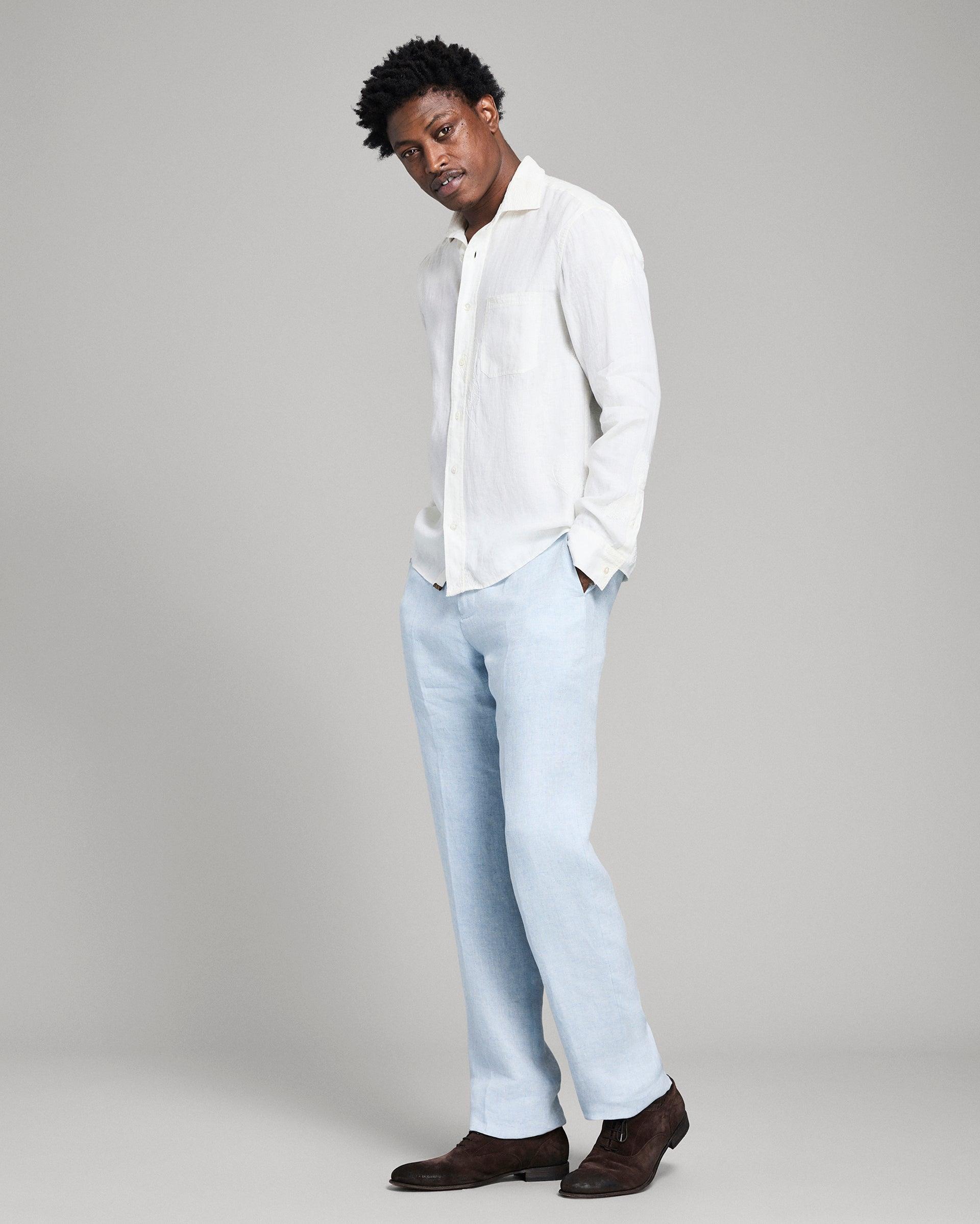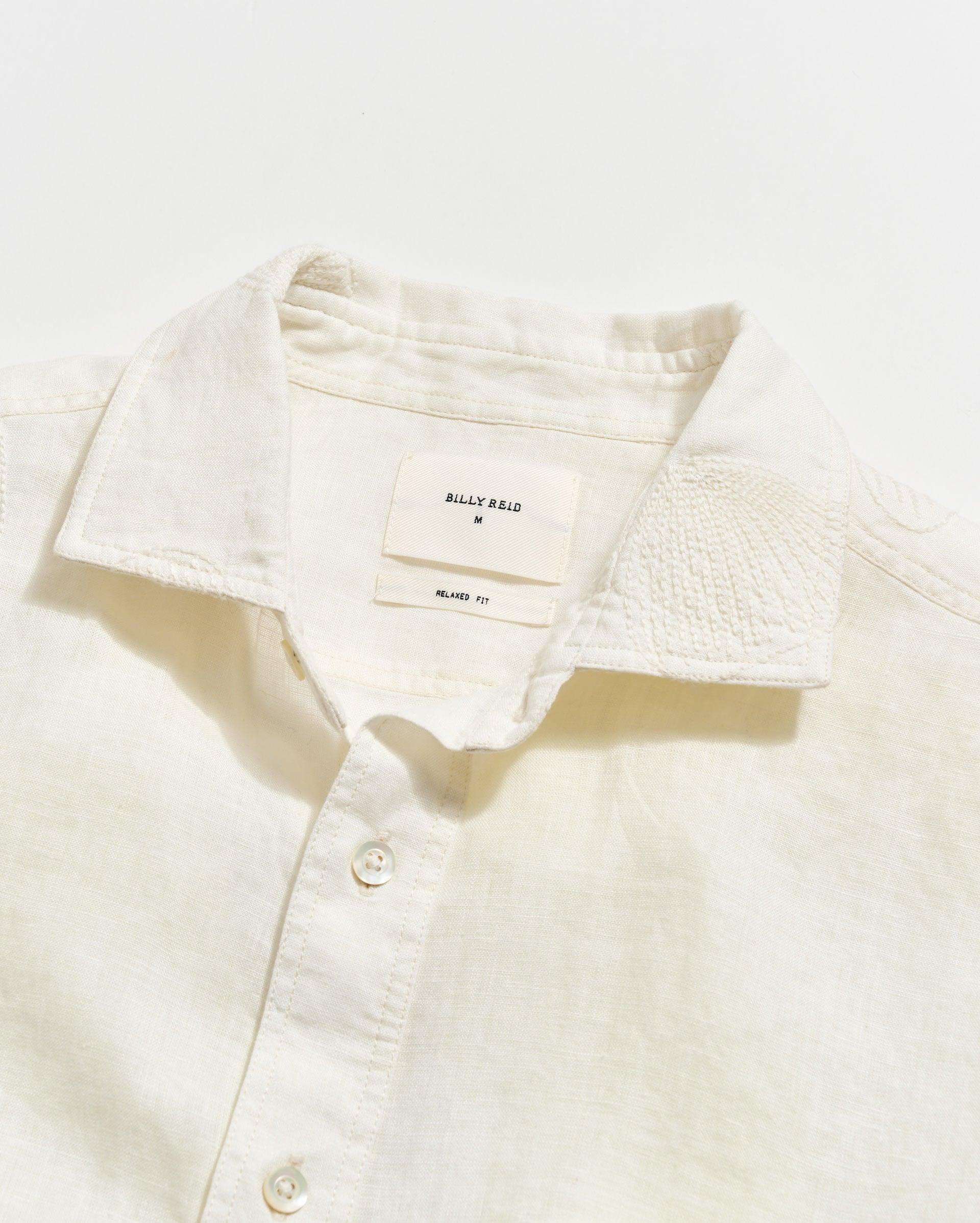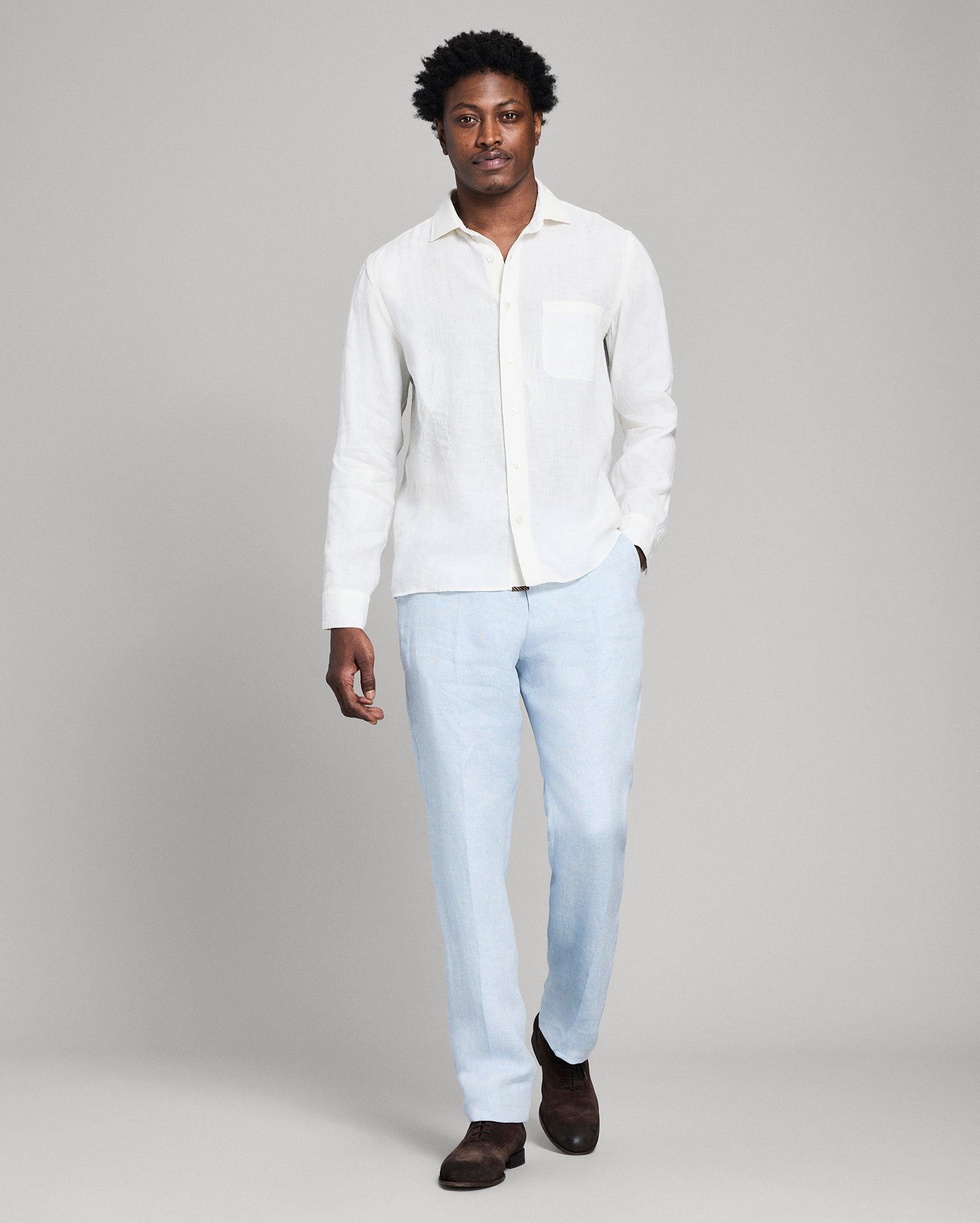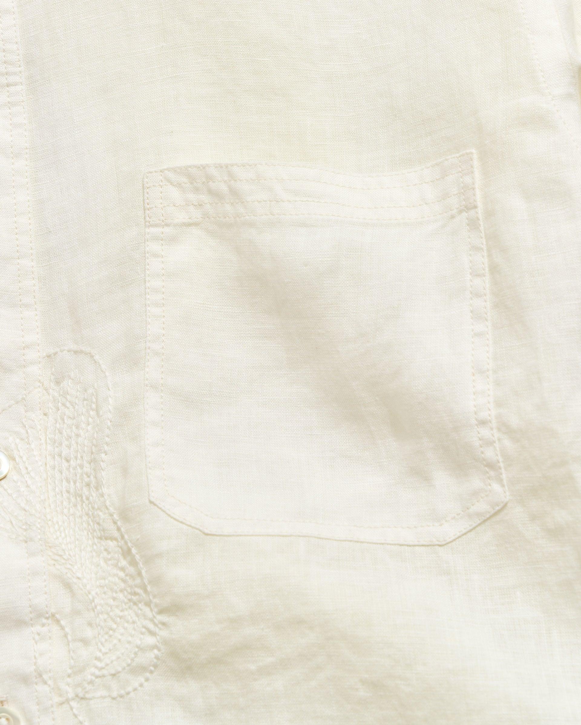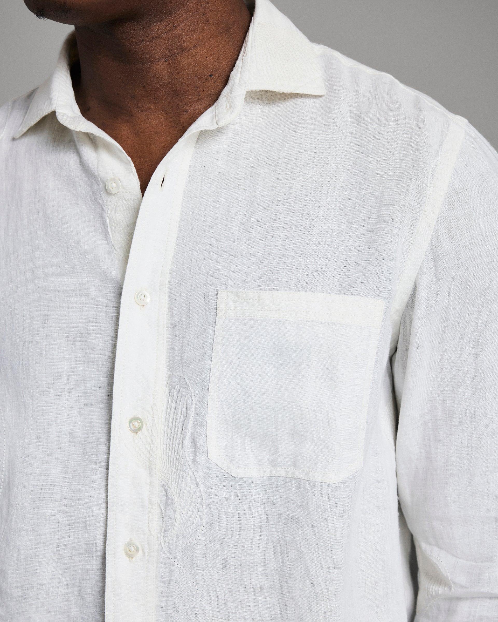 This long-sleeve shirt is crafted with an airy 100% linen. Tonal embroidery in a custom floral design graces this style throughout for a unique look. The result is a piece that looks great worn on its own with an open spread collar, or layered under a suit for an added bit of intrigue.