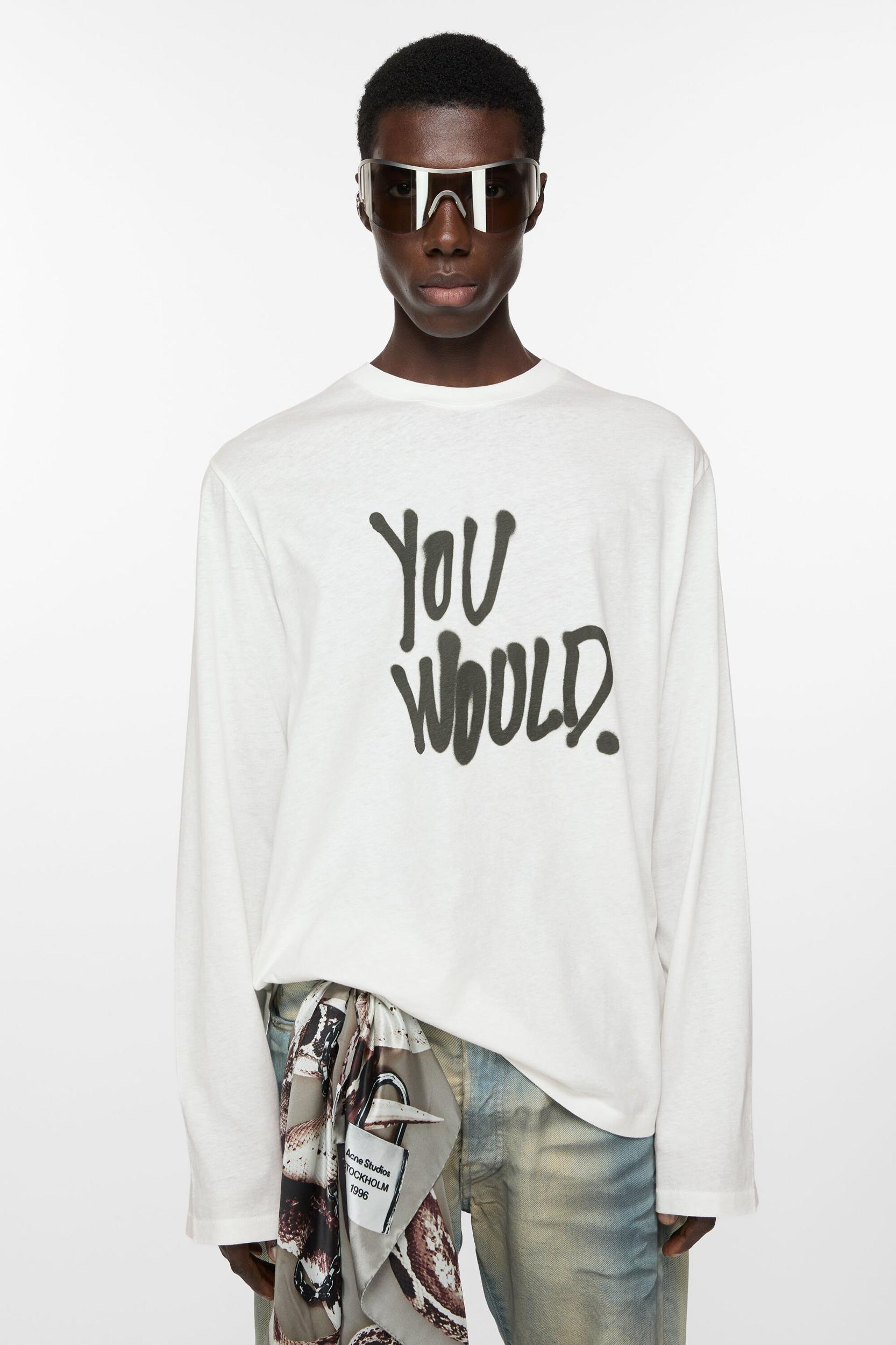 Long sleeve t-shirt is cut to a relaxed unisex fit and hip length. Crafted in a jersey cotton and detailed with a 'YOU WOULD.' sprayed finish animation. FN-UX-TSHI000138