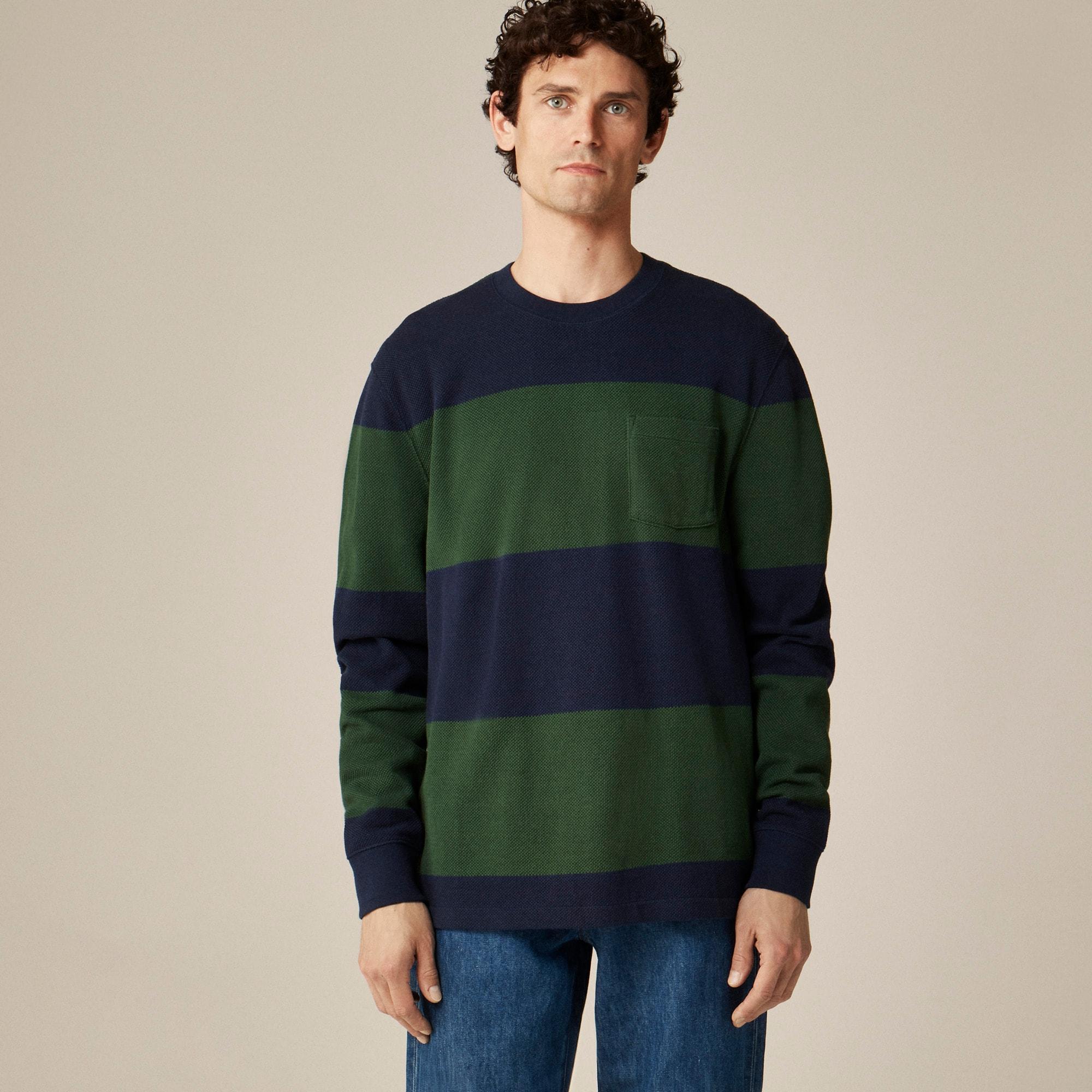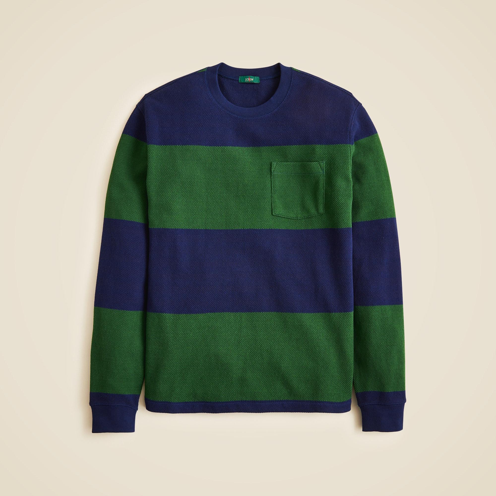 Long-sleeve macropiqué cotton T-shirt in stripe