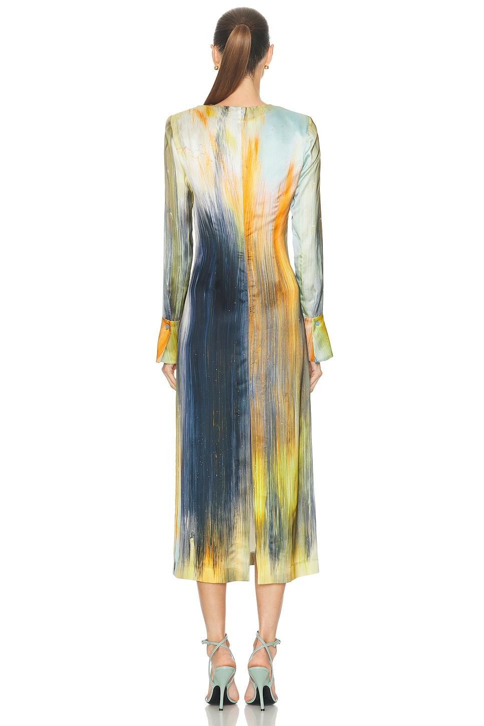 dress100% Viscose / Dry clean / Unlined / Hidden back zipper closure / Flared cuffs with button closure / Shoulder pads / Made in Italy / Our Style No. OSCF-WD102 / Manufacturer Style No. 24PN259AVM / Model is wearing size 2.