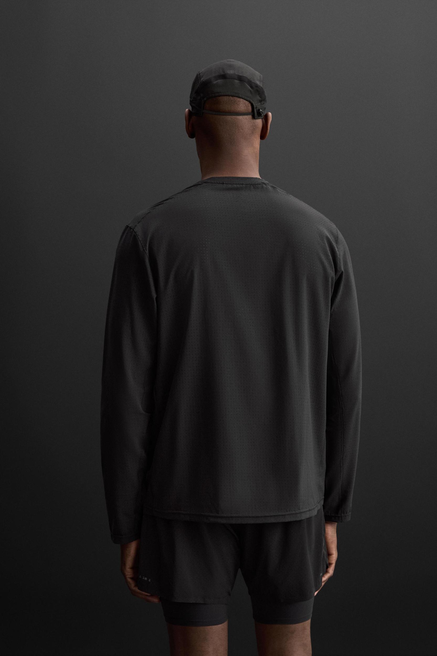 Athletic T-shirt made of lightweight, stretchy perforated technical fabric.