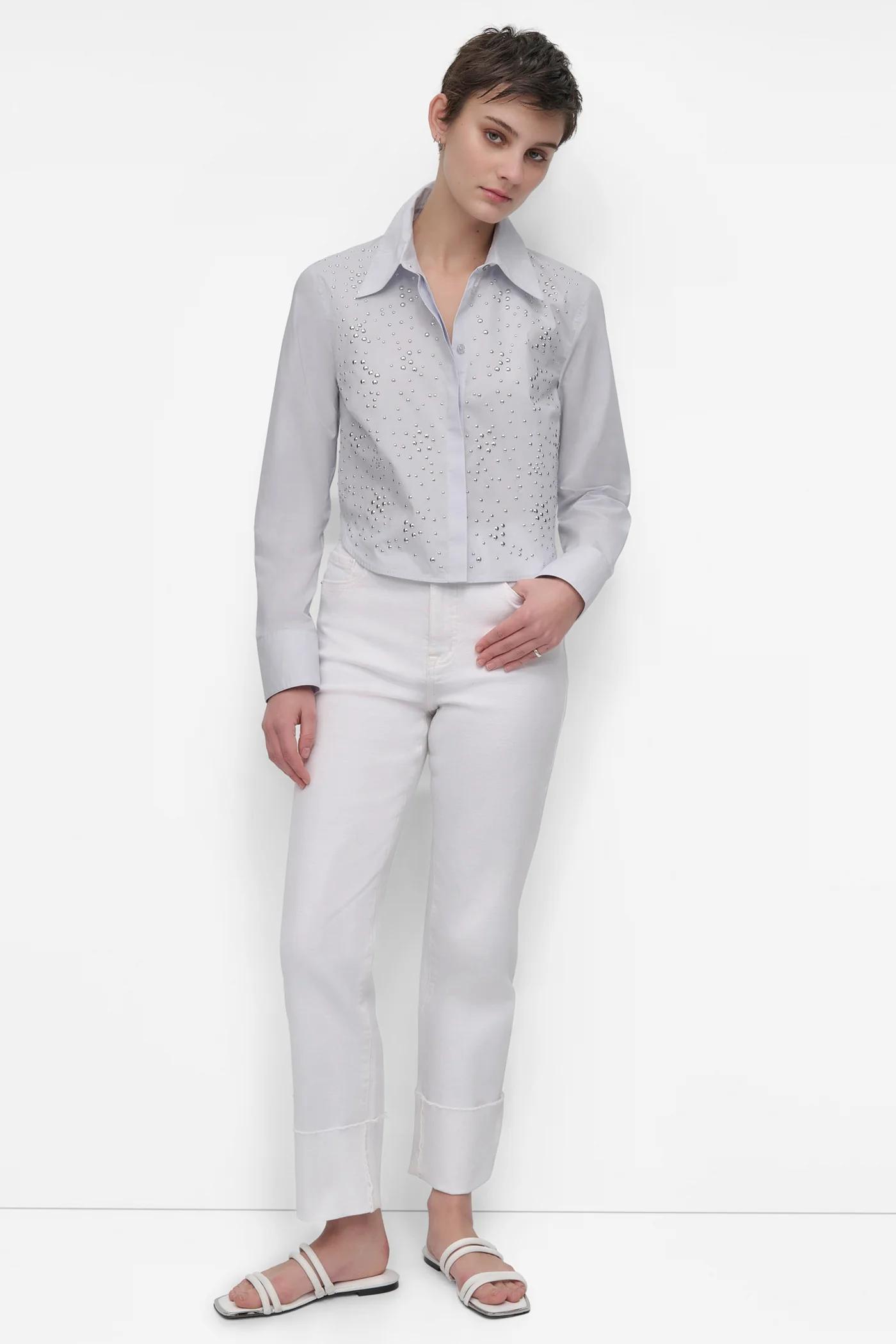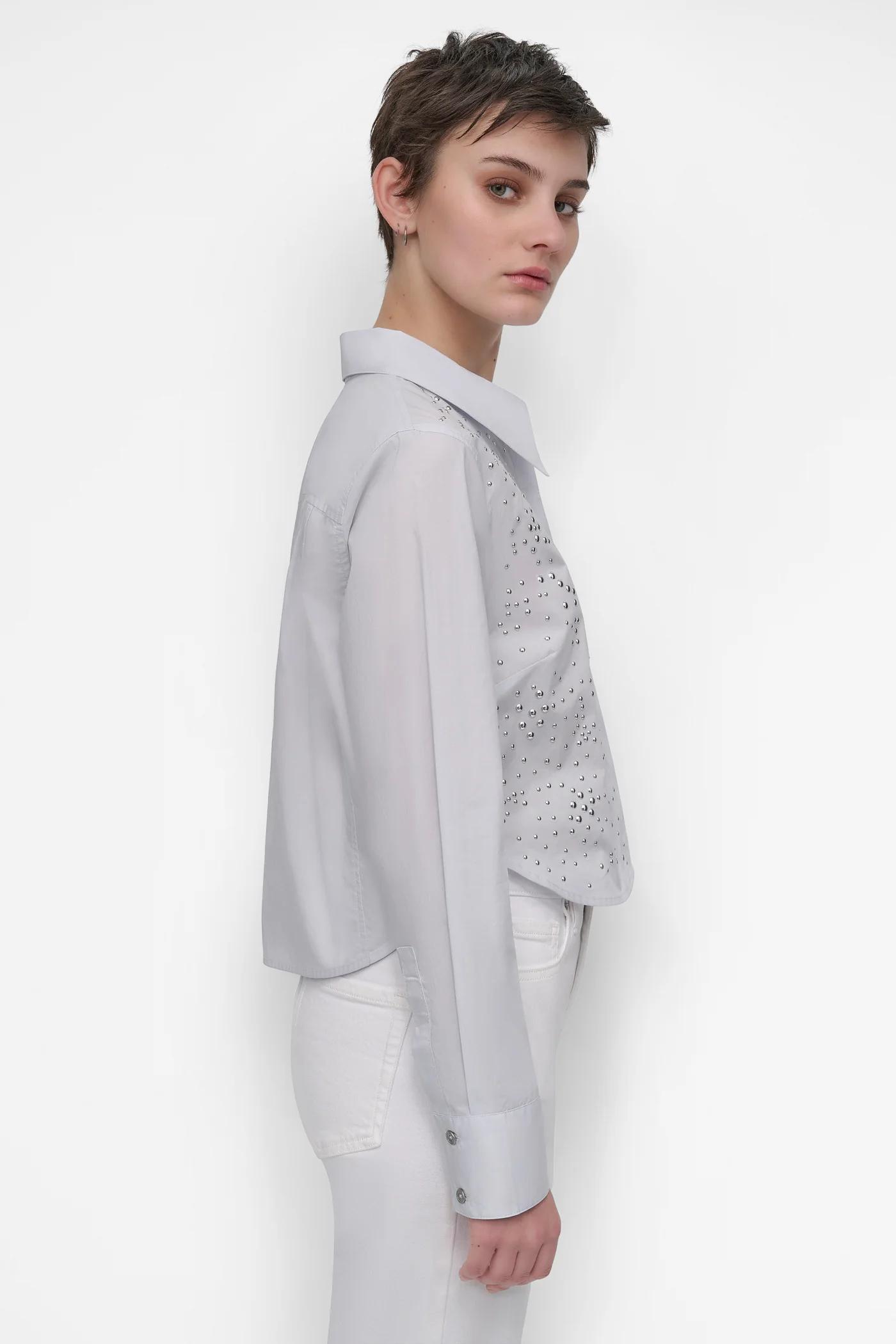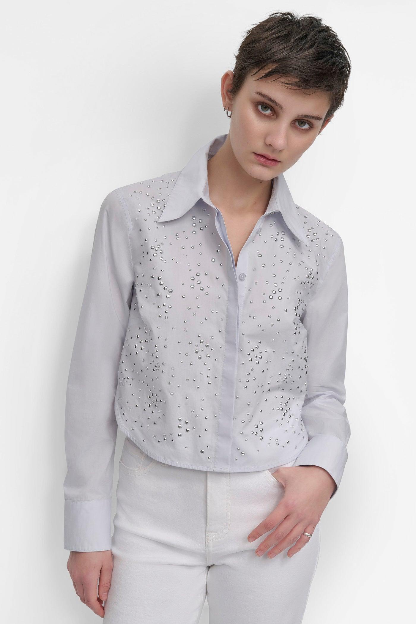 LONG SLEEVE POPLIN TOP WITH DOME STUDS