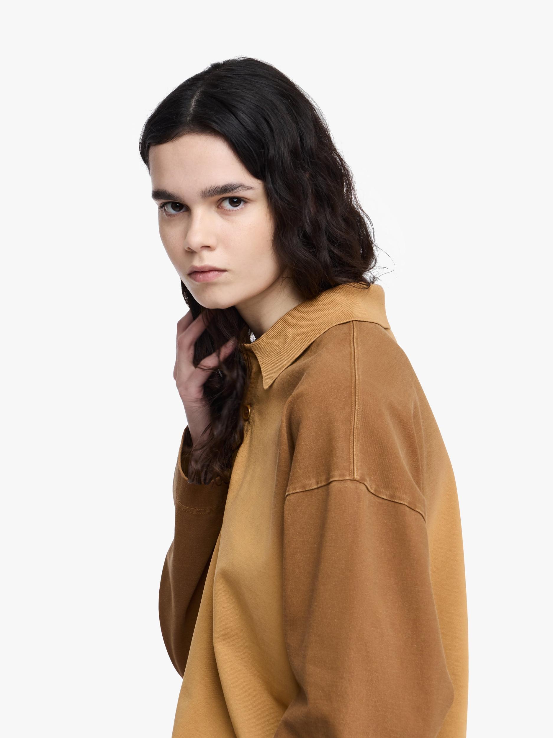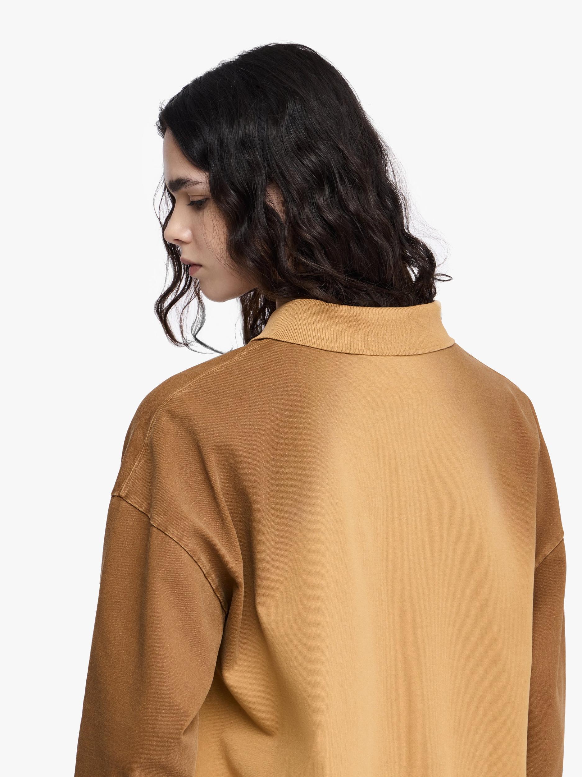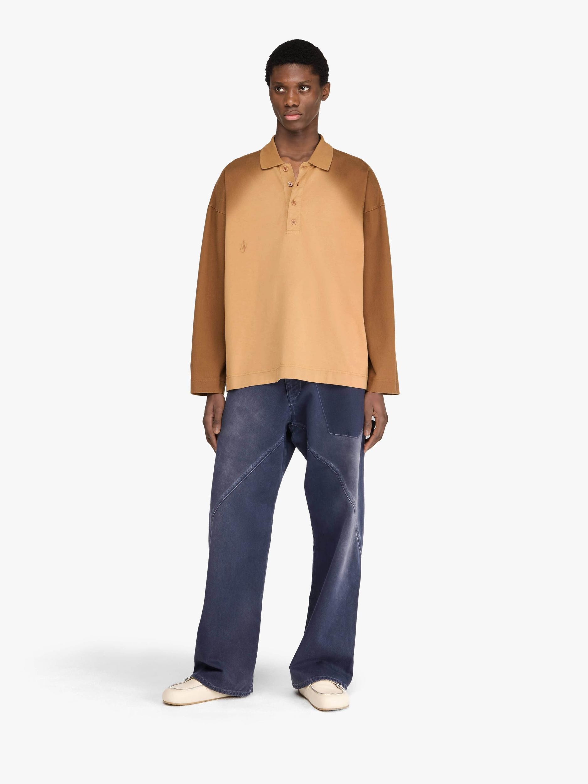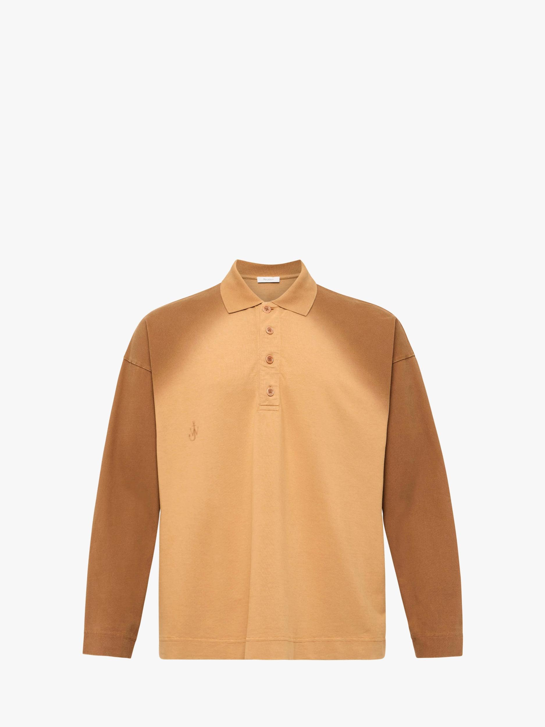 Long sleeve rugby polo top with collar Dropped shoulders Contrast trompe l'oeil raglan sleeves Button placket with tonal buttons Anchor print on front to match sleeve colour Relaxed fit - take your usual size