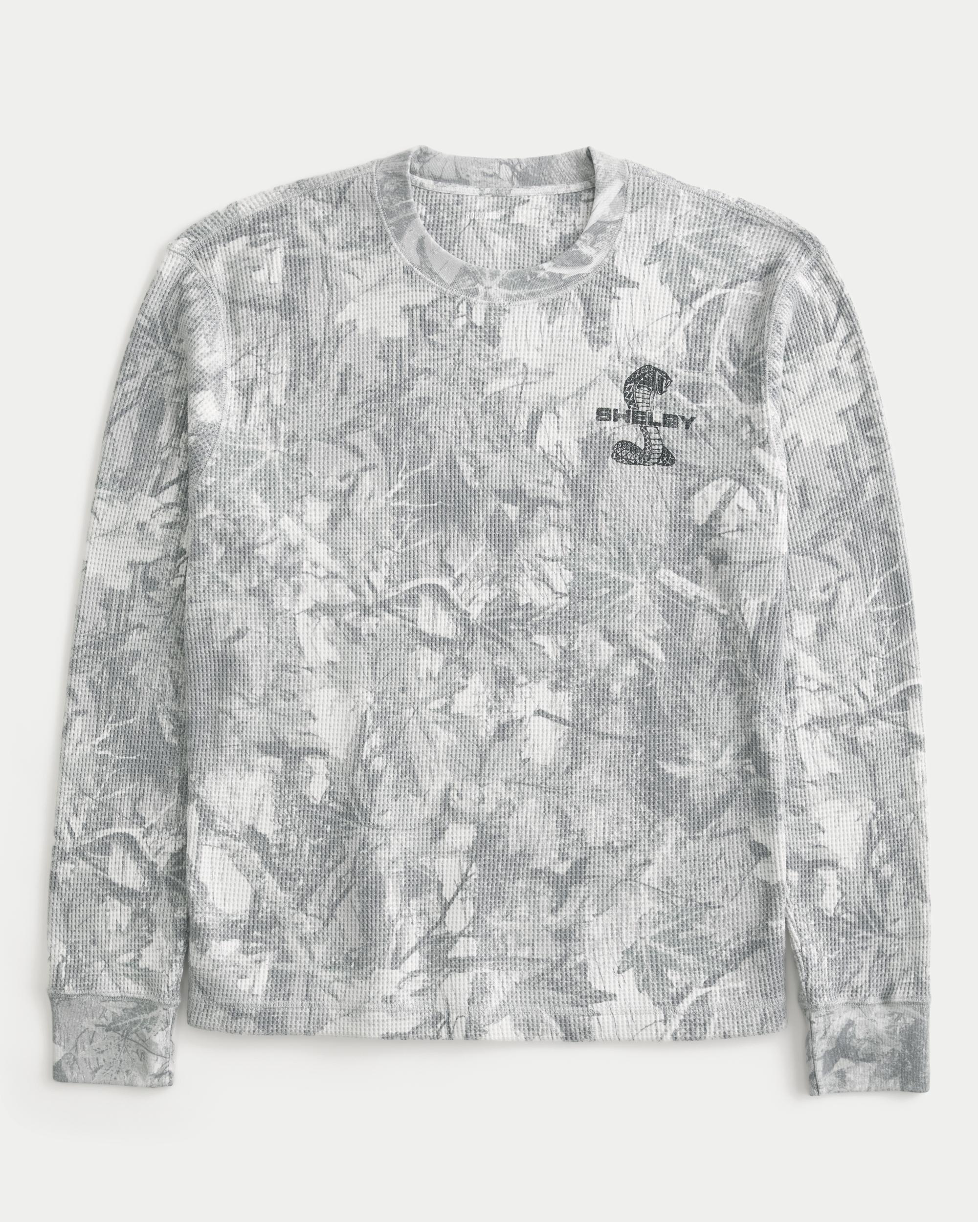 A comfortable long-sleeve tee in super soft waffle fabric, featuring an official licensed Shelby print graphic at the left chest and all-over camo pattern. Crew neckline.