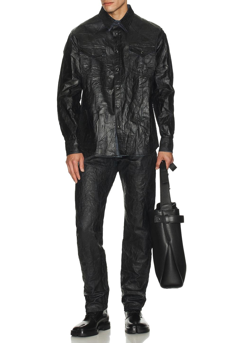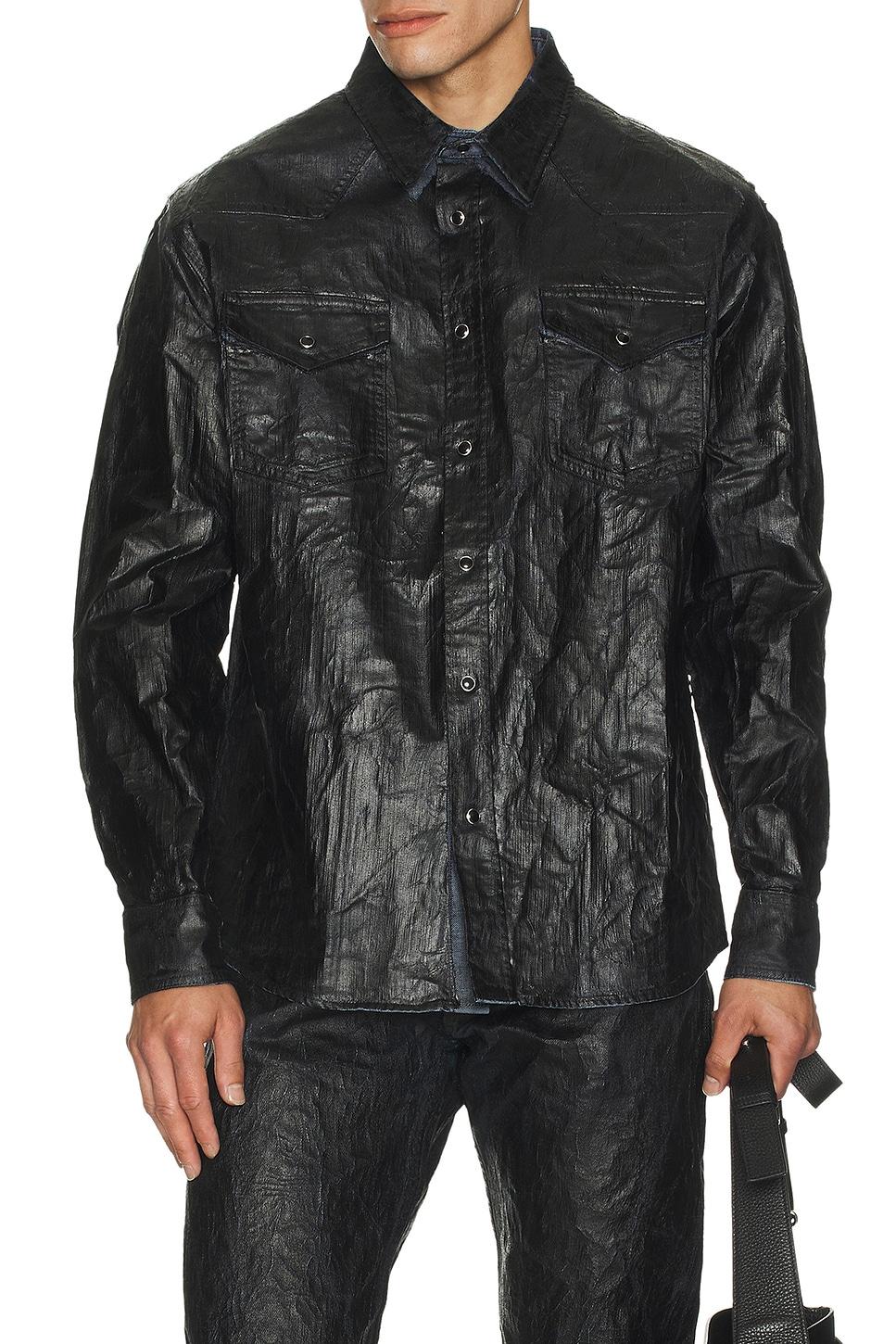 long sleeved shirt100% cotton / Hand wash / Front snap button closure / Chest snap button pockets / Snap button cuffs / Heavyweight coated denim fabric / Made in Italy / Our Style No. MM6B-MS45 / Manufacturer Style No. SH2DT0033-M30029-963 / Model is wearing size 48.