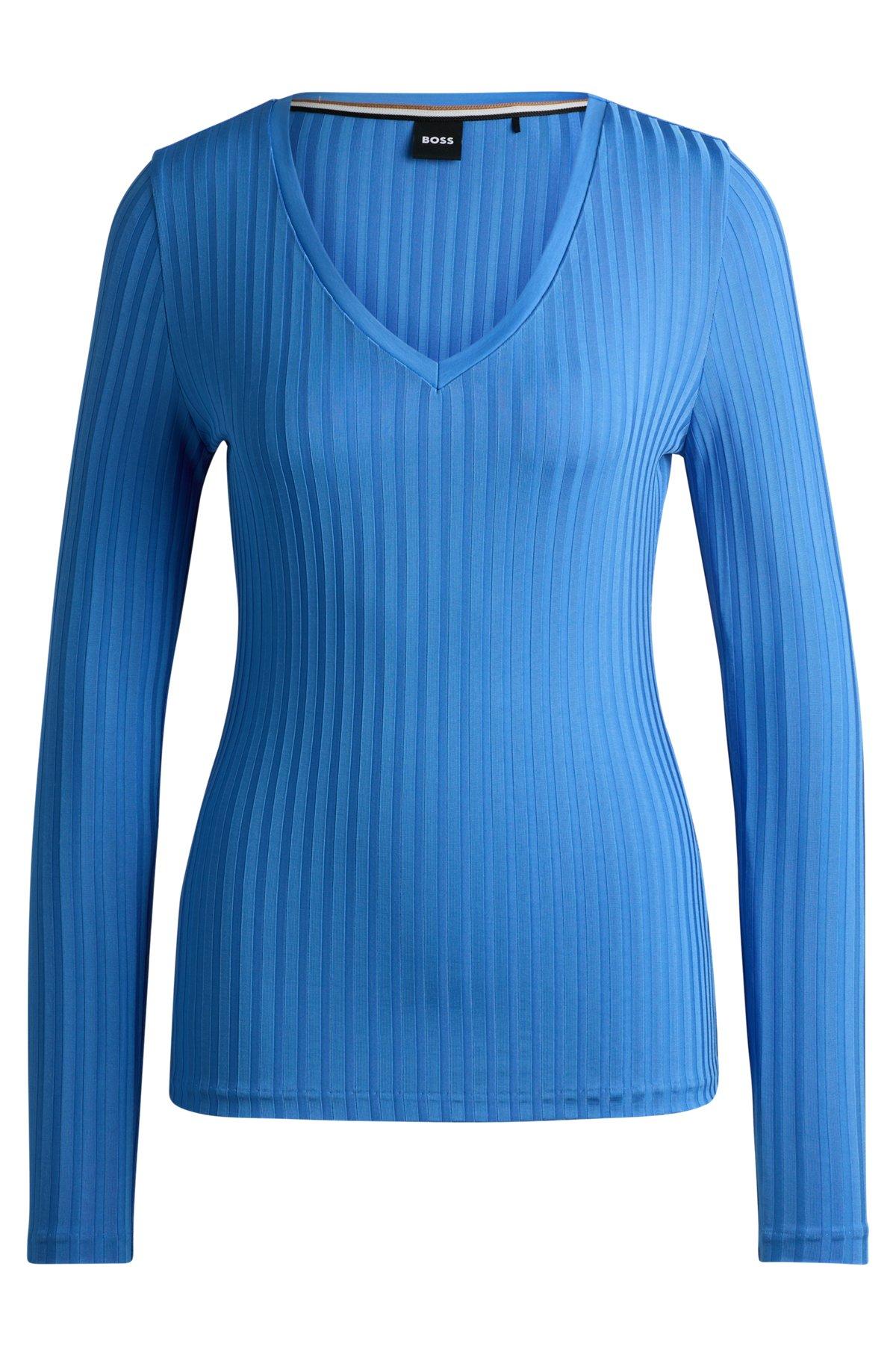 Long-sleeved V-neck top in lustrous ribbed jersey