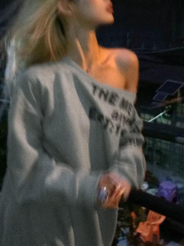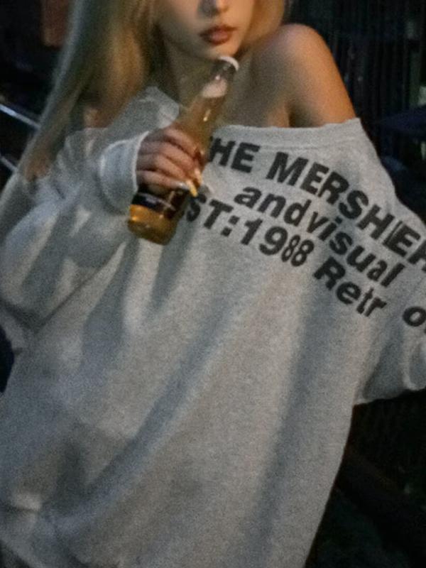 Long Sleeves With Slanted Shoulder Lettering Design Sweatshirts