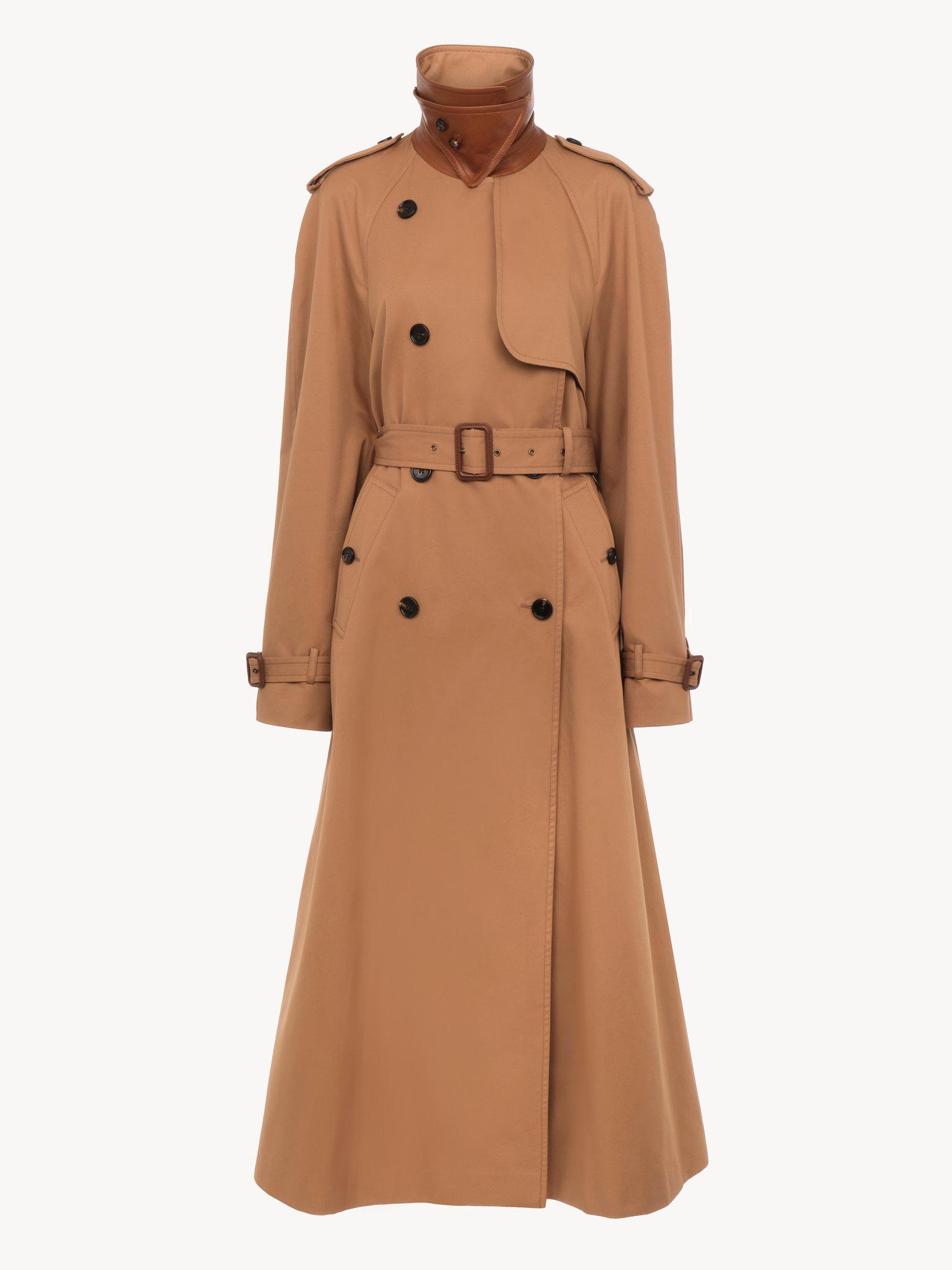 Long trench coat in cotton gabardine