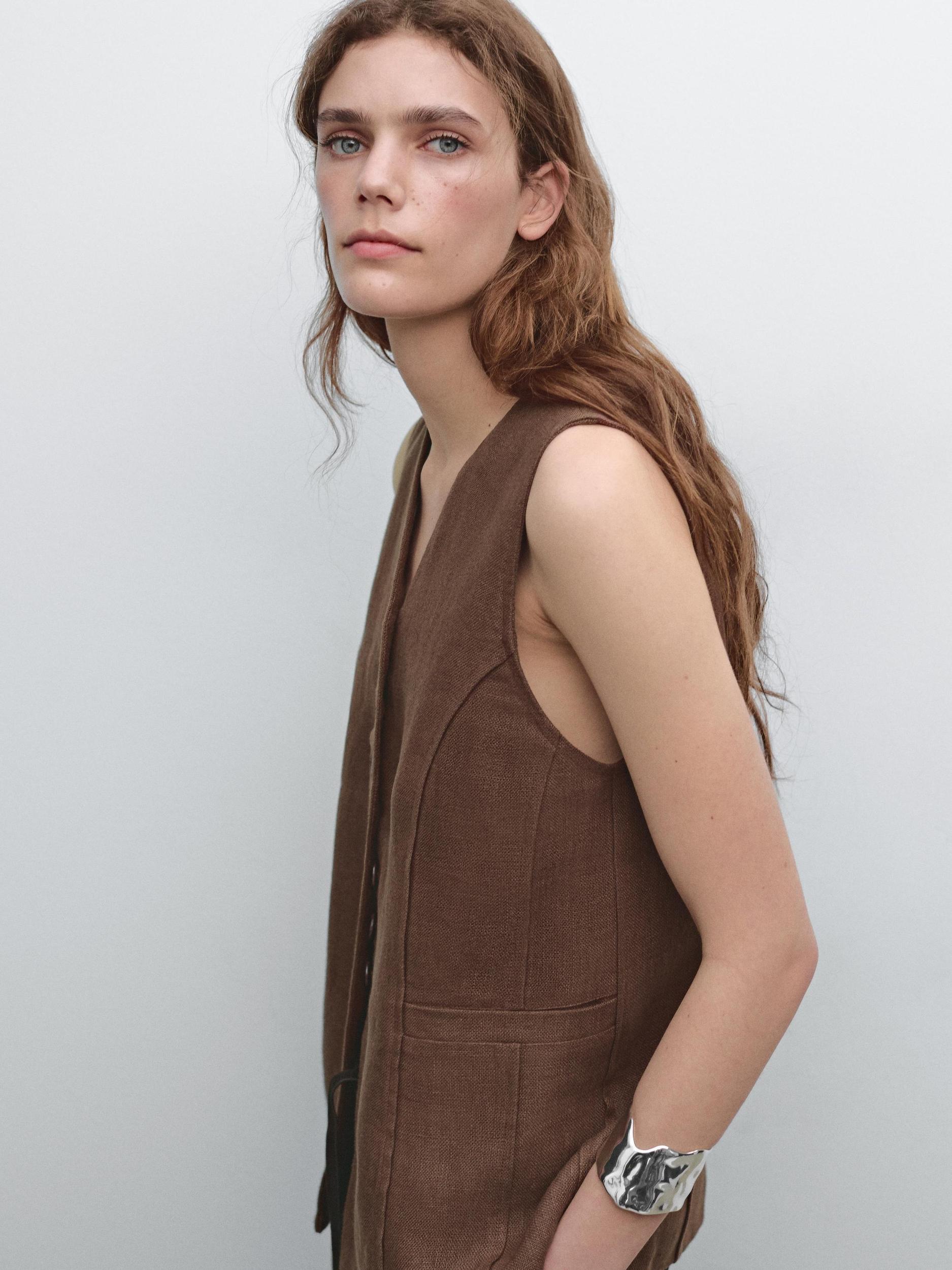 Long waistcoat with linen fabric detail