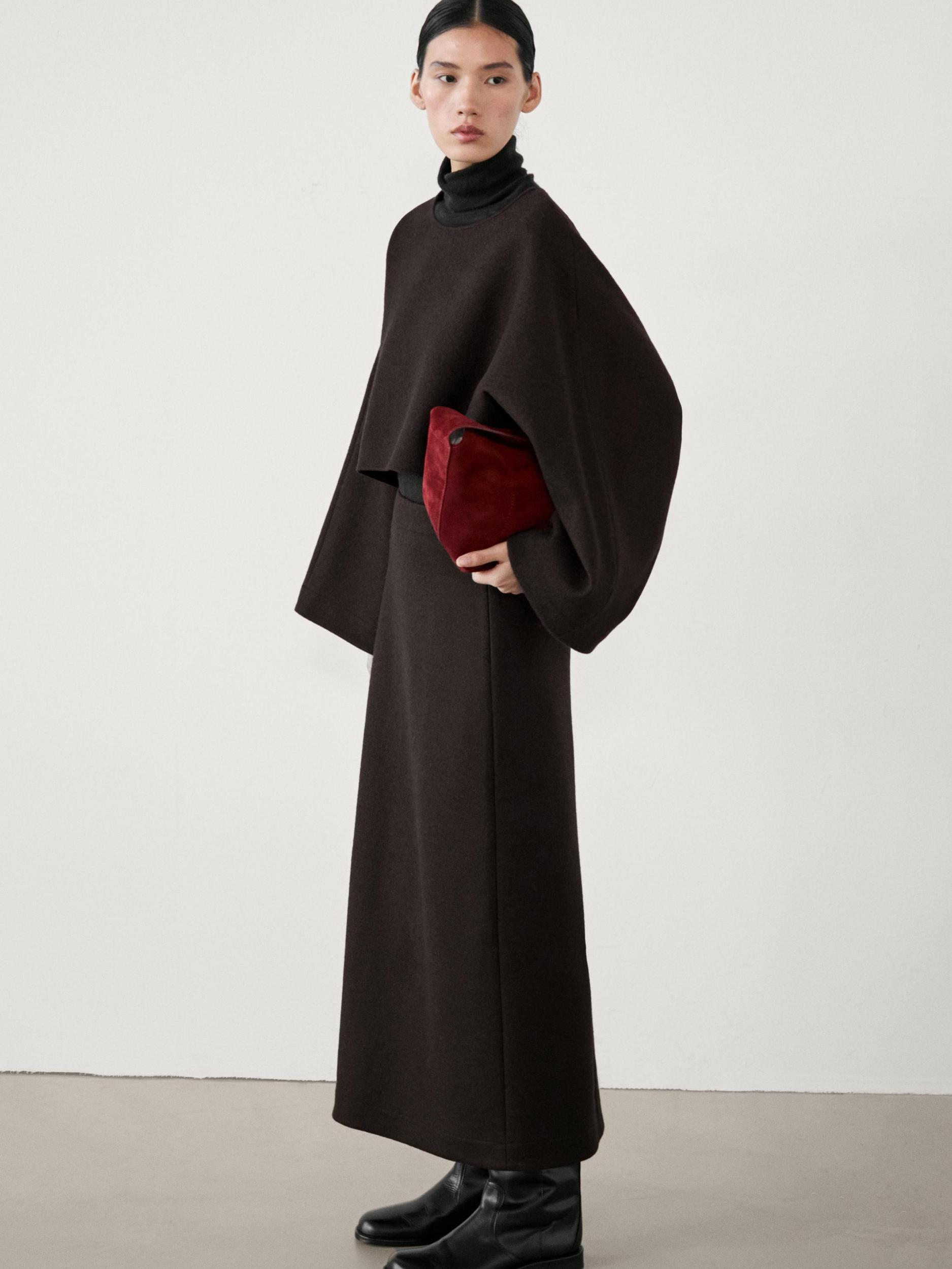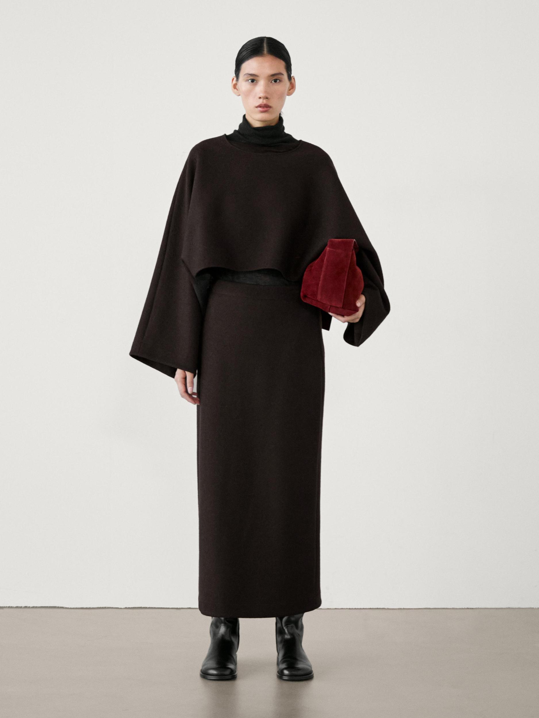 Long skirt made of a wool blend knit , Side zip fastening, Hem with back vent