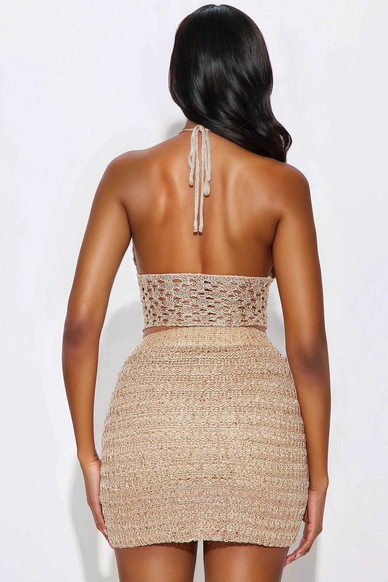 Look At Me Crochet Halter Top Skirt Set - Gold