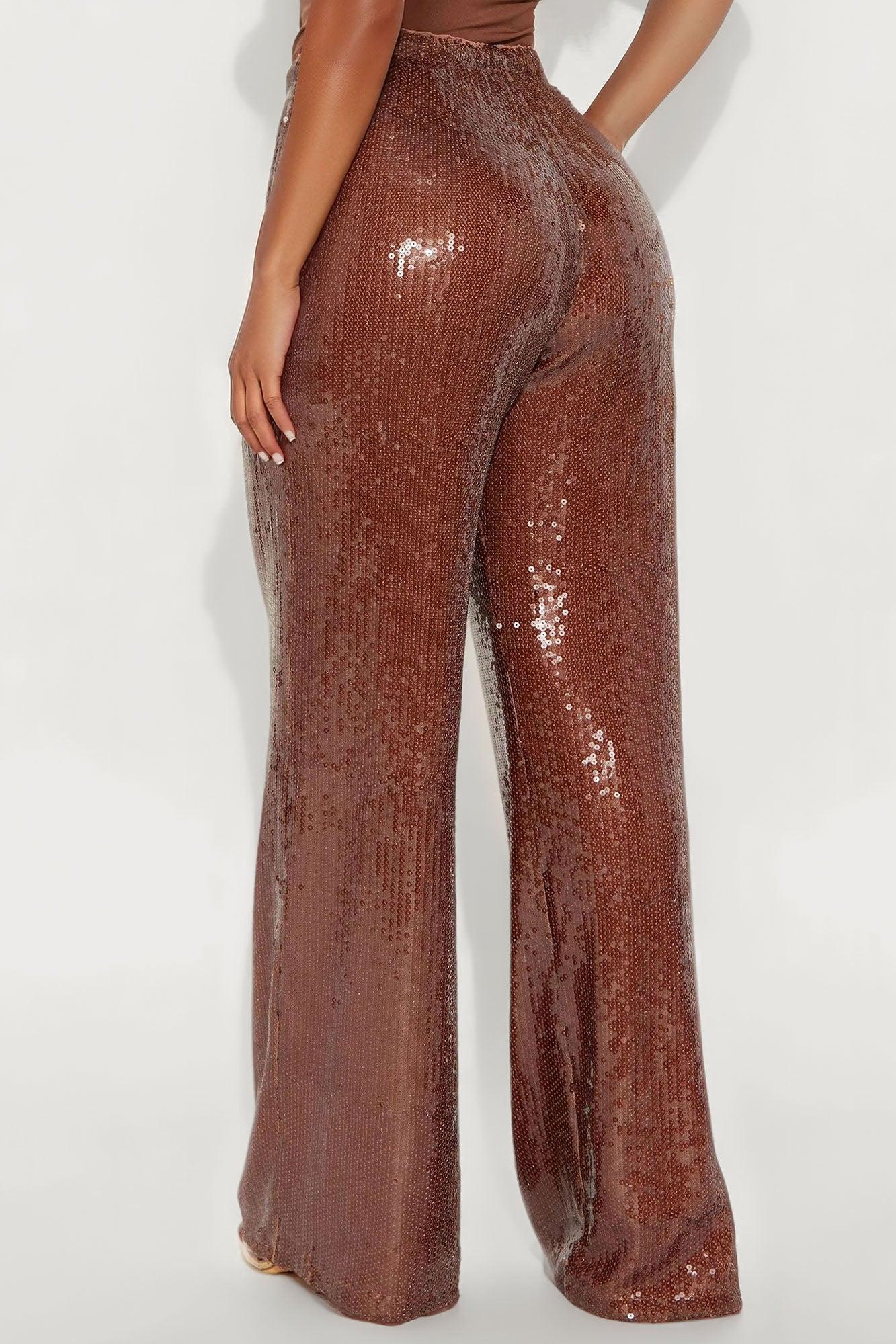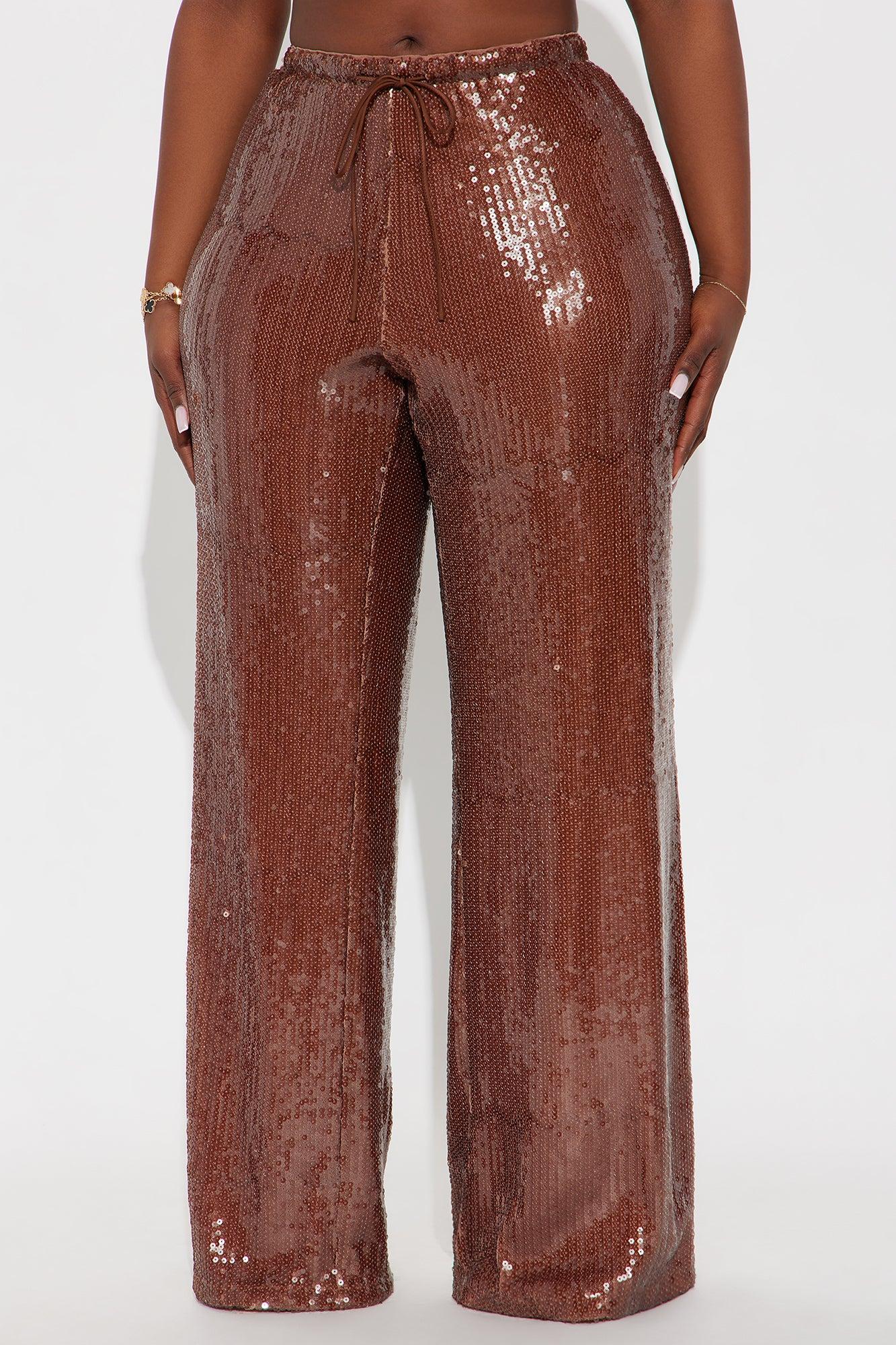 Look My Way Low Rise Wide Leg Sequin Pant 33 - Brown Female