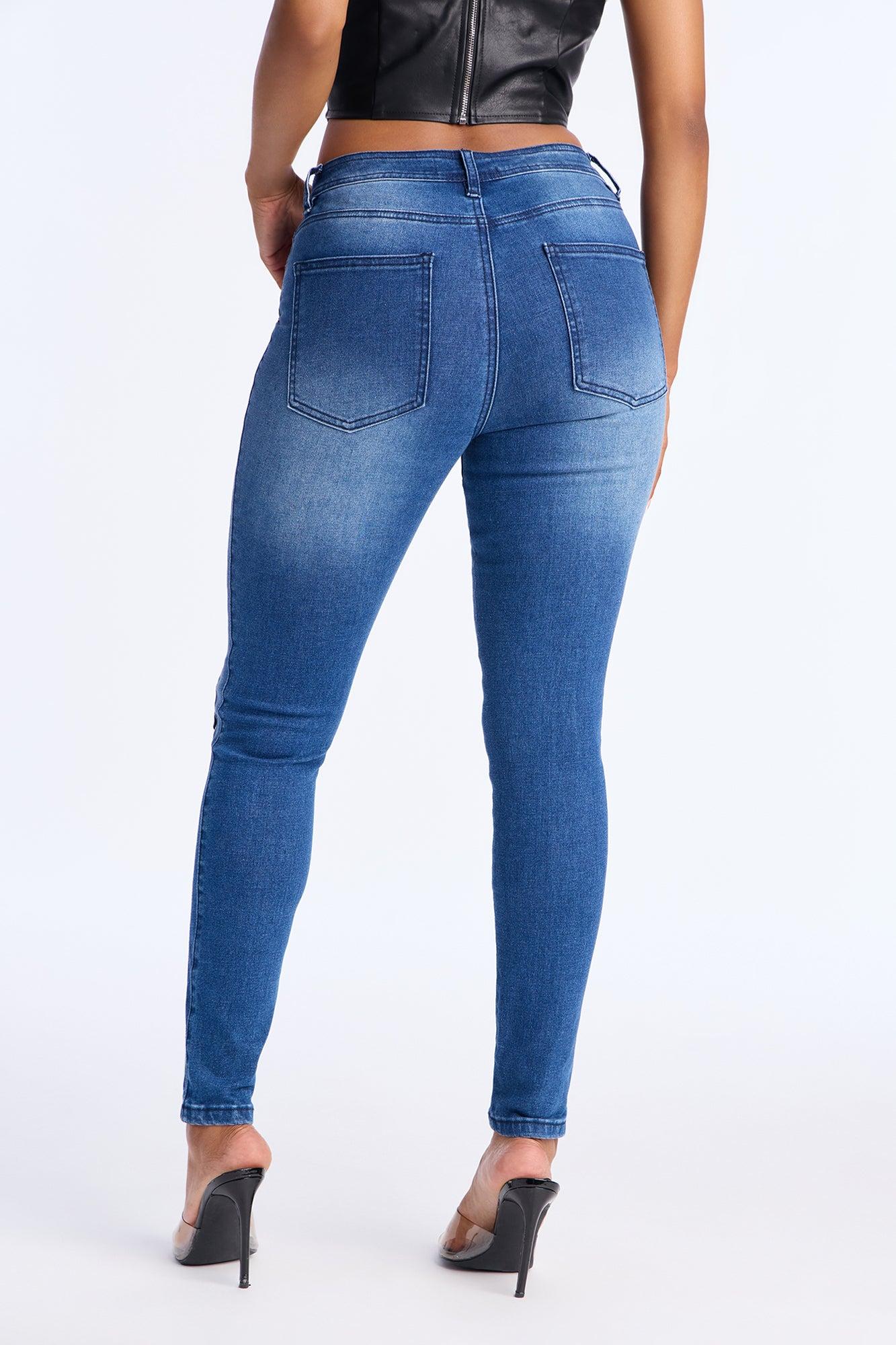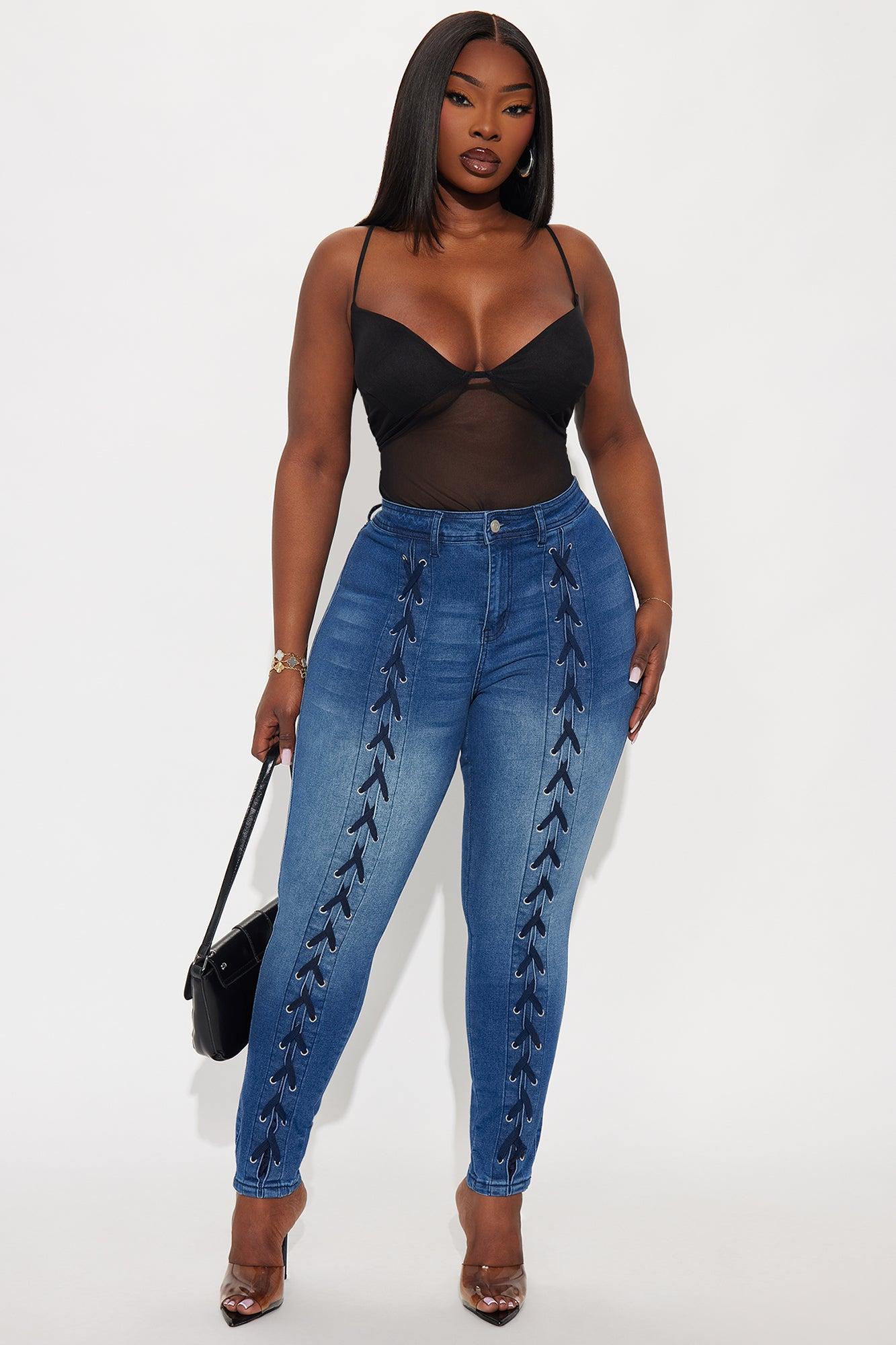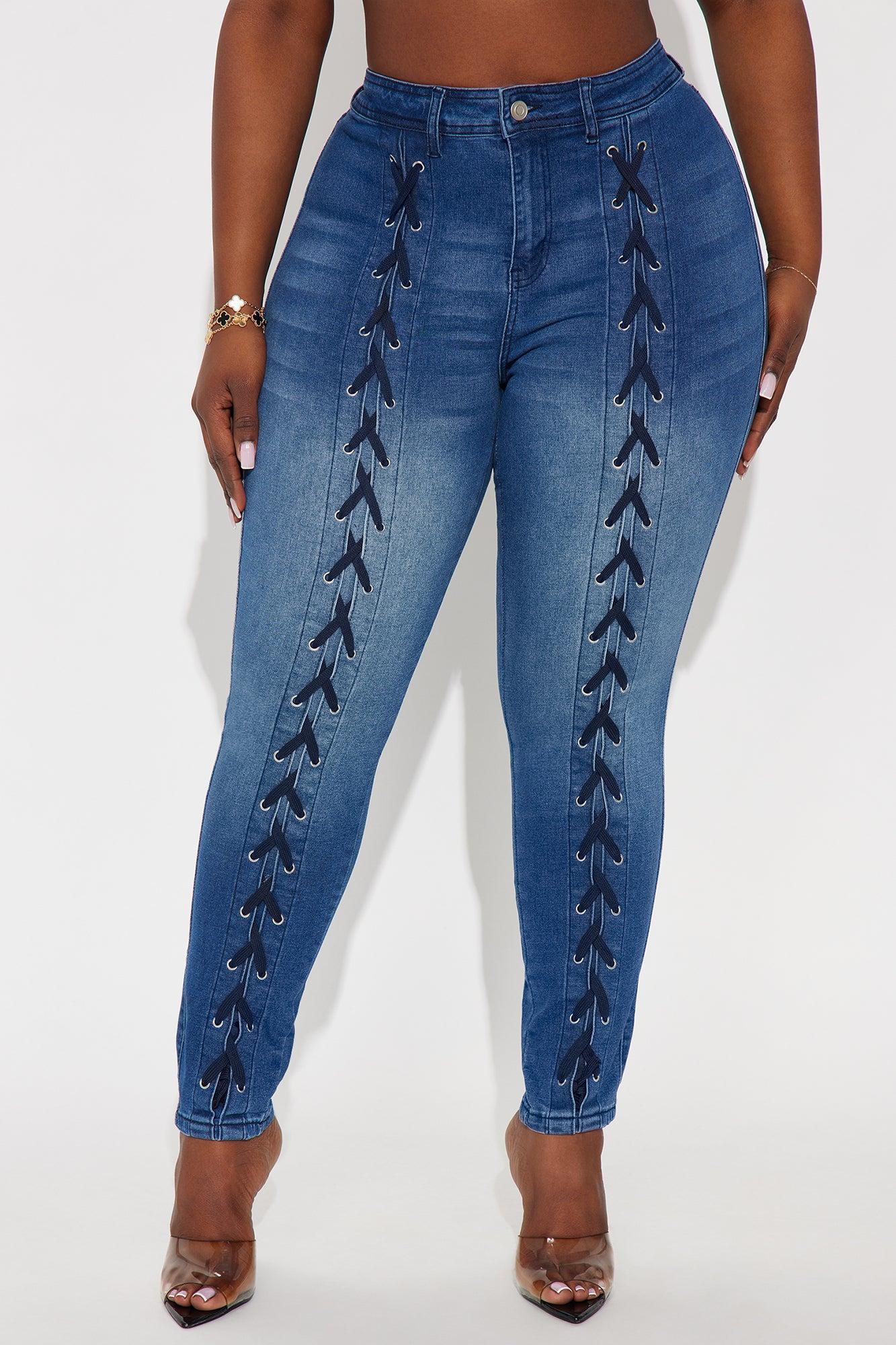 Look This Way Lace Up Skinny Jeans - Dark Wash Female