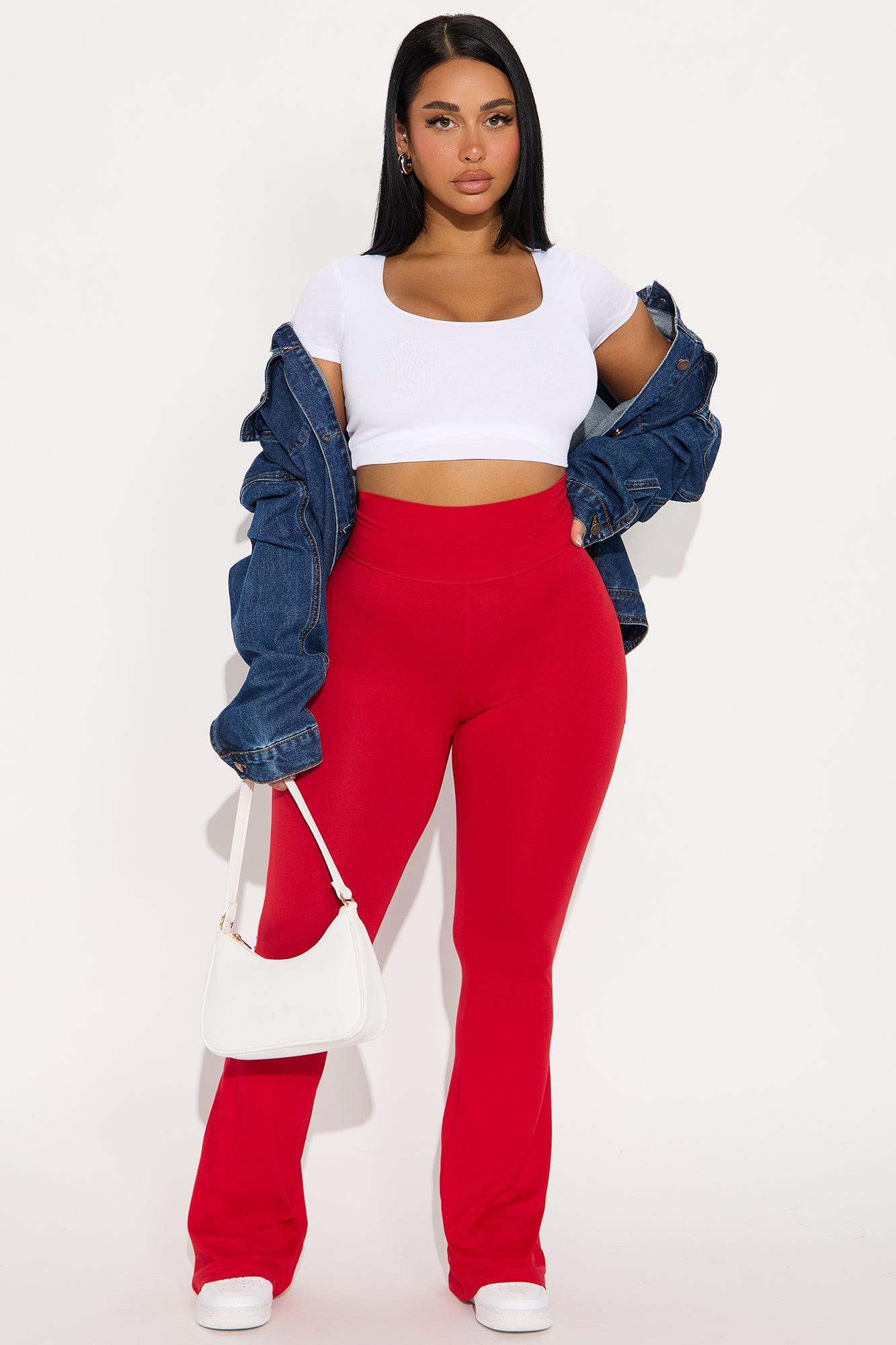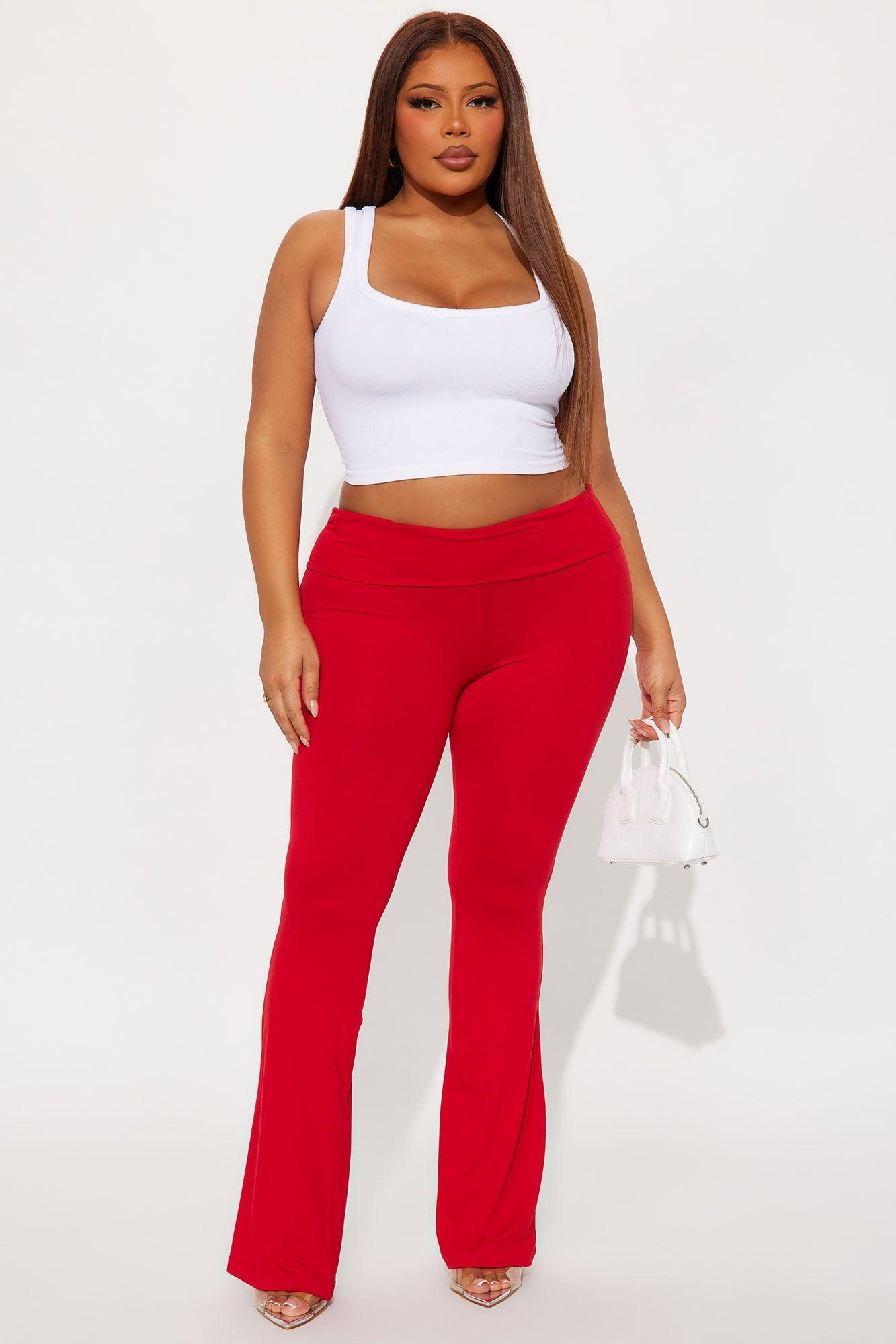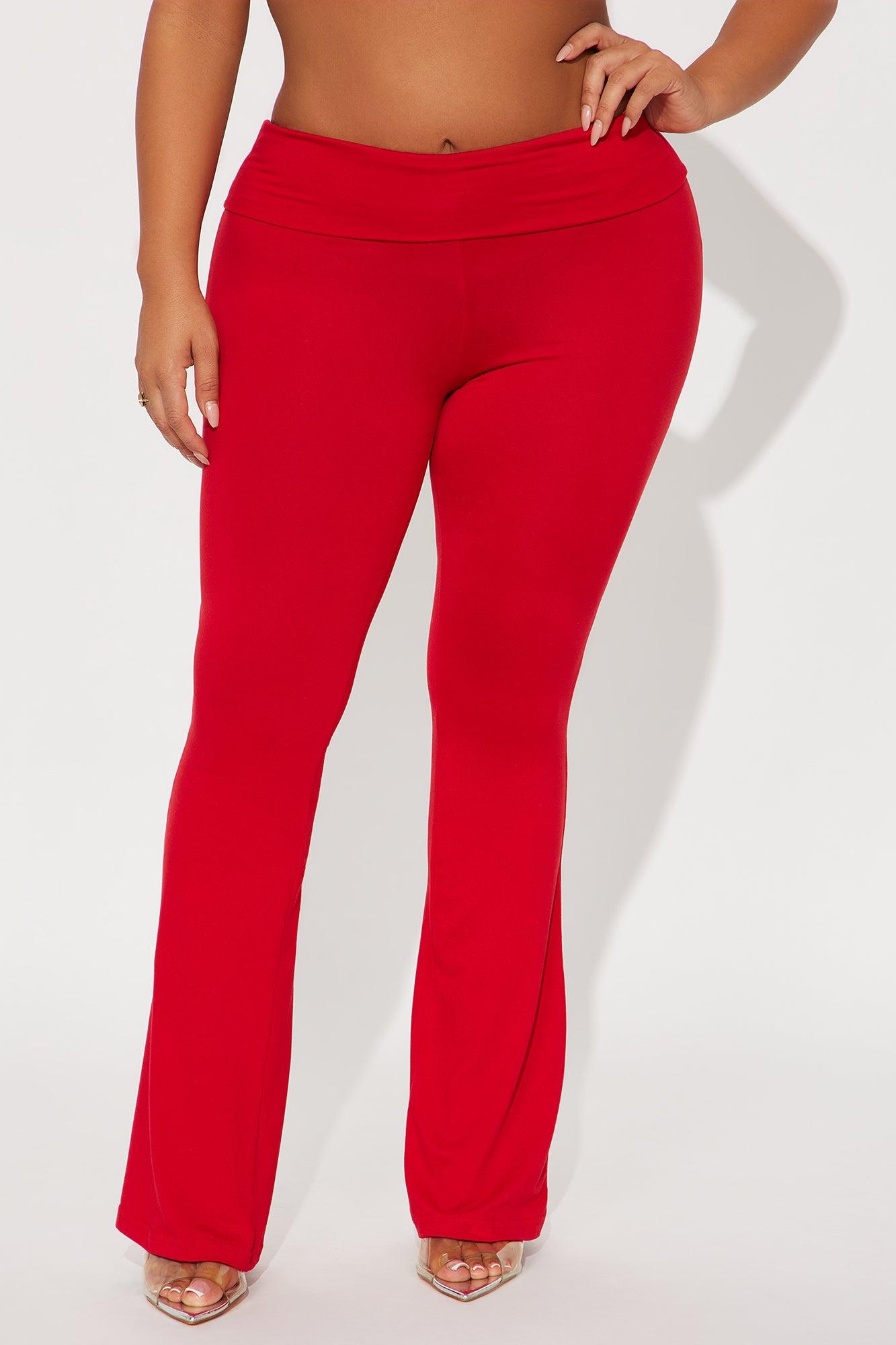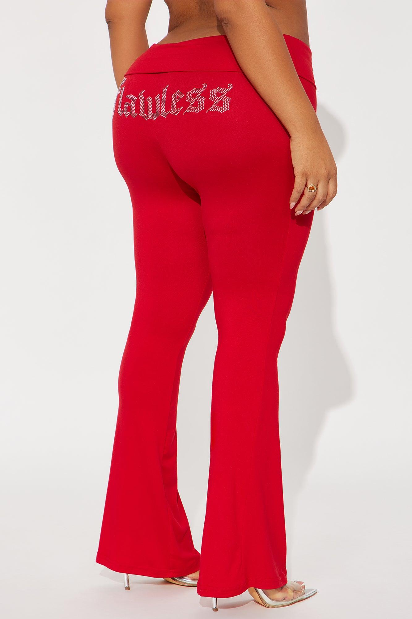 Lookin' Flawless Foldover Waistband Rhinestone Flare Pant - Red Female