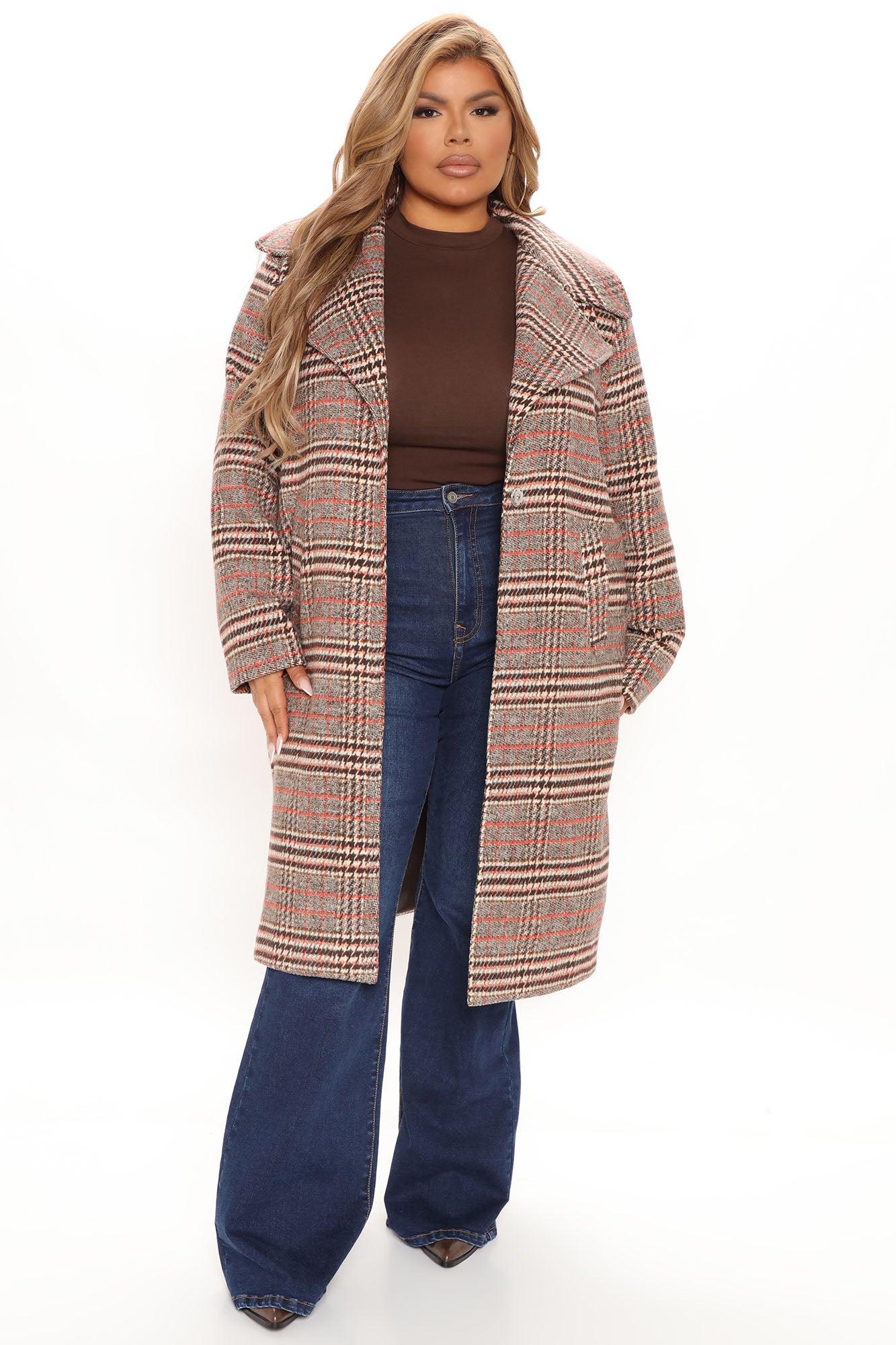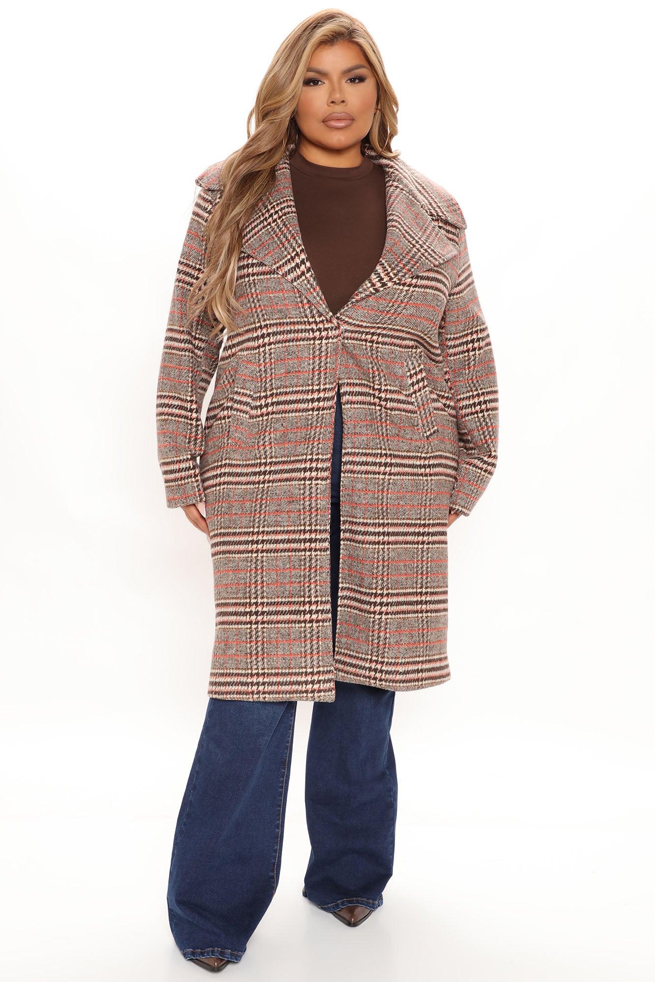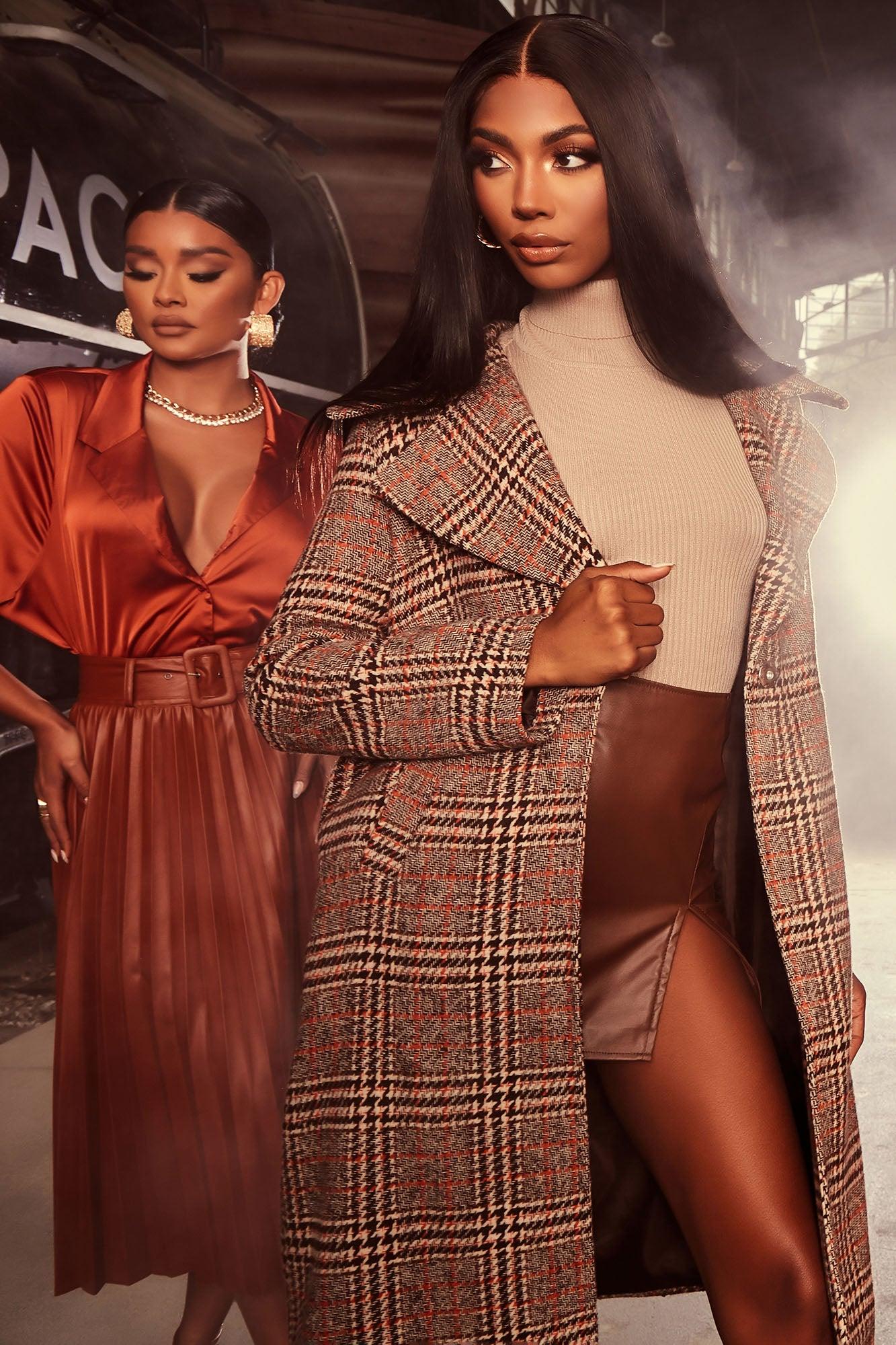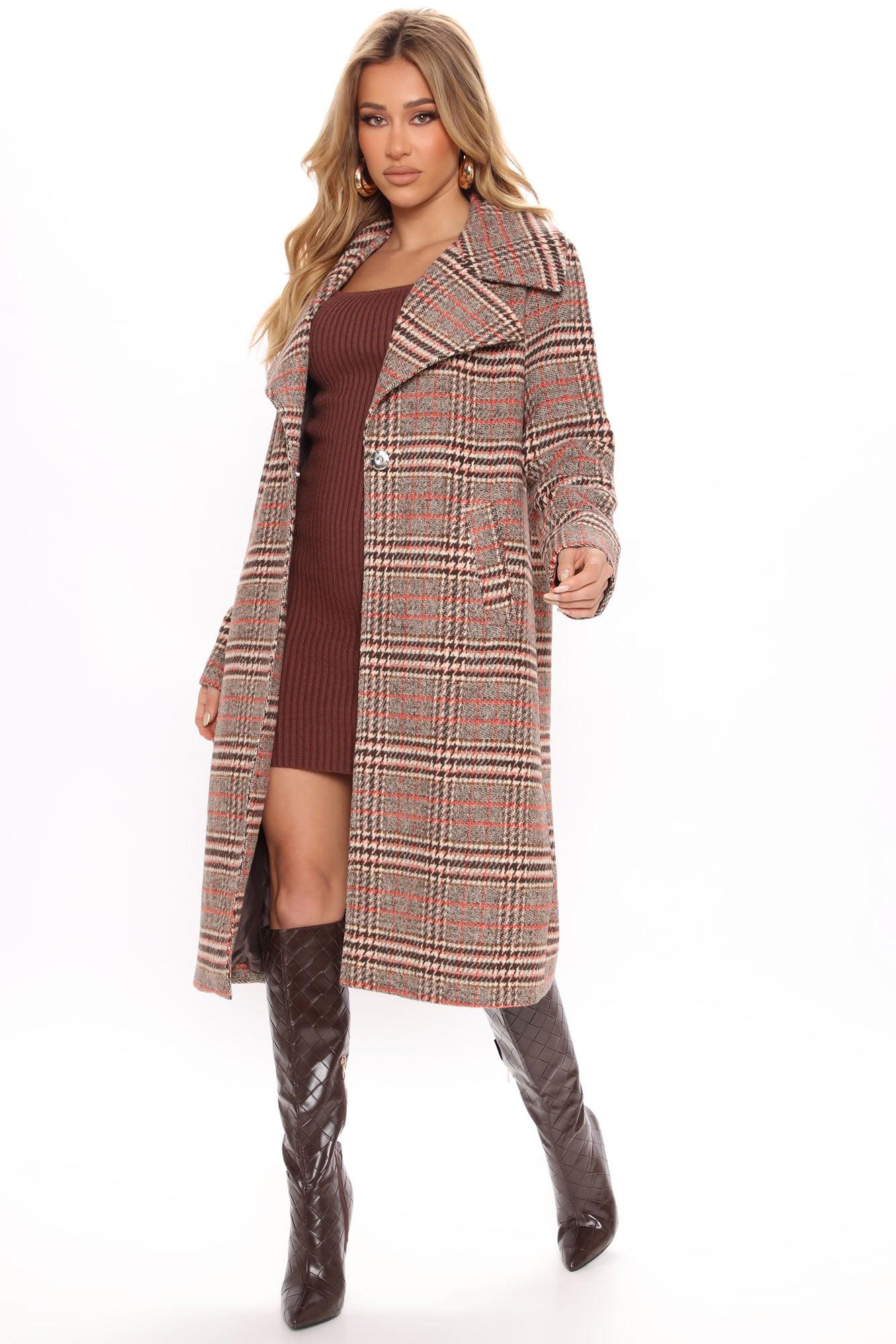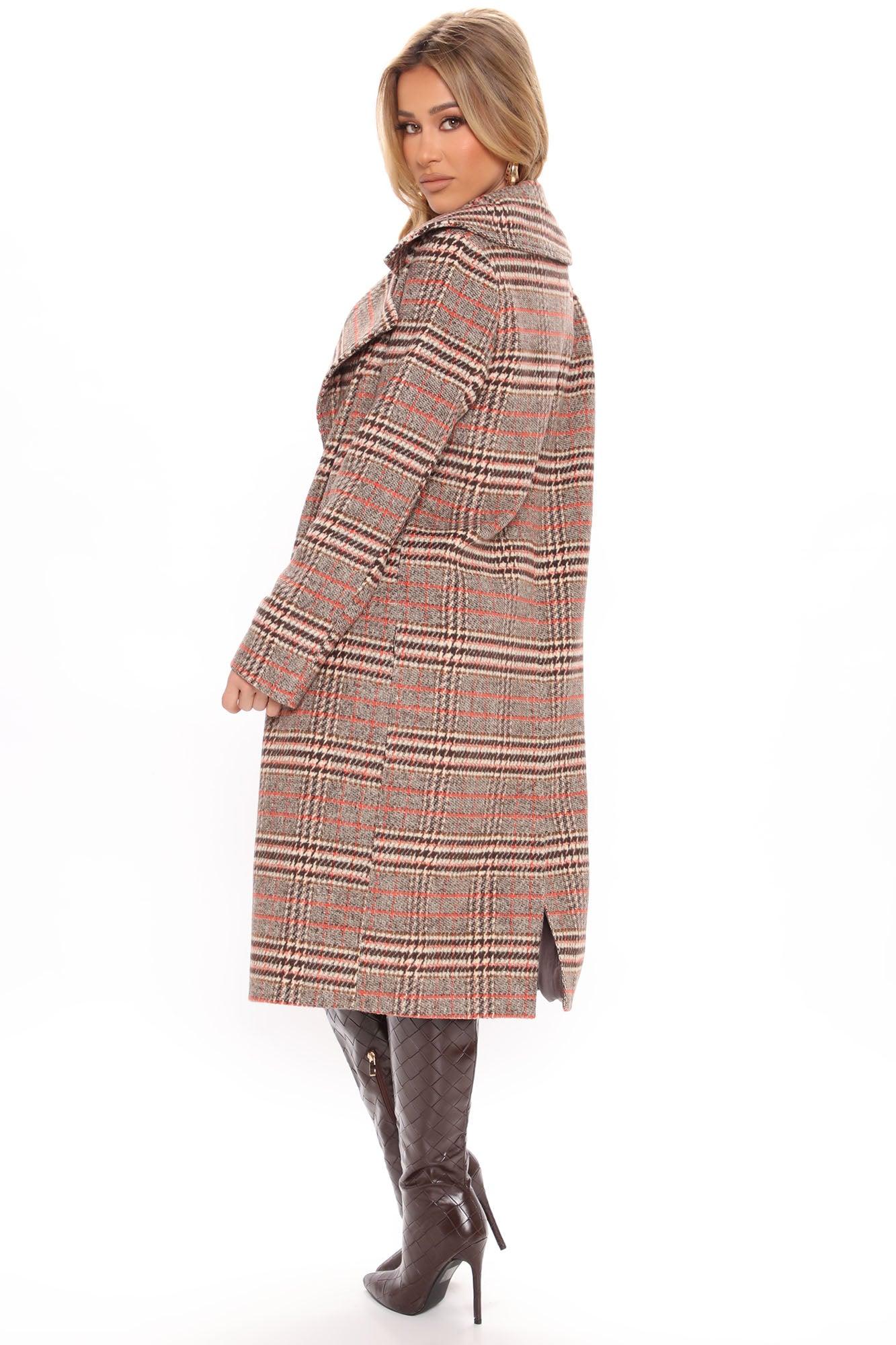 Looking For Clues Plaid Trench Coat - Rust/combo