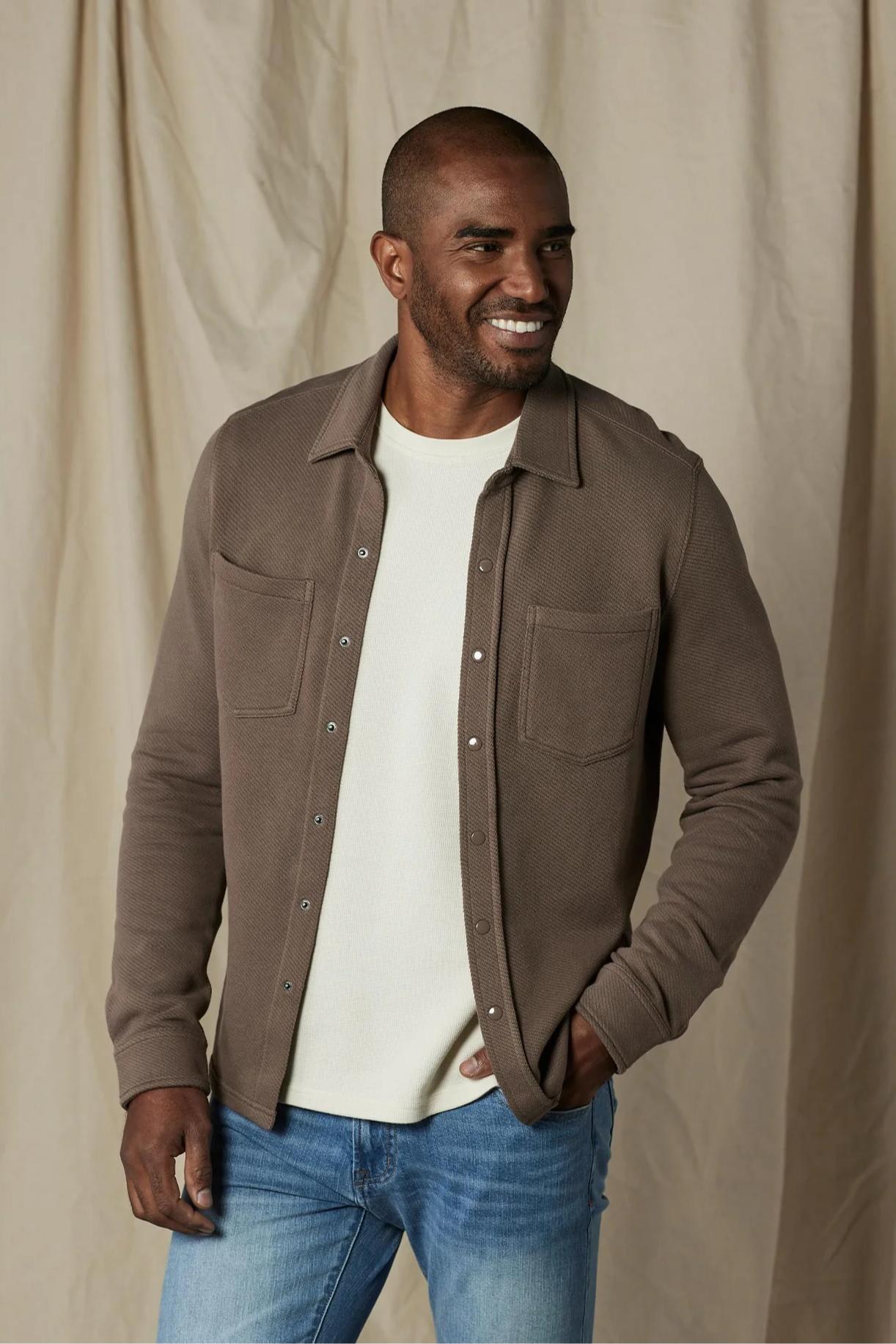 Crafted from 100% Cotton, this heavy-weight layering piece is a versatile addition to your wardrobe. True to size, the Looped Terry Button Up has subtle texture on the outside and an ultra-soft, plush looped texture on the inside. With classic button up details, including a shirt collar, two chest pockets, and a shirttail hem, this style adds comfort and texture to a timeless silhouette.