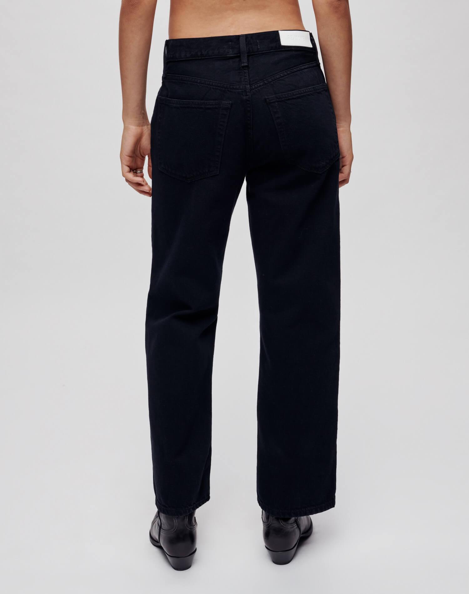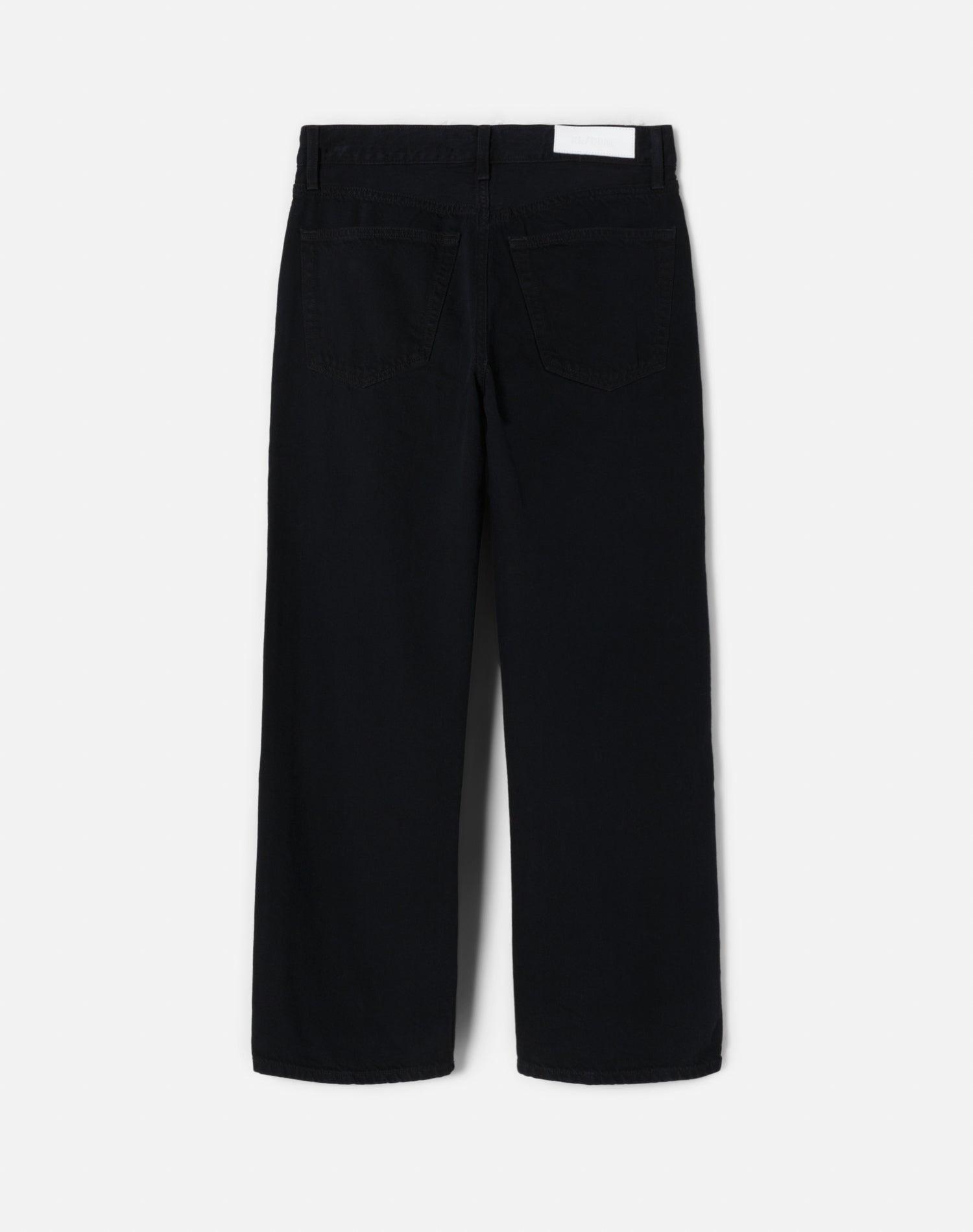 The Loose Crop in Black Flow is an update to our best selling Loose Long jean, this time with an ankle-baring inseam. Sustainably constructed from our low impact Flow cotton + Lyocell blend, each jean features a drapey feel, slouchy rise, button fly, finished hem, and baggy silhouette throughout.