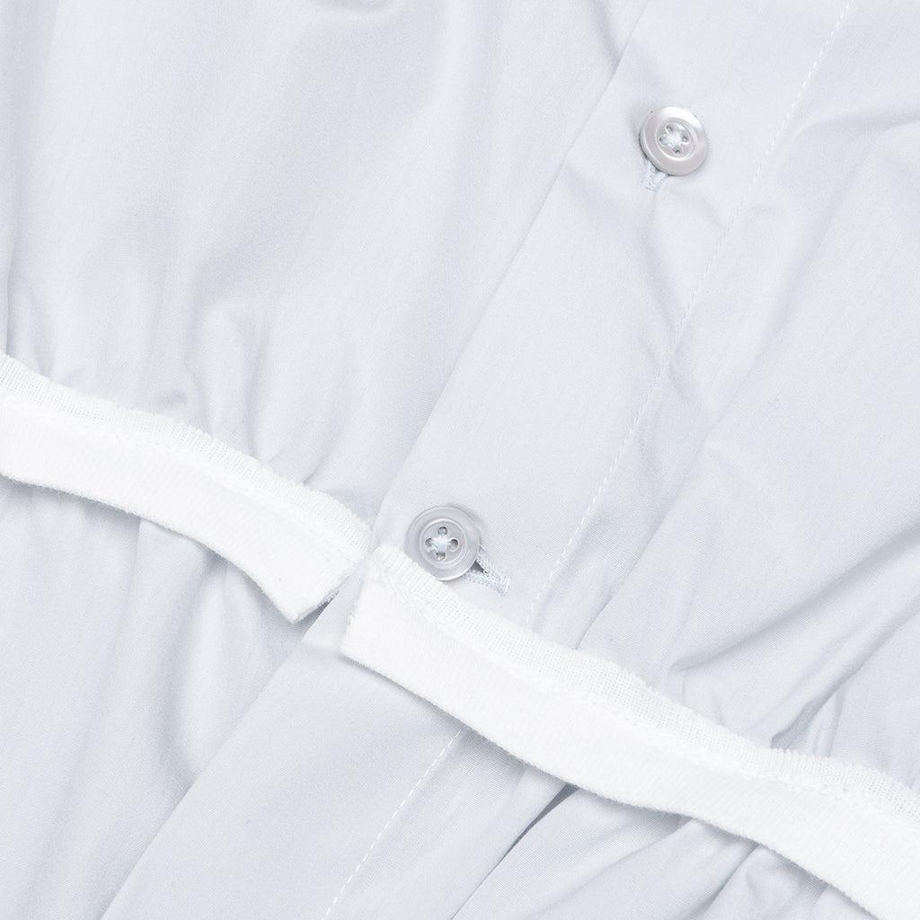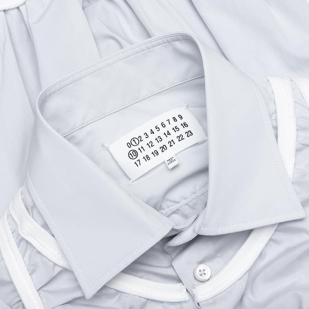 The L/S shirt from Maison Margiela is made of cotton and features unique piping details. The fabric is bunched up and pleated throughout the look, creating dimension. Technical details like the classic collar, button closure, and signature four stitches at the back complete the look. 100% Cotton Long sleeves Piping detail Scrunched fabric detail Button closure Classic collar Four stitches Style No: S51DT0019 M35397 500