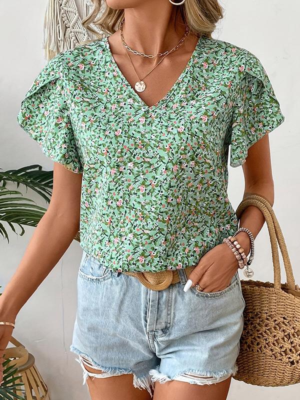 SkuCY-!180041MaterialPolyester StyleLoose , Puff Sleeves , Short Sleeves FeatureFlower Print NecklineV-neck OccasionCasual , Vacation , Leisure Fashion SeasonsSpring , Summer TypeBlouses&shirts Tops ColorLIGHT GREENSizeS,M,L,XL Please consult the size chart we provide for this item's measurements to help you decide which size to buy.Please note: There may be 1-3cm differ due to manual measurement.CMINCHBustShoulderSleeveLengthS95342066.5M99352167.5L105362269XL111372370.5