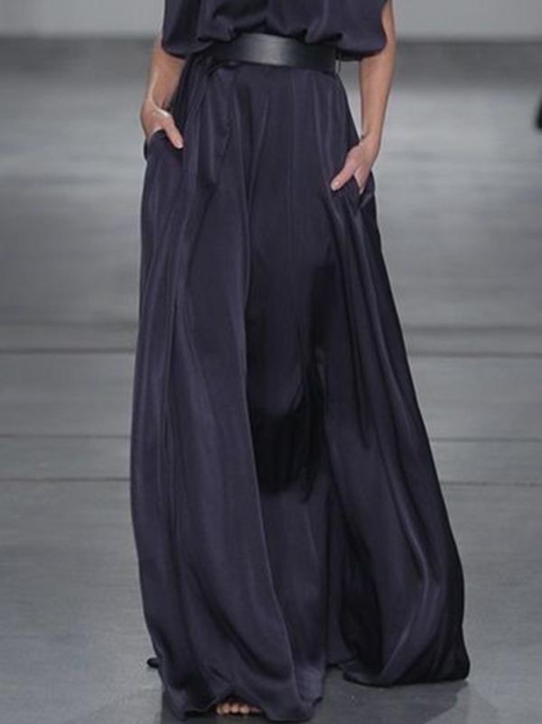 Loose Raglan Sleeve Solid Color Split-Joint Tied Waist High Neck Maxi Dresses