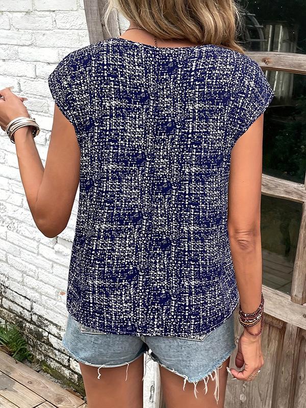 Loose Short Sleeves Plaid Round-Neck T-Shirts Tops