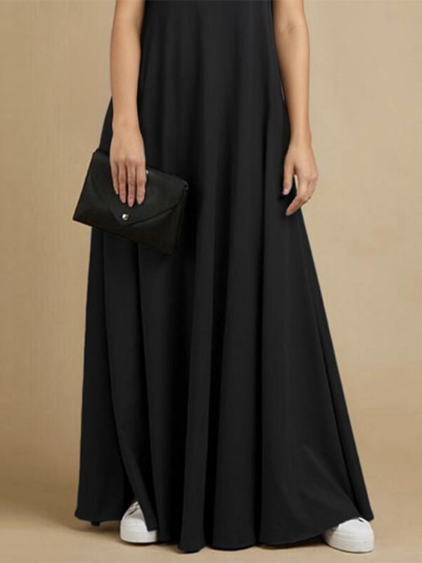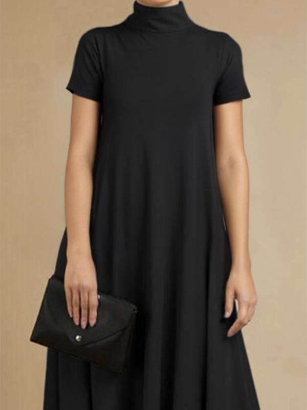 Explore timeless elegance with our loose short sleeve maxi dress featuring a refined stand collar and solid color design. Perfect for casual chic or elevated outings. Shop this Western fashion staple now — limited-time new arrival with fast shipping!