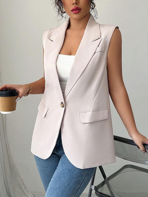 SkuCY-!184310Material95% Polyester StyleLoose , Sleeveless FeaturePockets , Buttoned NecklineNotched Collar OccasionUrban , Leisure Fashion SeasonsSpring , Autumn TypeVest Top , Blazer ColorPINK,GREEN,APRICOTSizeS,M,L,XL Please consult the size chart we provide for this item's measurements to help you decide which size to buy.Please note: There may be 1-3cm differ due to manual measurement.CMINCHBustShoulderWaistLengthS96389471M101399972L1074010573.5XL11441.511275