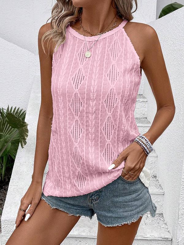 Loose Sleeveless Jacquard Solid Color Spaghetti-Neck Vest Top