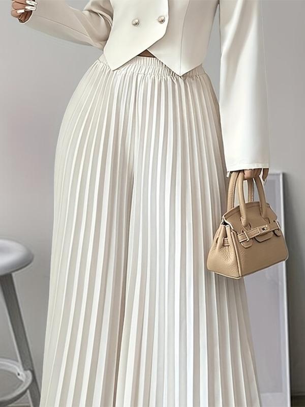 Enjoy effortless style with these loose wide leg pleated casual pants. Featuring soft stretch fabric and a solid color design for all-day comfort.
