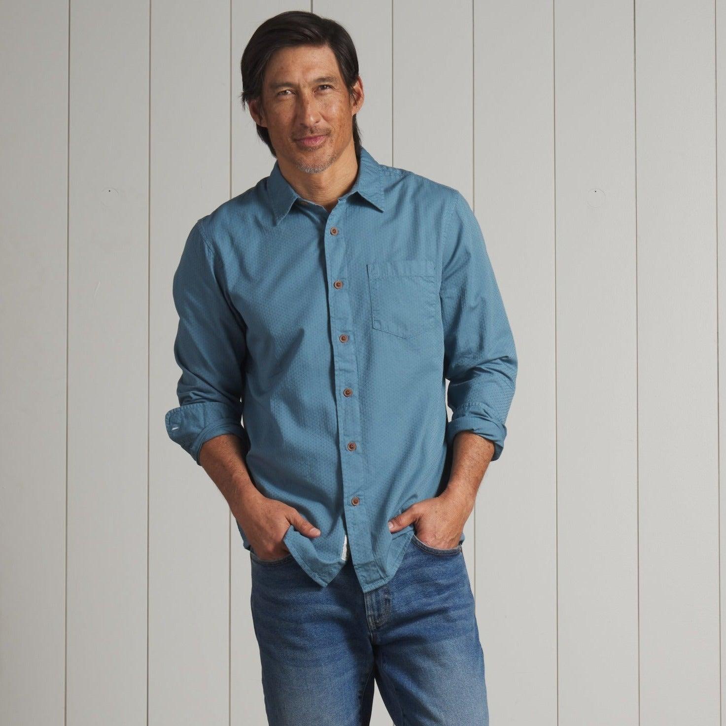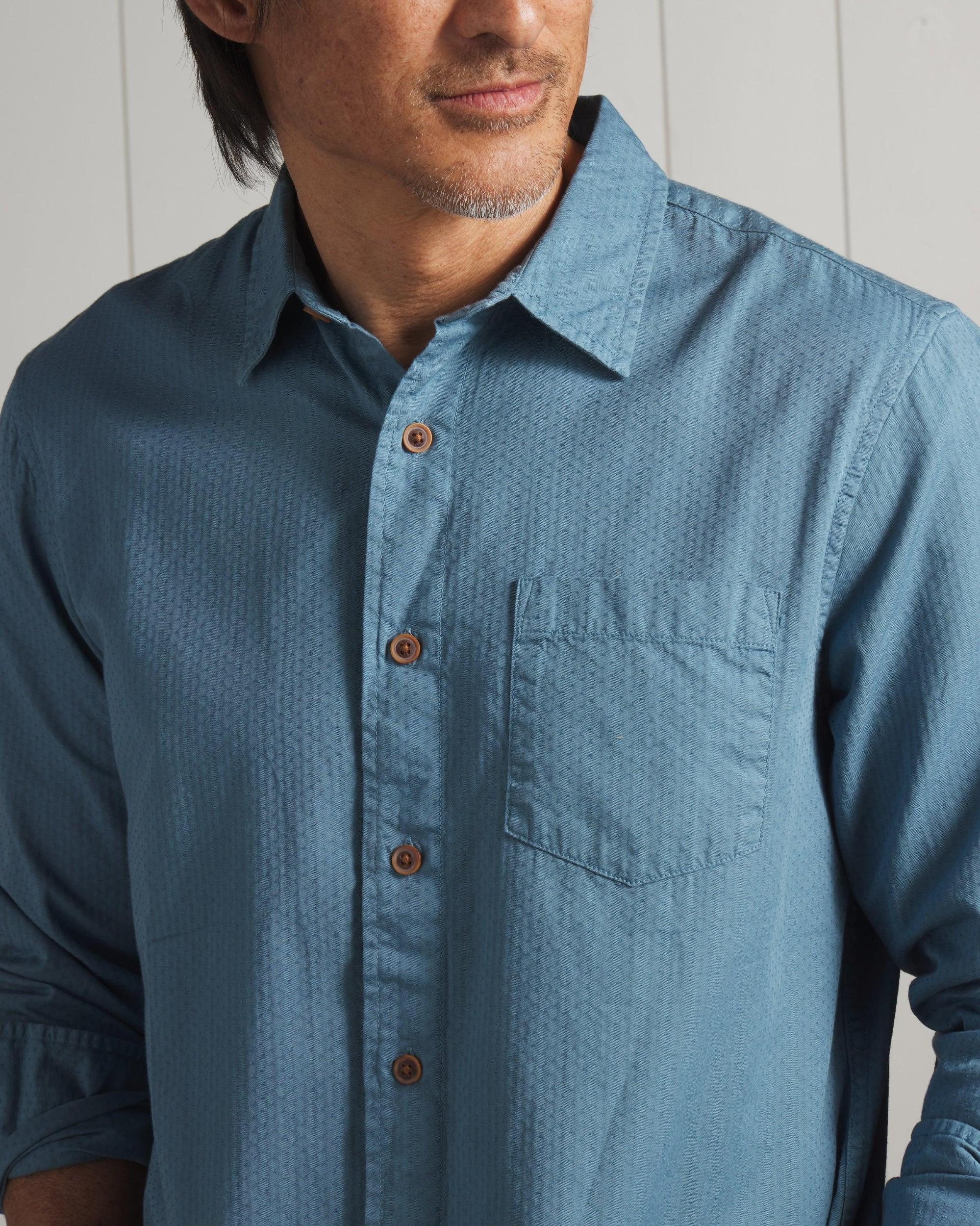 The great transitional shirt. Too warm for a flannel but not ready to move on to short sleeves? The Lorenzo is a light weight cotton dobby, with great breathability and a soft textured hand. Woven with premium fine cotton yarn, the textured cloth is accentuated with the our weathered sand wash. Roll up your sleeves for a casual look or wear under an unconstructed blazer. The Model is also wearing: Edward Stretch Straight Fit Denim - Vintage Wash. Model: Adrian is wearing size medium and is 6'. ----Details---- Spread collar Garment dyed Sand washed for a soft weathered hand All cotton "dobby" textured weave Chest patch pocket Reinforced gussets Imported ----Materials---- 100% Cotton ----Size & Fit---- Measuring Method: All measurements are in inches and based on a “flat” garment, as shown below. For comparison with one of your existing garments, please lay garment on a flat surface and follow the key measurement points. For chest and neck, if you double the flat measurement, you will get close to the full body measurement. ----Care---- Machine Wash Cold Separately Do Not Soak Before Washing Do Not Bleach Remove Promptly Tumble Dry Low Or Hang Dry In Shaded Area Cool Iron If Necessary