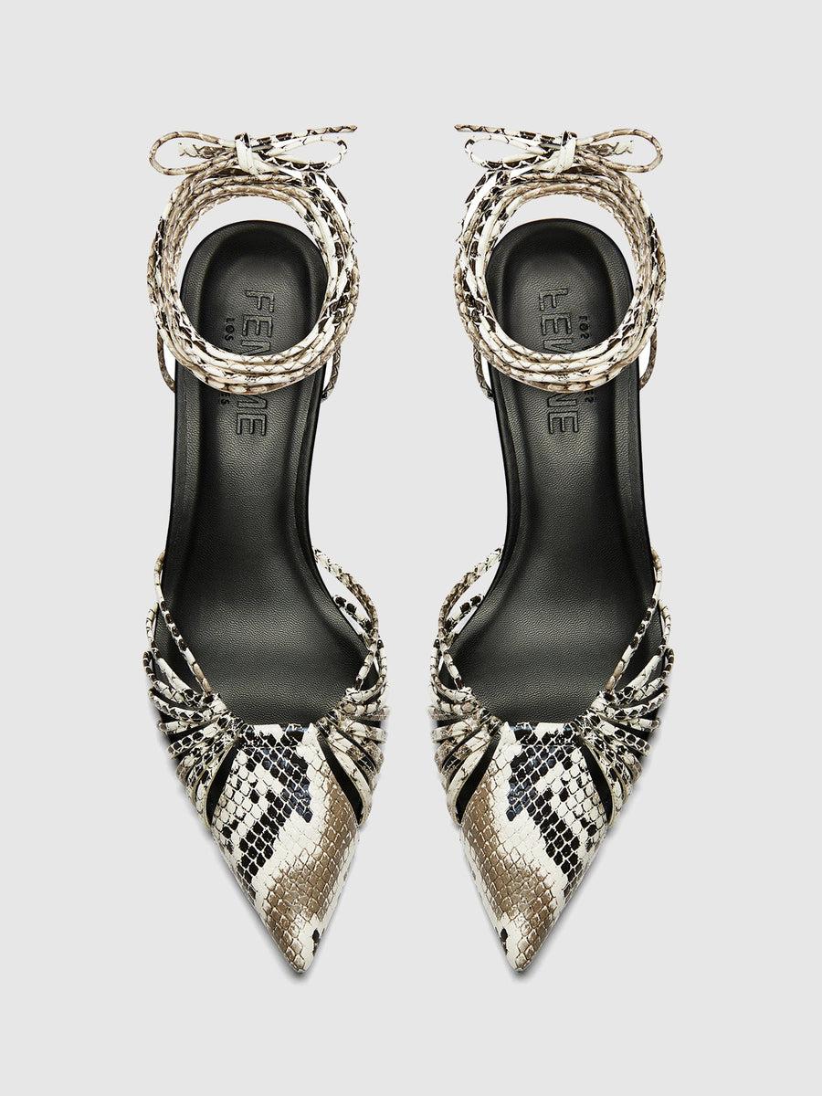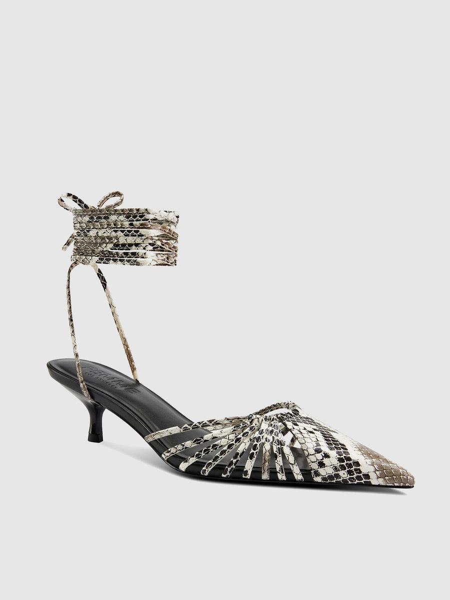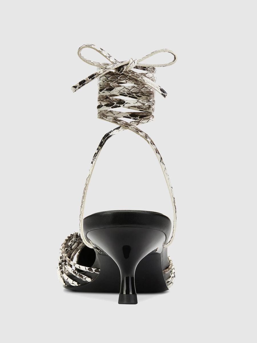 The Lori Lace Up exhibits an eccentric and elegant design. Its wraparound lace ups and kitten heel make this silhouette an ultra-wearable addition to your collection.Vegan upperVegan insoleVegan outsoleClosed pointed toeWraparound lace-up HandmadeDesigned in LASelf-covered stiletto heel, 2" (50mm)
