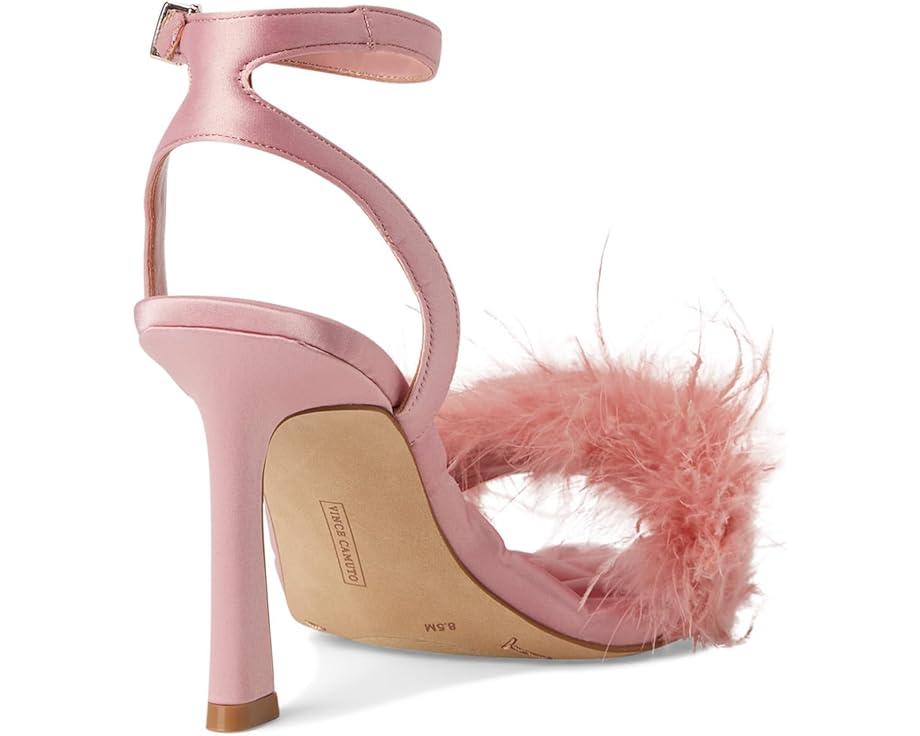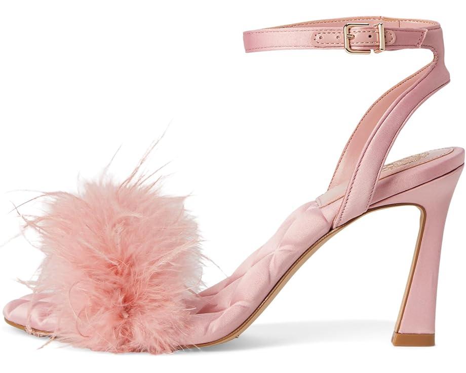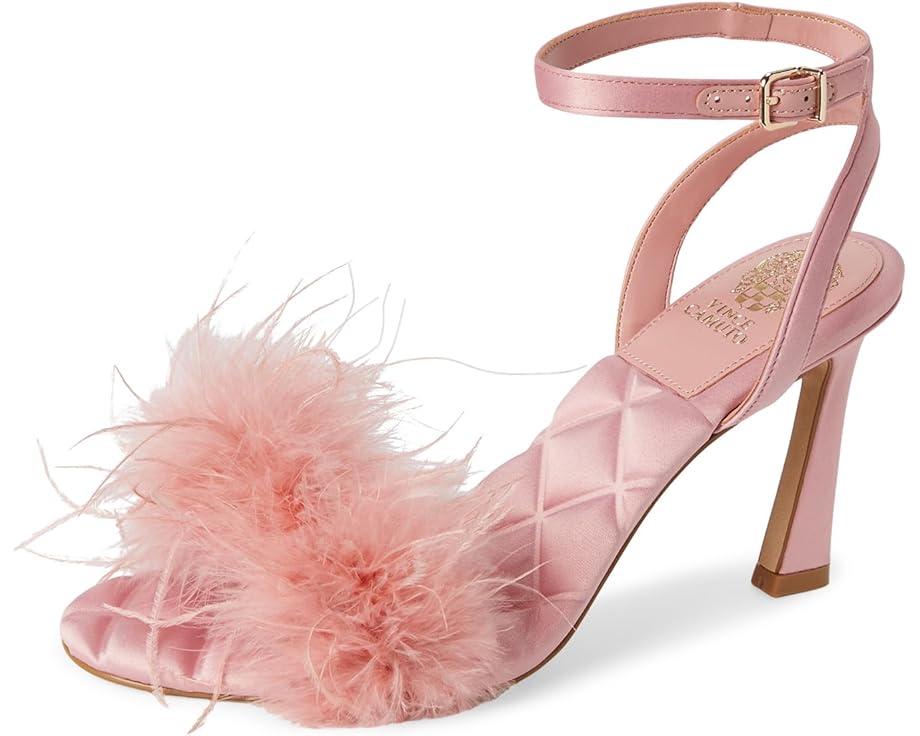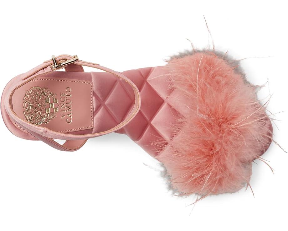 Strut in style with flirty feathers and satin charm! The Vince Camuto® Penely Feather High Heel Sandal is your go-to party showstopper. Featuring a satin-covered fur upper adorned with playful feathers, this heel is as bold as it is chic. A flared high heel adds height and drama, while the quilted polyester lining and insole ensure all-night comfort. The adjustable ankle strap with a secure buckle closure provides a perfect fit. Designed with a durable rubber outsole, these fun and flirty heels are ready to elevate your wardrobe.