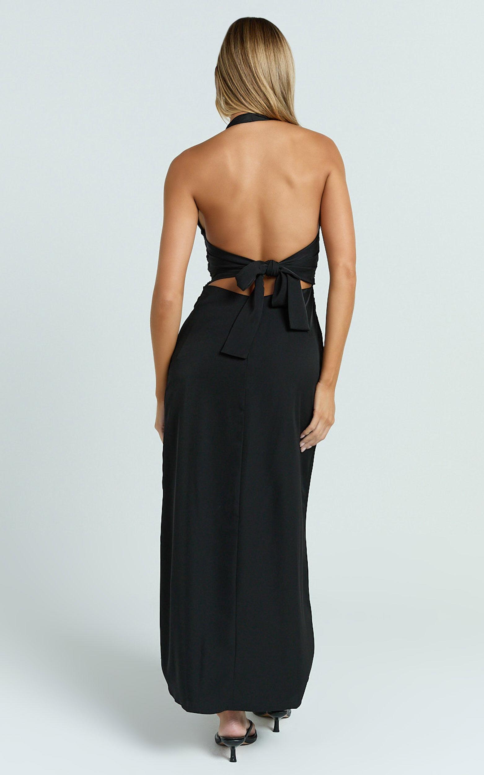 Get ready to turn heads in the Lorvie Maxi Dress, your new favorite for effortlessly chic evenings and romantic date nights. Featuring a sultry halter plunge neckline that beautifully accentuates your curves, this timeless black maxi creates an ultra-flattering A-line silhouette blending graceful ballerina elegance with a playful touch of everyday charm.Pair this wardrobe staple with strappy heeled thong sandals for instant sophistication, or layer it beneath a chic oversized jacket cinched at the waist for cooler nights. From cocktail parties and weddings to every occasion in between, this dress promises you'll make a statement wherever you go!Product Details:Zips detailSlip dress styleFitted silhouetteHeavy weight fabricPlunge necklineFormal occasionMaxi lengthSleeveless cutPolyester materialMaterial and Care100% PolyesterNo Stretch