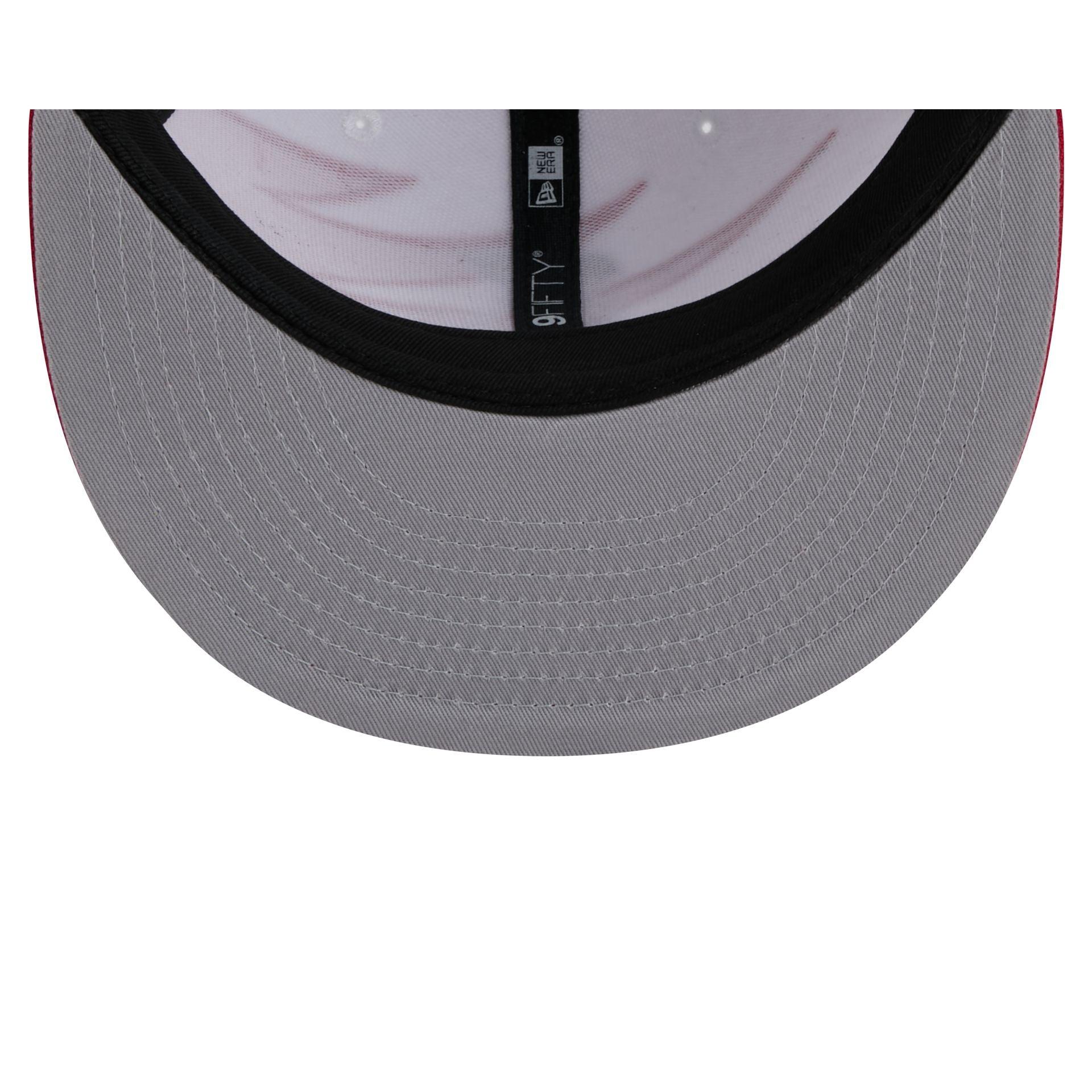 The Los Angeles Angels Jagged 9FIFTY Snapback features an embroidered Angels logo at the front panels with a jagged pattern fabrication throughout the cap. Additional details include a snapback closure at the rear and a gray undervisor.
