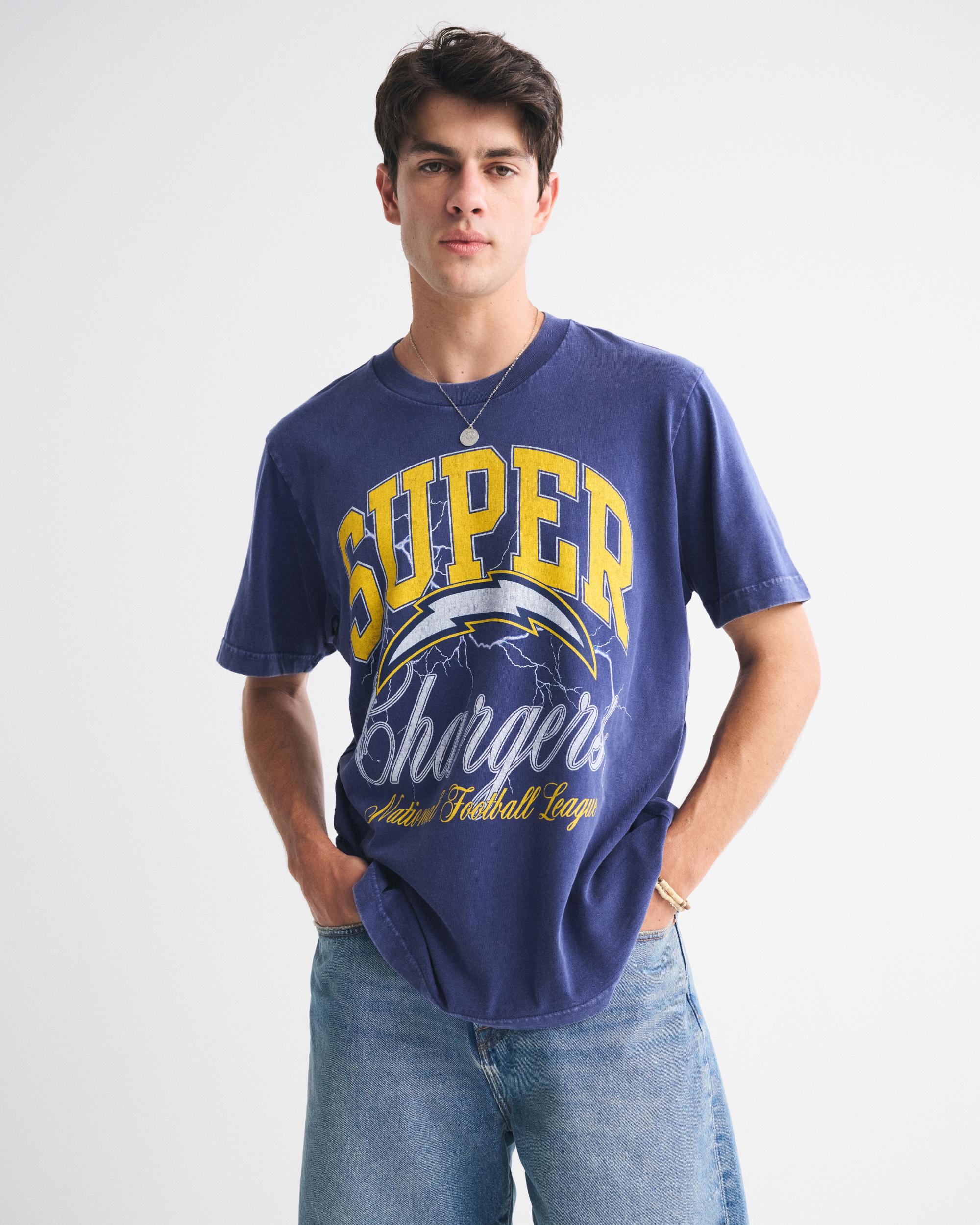 Classic short-sleeve tee in our softAF 180g fabric and vintage oversized-fit silhouette, featuring Los Angeles Chargers-inspired graphic detail at chest and crew neckline.