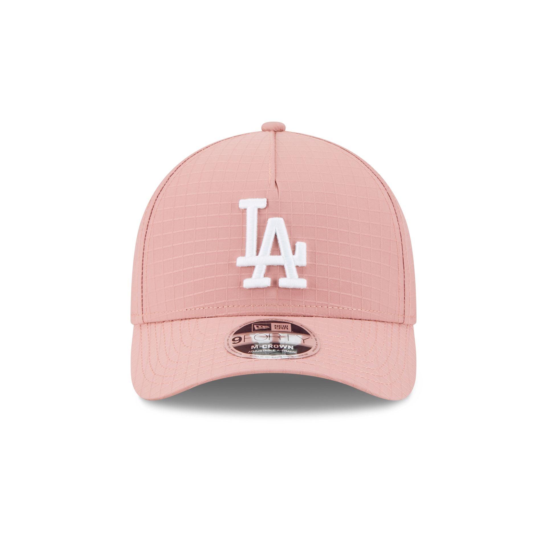 The Los Angeles Dodgers Pink Ripstop 9FORTY M-Crown A-Frame Snapback features an embroidered Dodgers logo at the front panels against a nylon ripstop fabrication throughout the cap. Additional details include an adjustable snapback closure at the rear and a gray undervisor.