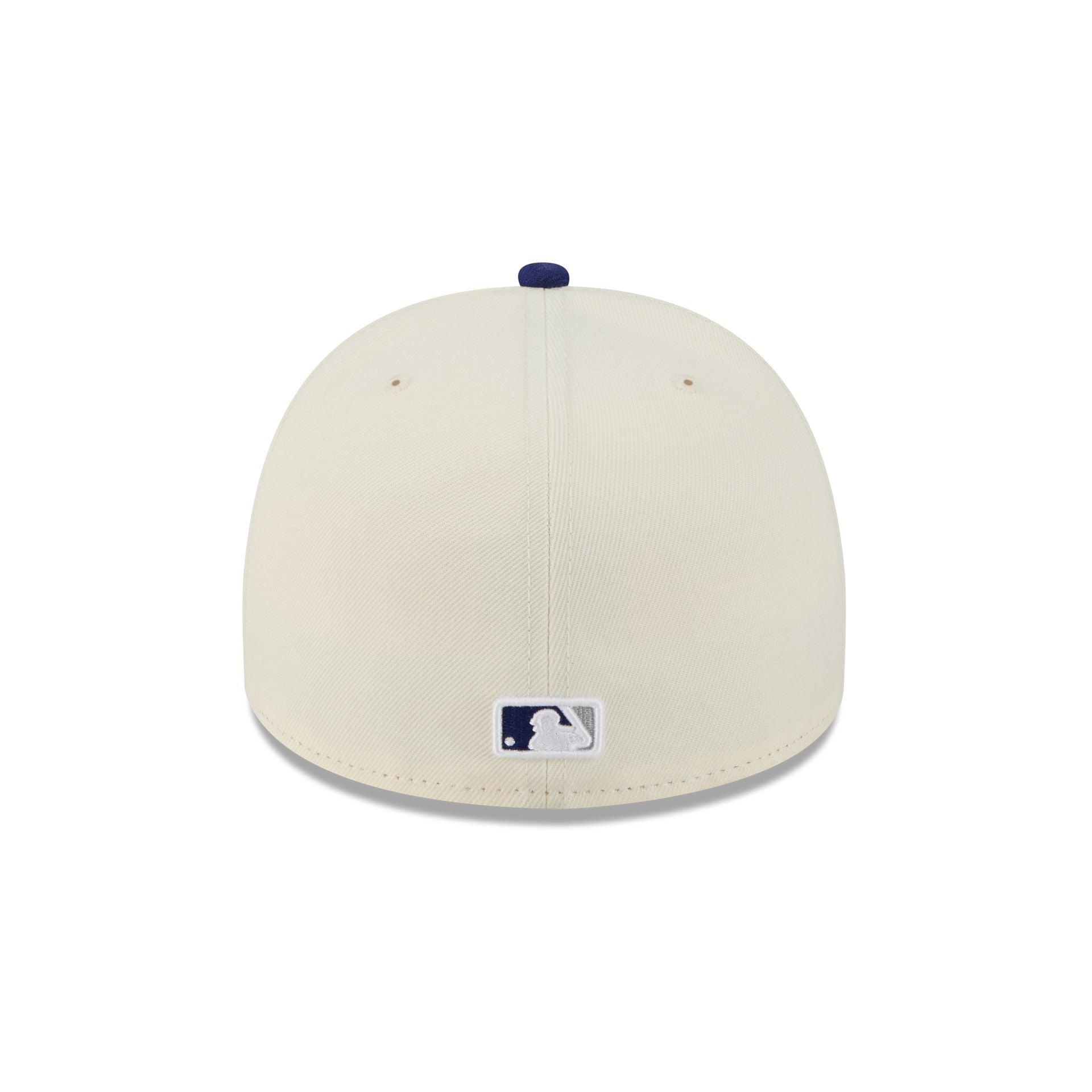 The Los Angeles Dodgers Summer Derby 59FIFTY A-Frame Fitted Cap features an embroidered Dodgers wordmark over team color stripes at the front panels with a matching MLB Batterman logo at the rear. Additional details include a 1980 All-Star Game patch at the right-wear side, a gray visor, and a green undervisor.