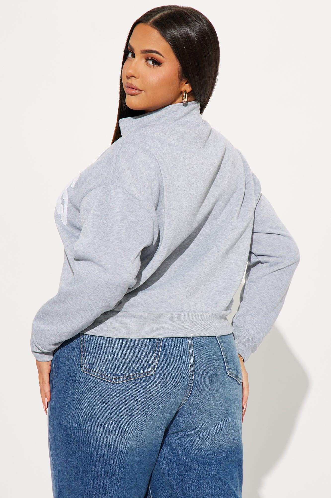Available In Heather Grey. Half Zip Sweatshirt Mock Neck Long Sleeve Front Screen Disclaimer: Due To The Printing Process A Difference In Saturation May Occur. Each Garment Is Unique. 100% Polyester Imported