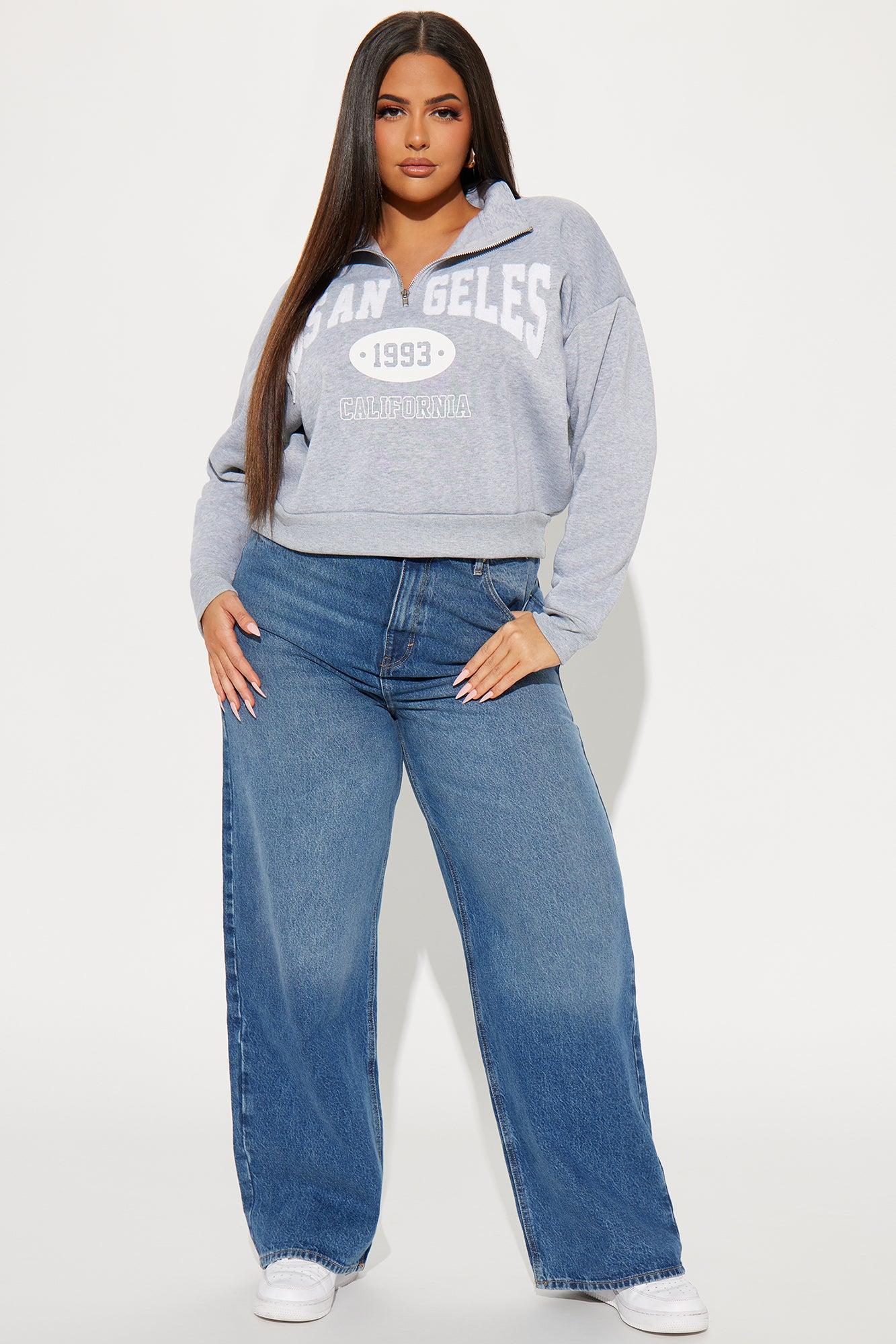 Los Angeles Half Zip Sweatshirt - Heather Grey