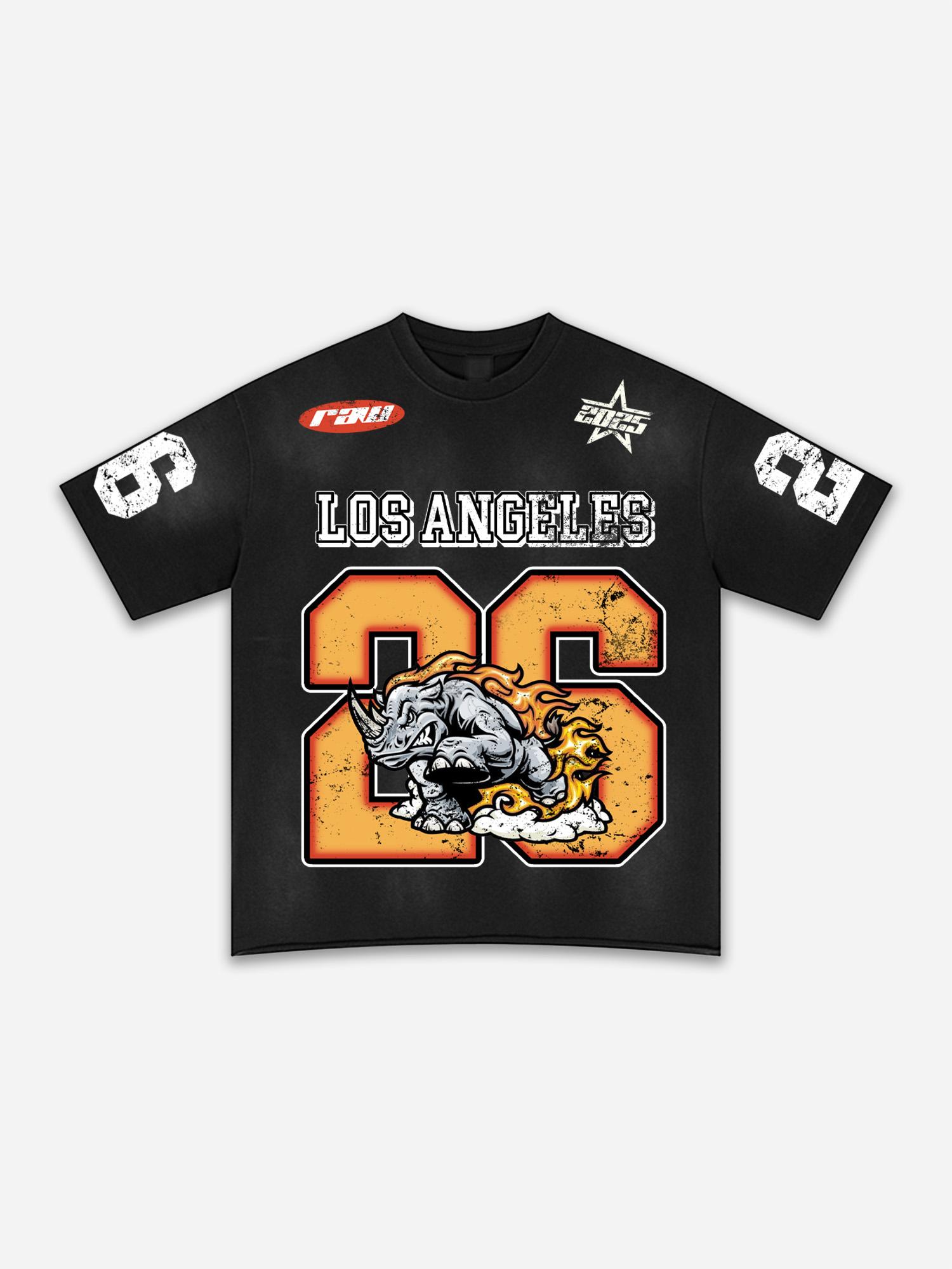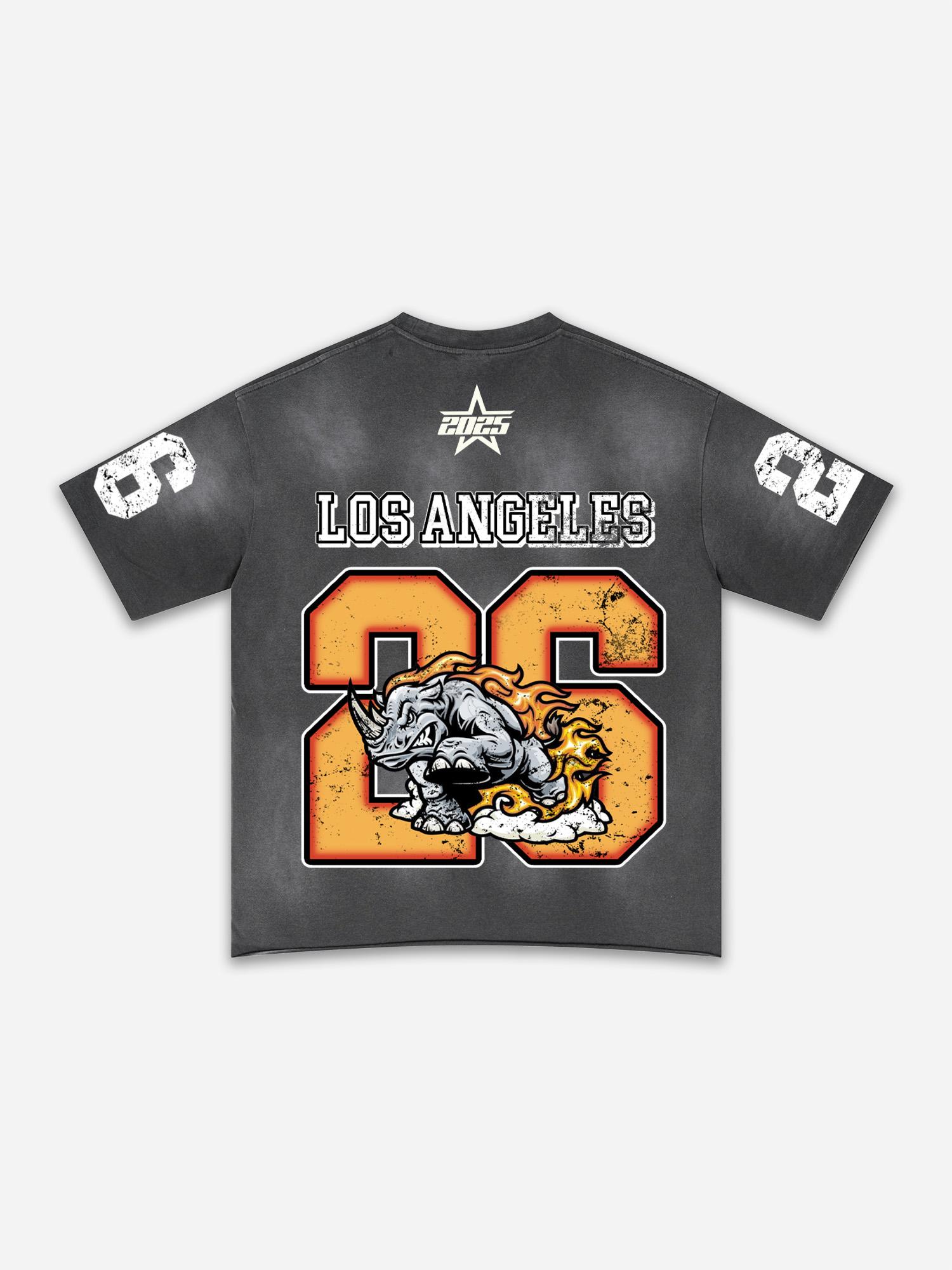 Shop Los Angeles Legendary No.26 Vintage Graphic Washed T-Shirt at Sopula Clothing. SPU: CP-221304-WJY Fabric Name: 100% Cotton Pattern: 26 Legendary Animal Motion Process: Printed Style: Retro Length: Regular Collar: Round Neck Popular Elements: Washed Sleeve Type: Short Sleeve Occasion: Street, Daily Theme: Summer